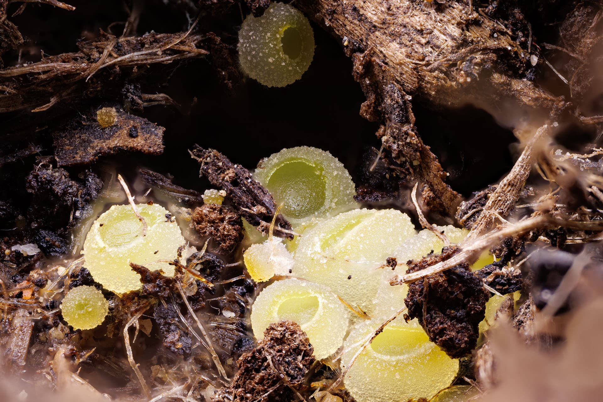 Die Fruchtkörper sind so 1-2mm groß und ich denke die zersetzen die Holzreste in der Anzuchterde. Ich steh zwar eher auf Steinpilze oder Pfifferlinge, aber als Fotomodell tun die es auch…