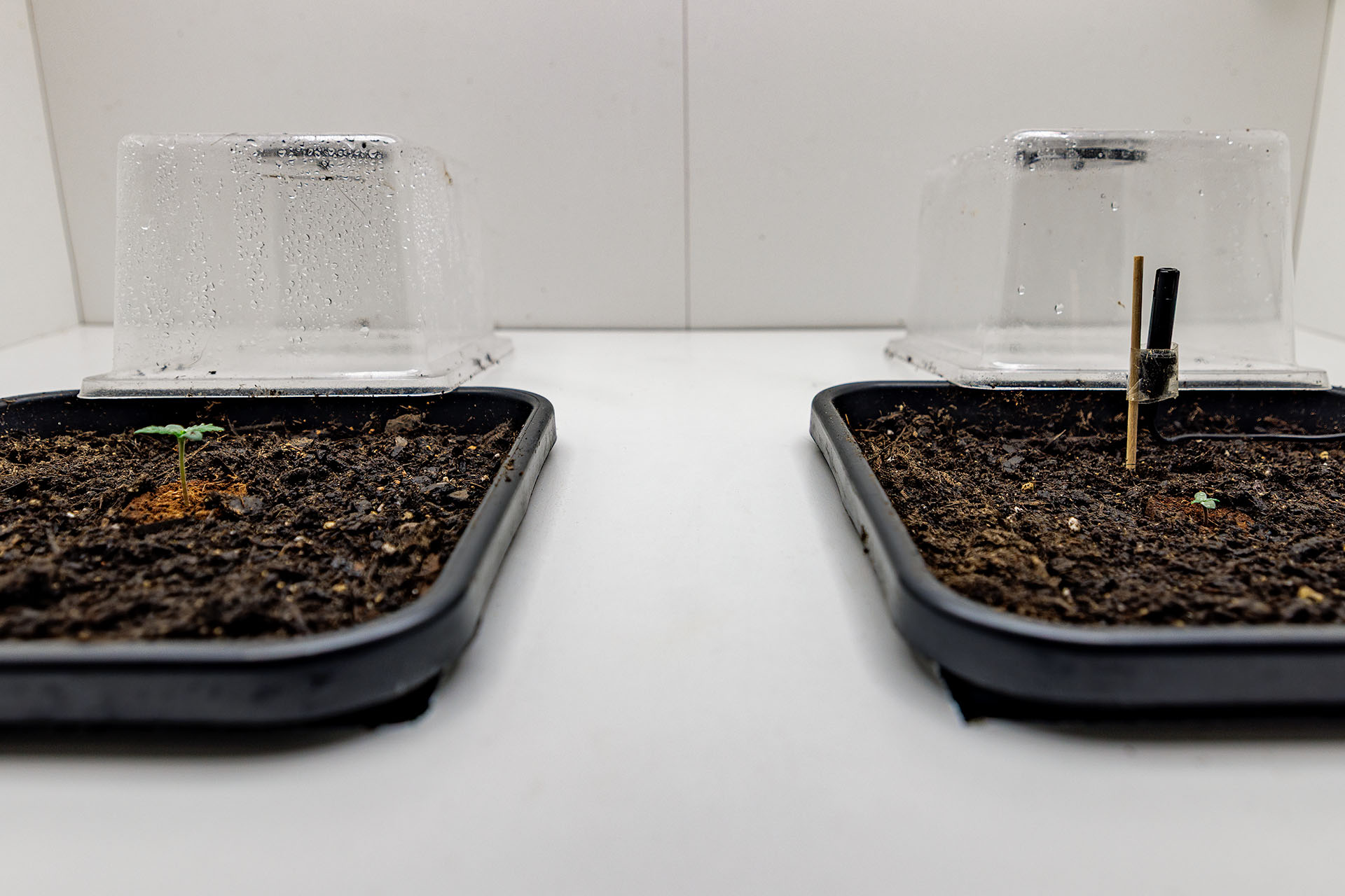 Heute haben jetzt beide Dame ihr Köpfchen aus der Erde. Das Licht habe ich nun auch an. 18/6 bei 190ppfd was ungefähr einem DLI von 12mol entspricht. Das werde ich die erste Woche durchziehen.