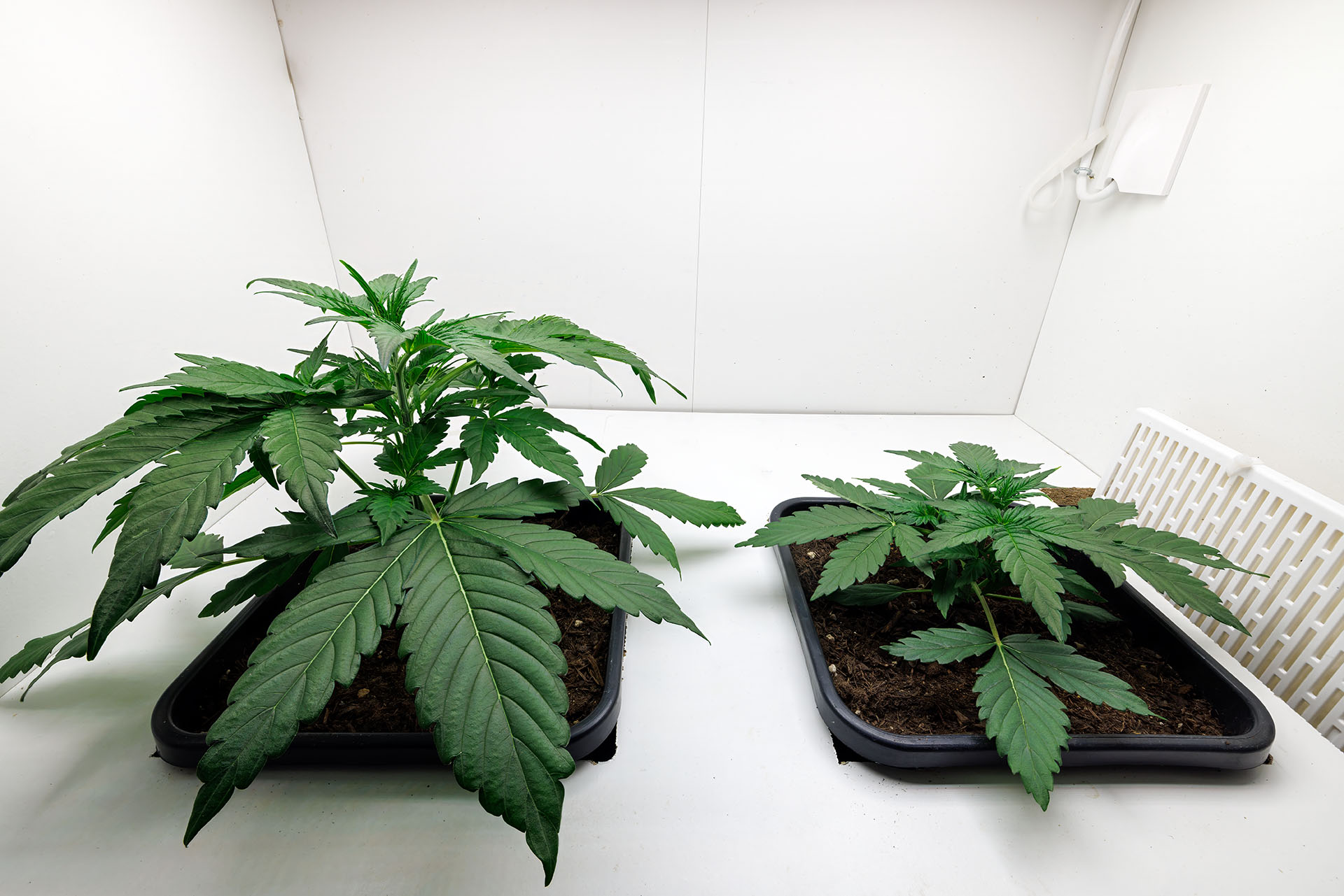 Die eine, große, mittlerweile über 75cm groß hat irgendwie das „Stretch-Gen“ mit ihrem langen Nodienabstand und den filigranen Blättern macht sie eher einen Sativa-dominierten Eindruck.