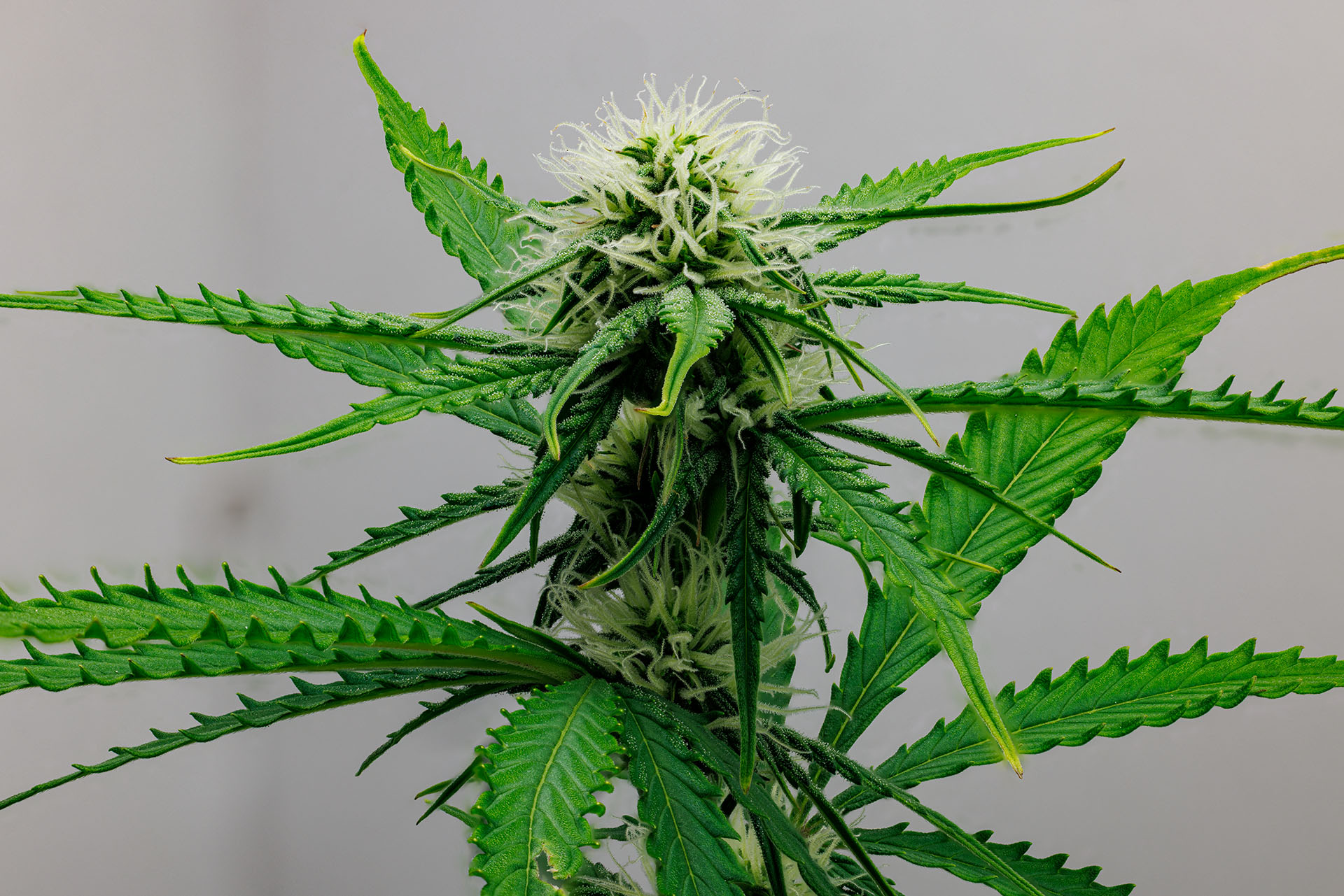 Die andere, kleine, mit ihren gerade mal 38cm, hat wohl mehr „Indika“ abbekommen, mit dem gedrungenen Wachstum einer Ruderalis.