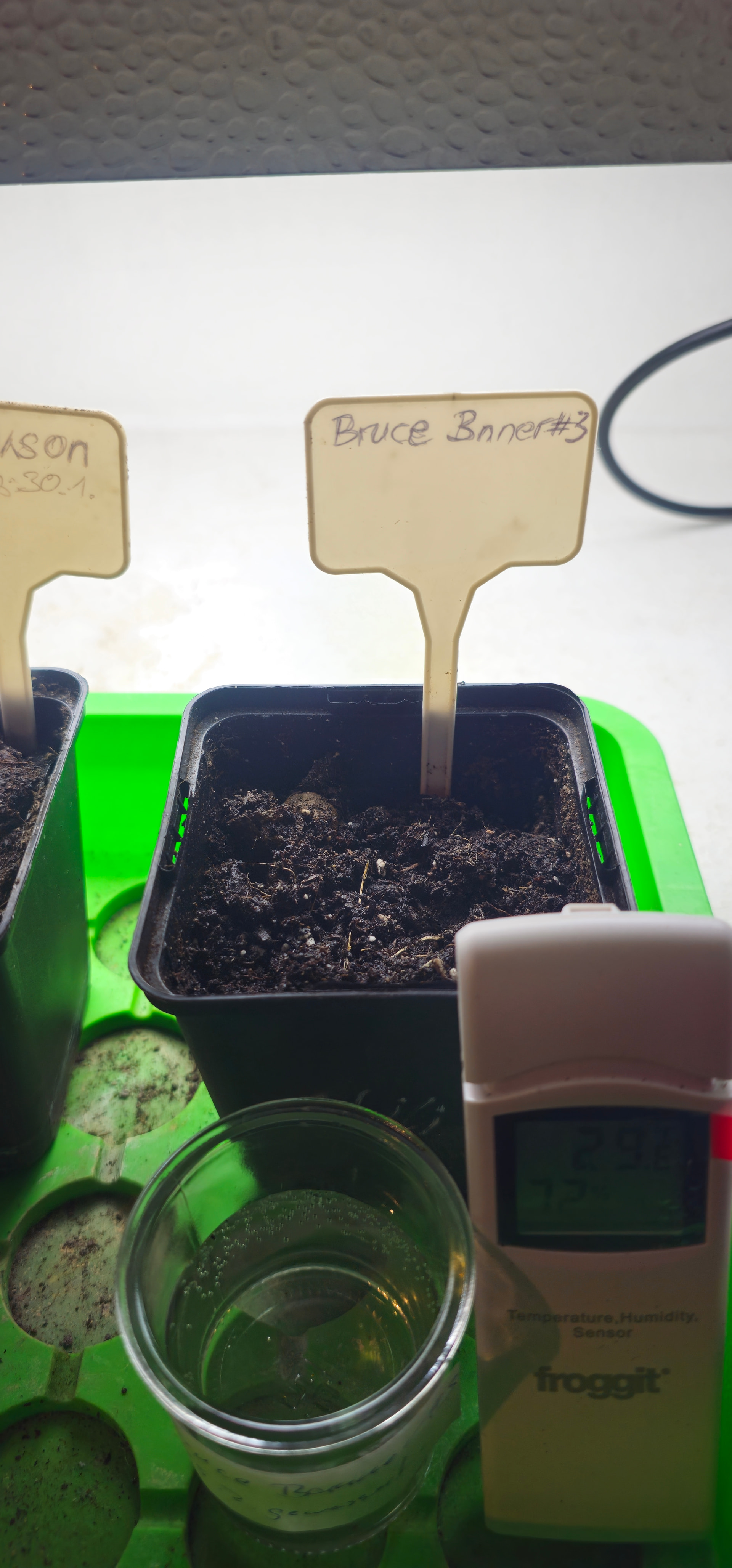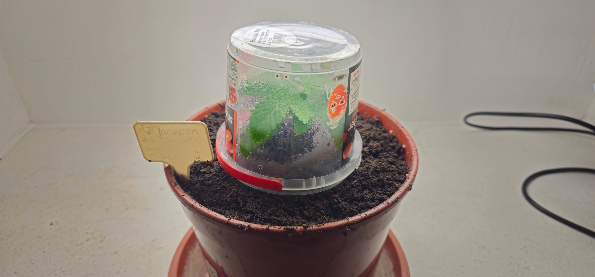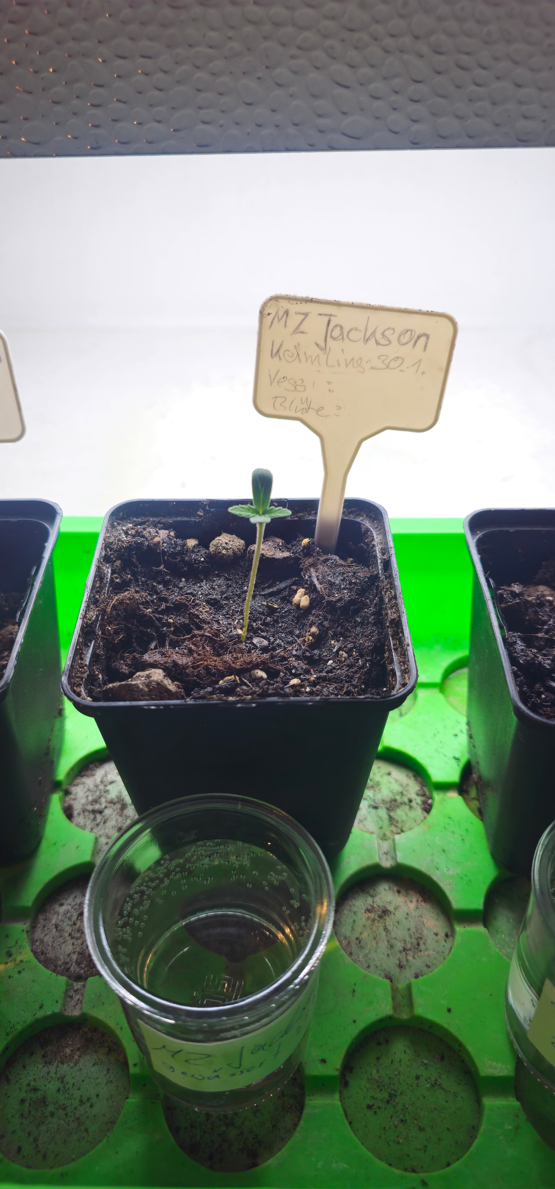 Jackson: Samen in Erde eingesetzt und ins Gewächshaus untergestellt (damit die Feuchtigkeit oben bleibt).