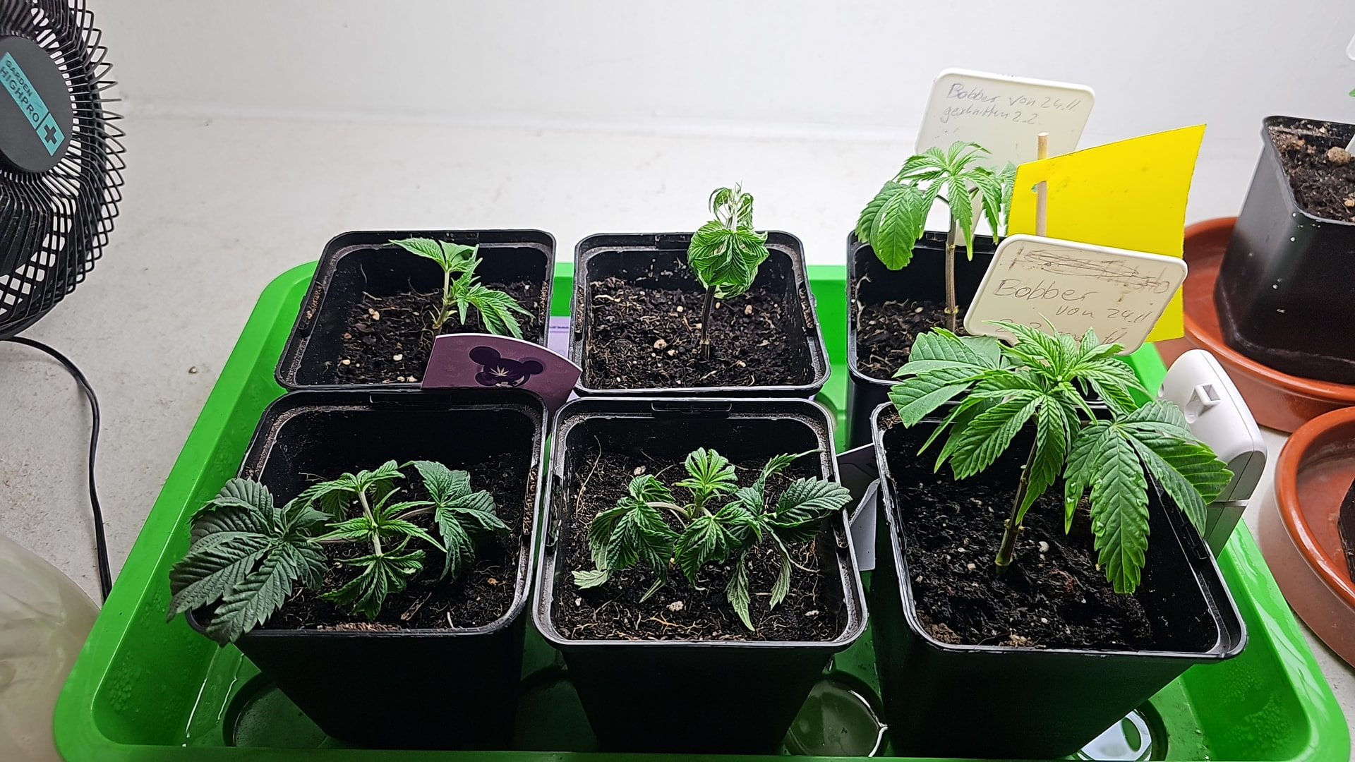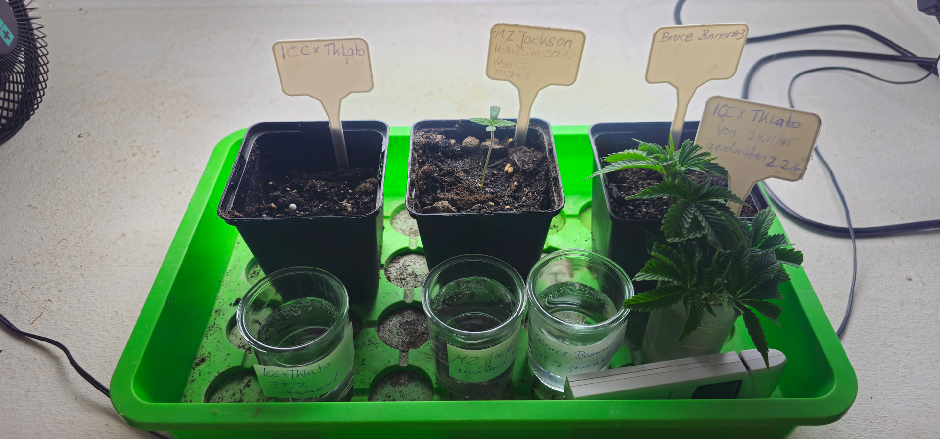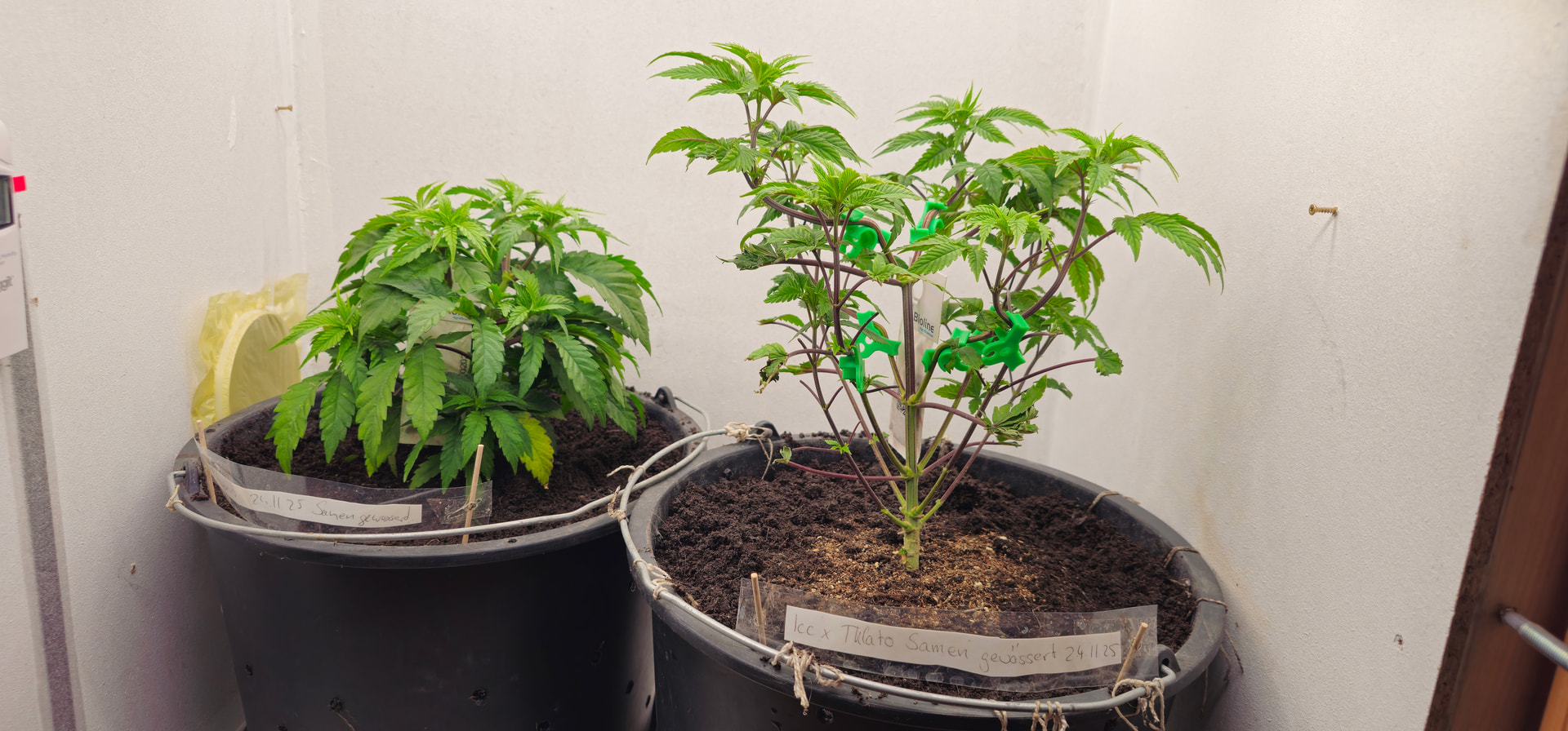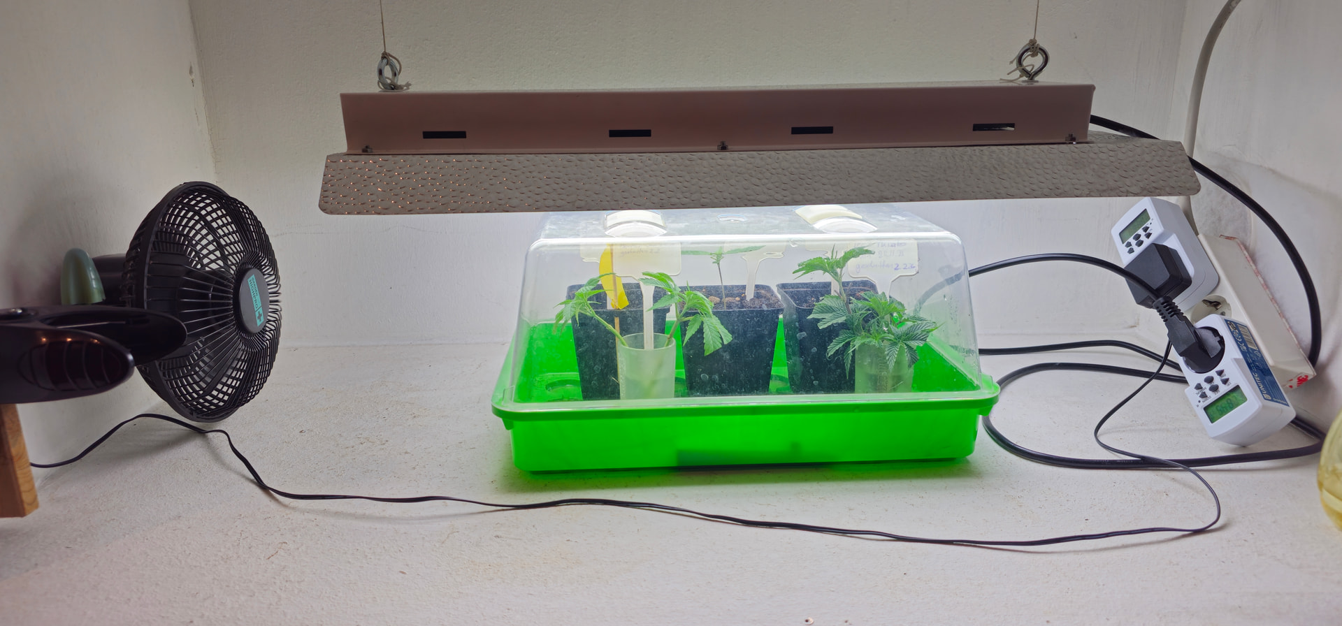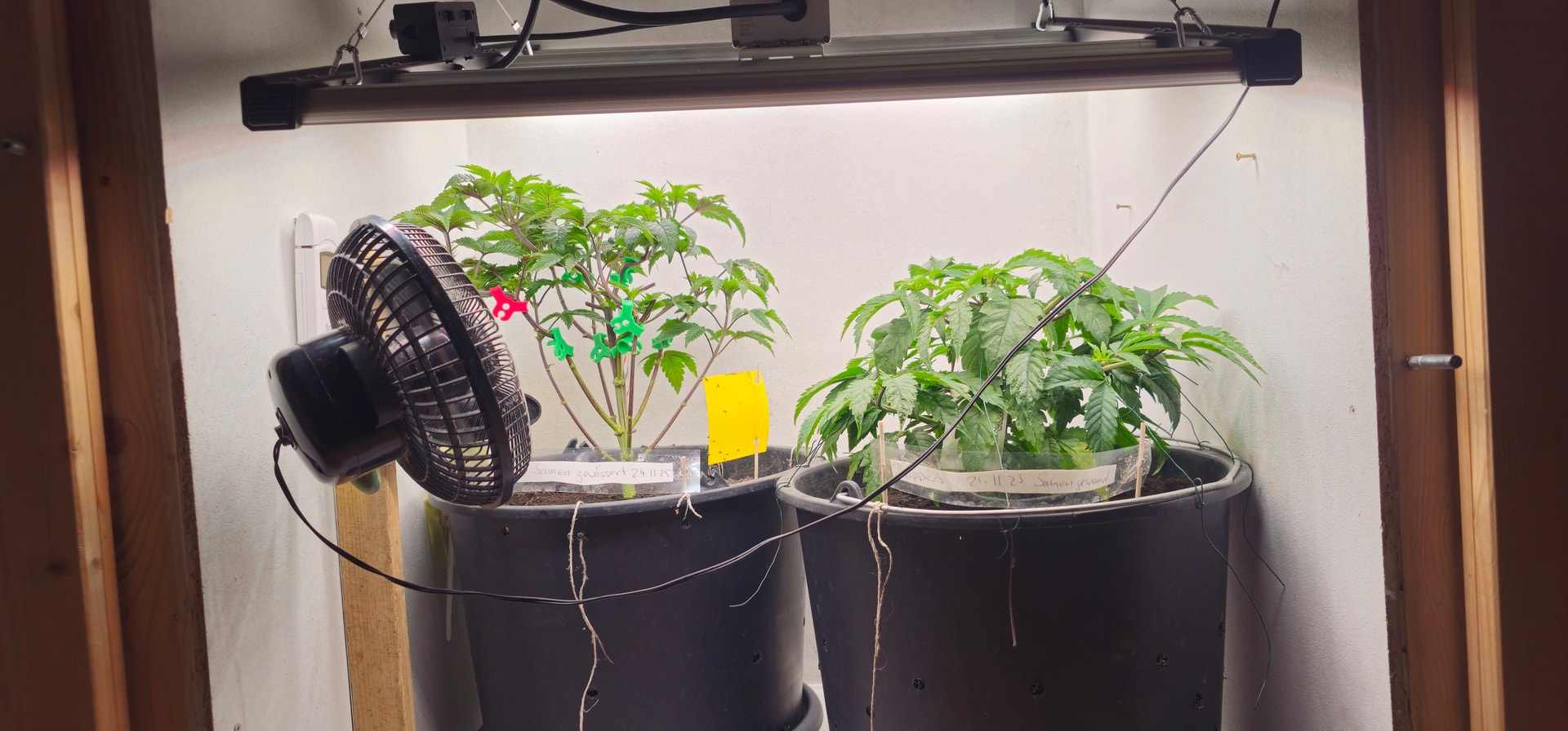 Begonnen hat die reale Dokumentation am 24.11., als ich die Samen gewässert habe und schon einen angefangenen Grow mit Stecklingen am Laufen hatte.