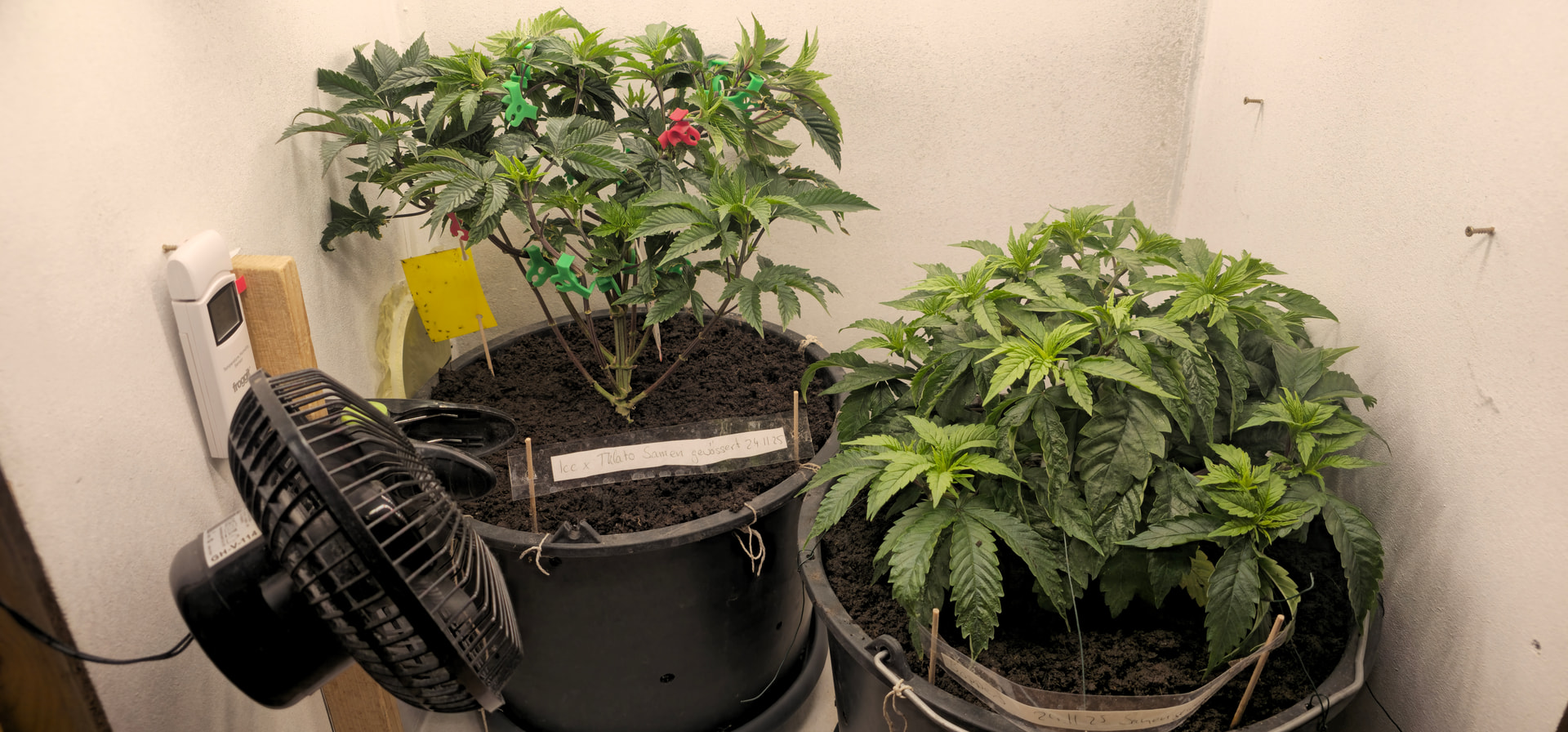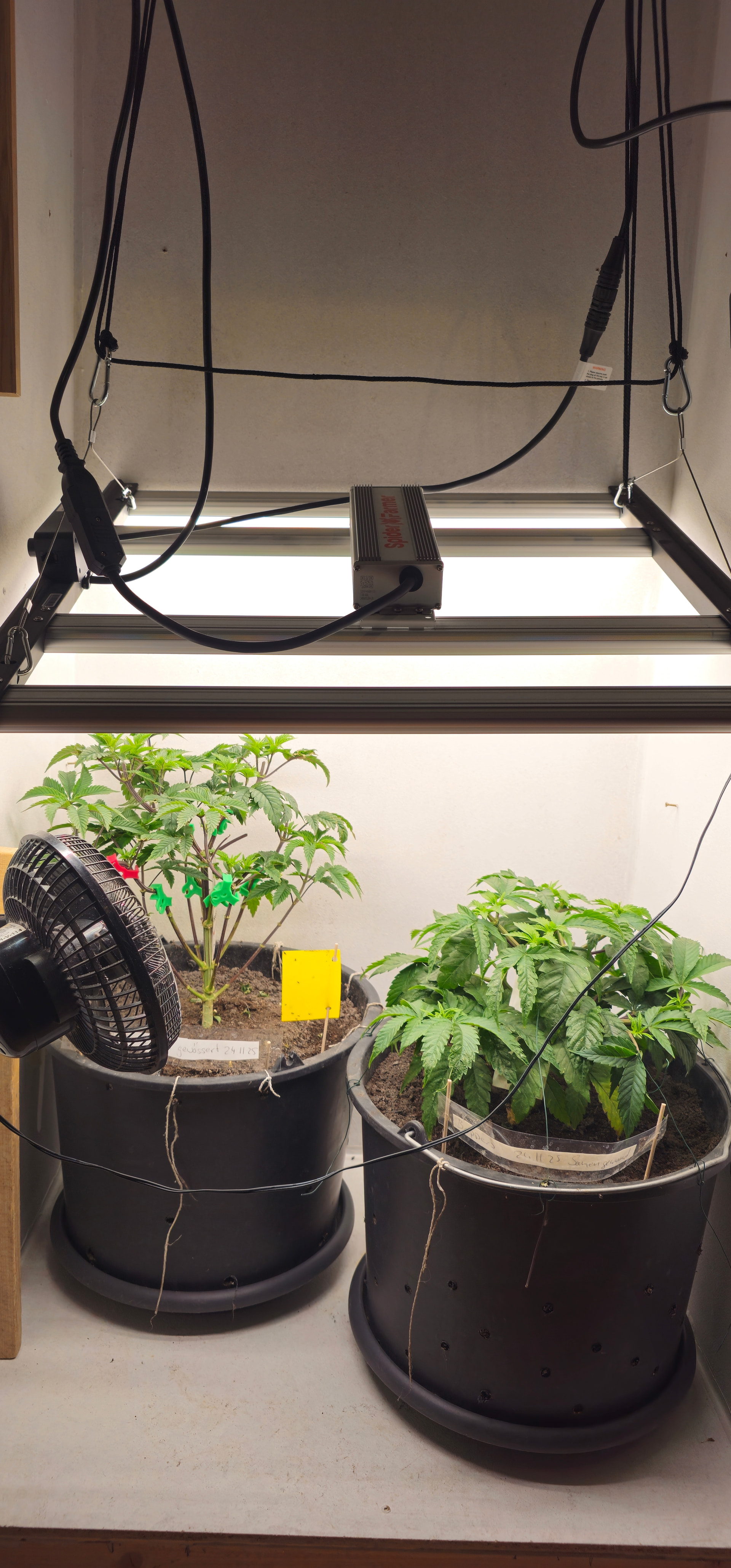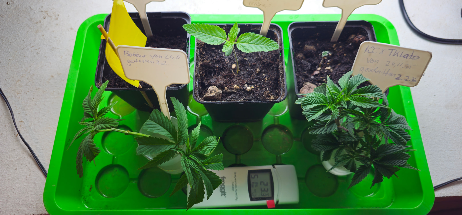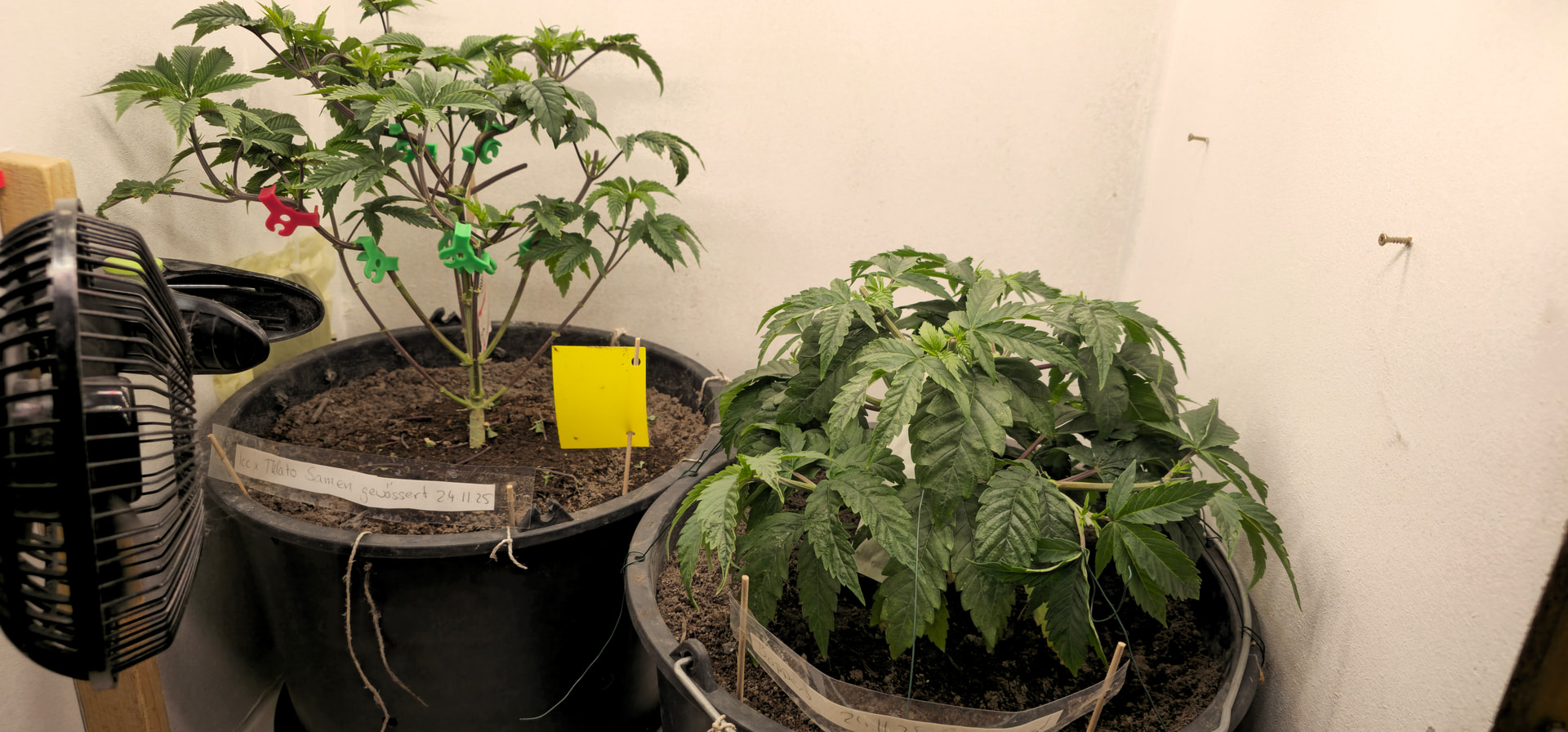 Begonnen hat die reale Dokumentation am 24.11., als ich die Samen gewässert habe und schon einen angefangenen Grow mit Stecklingen am Laufen hatte.