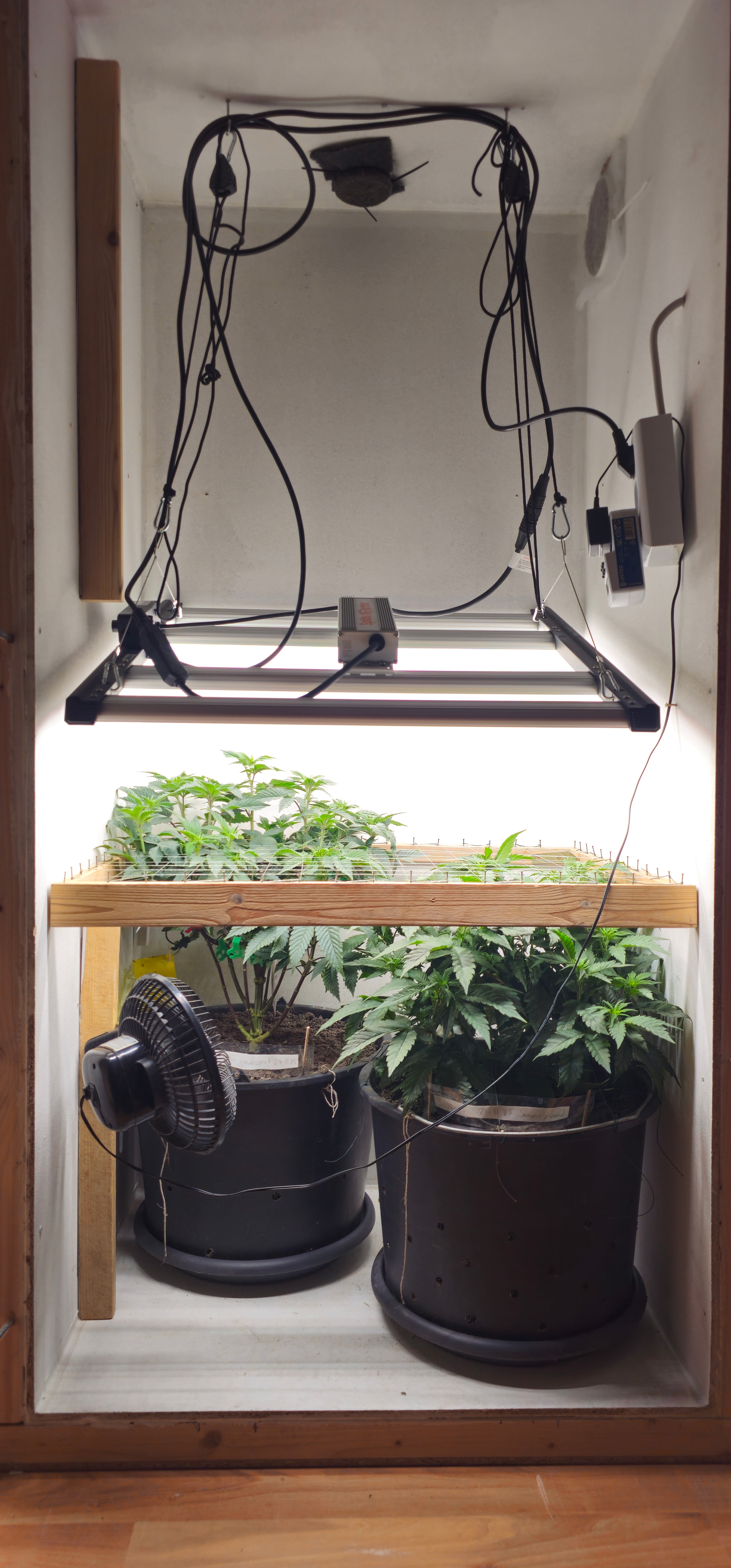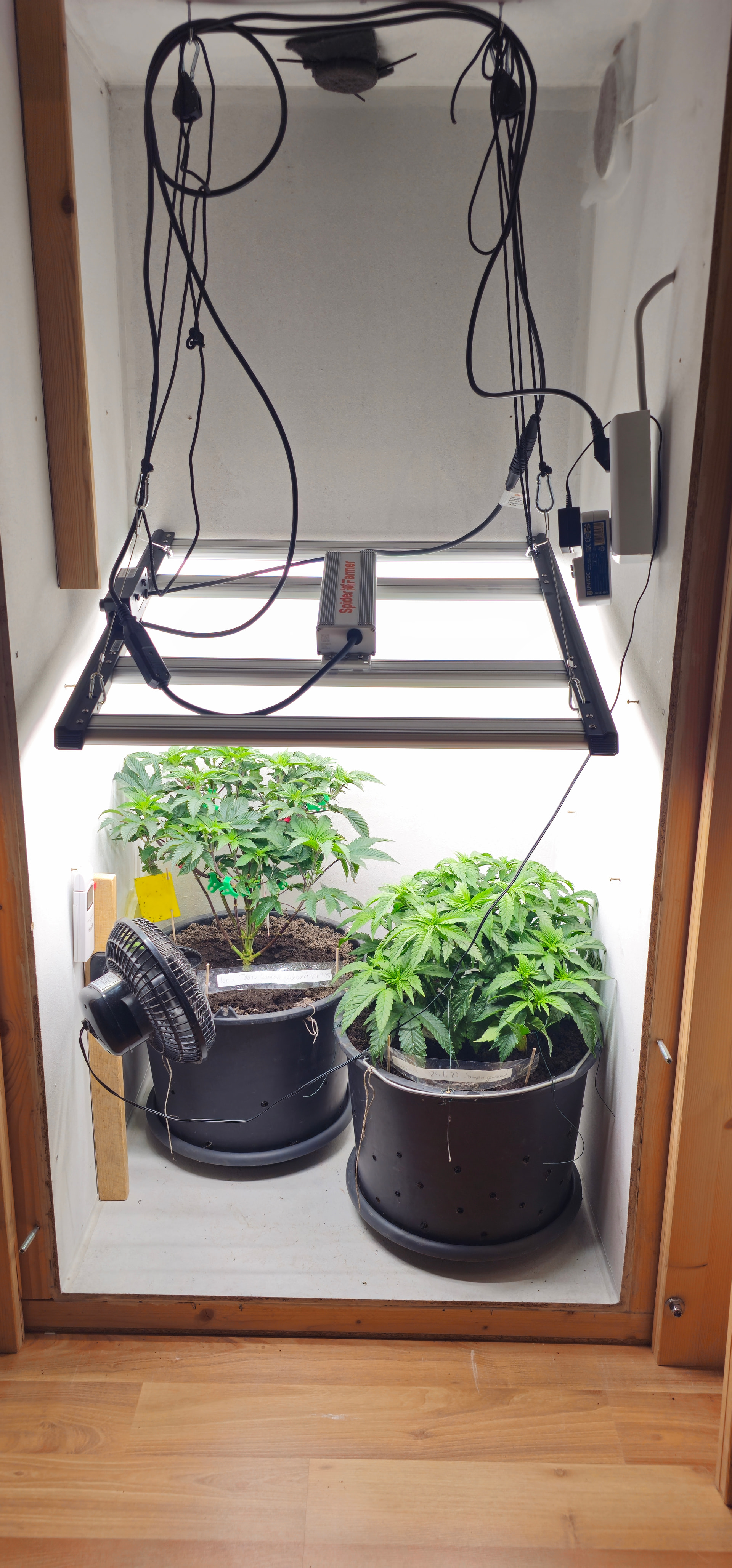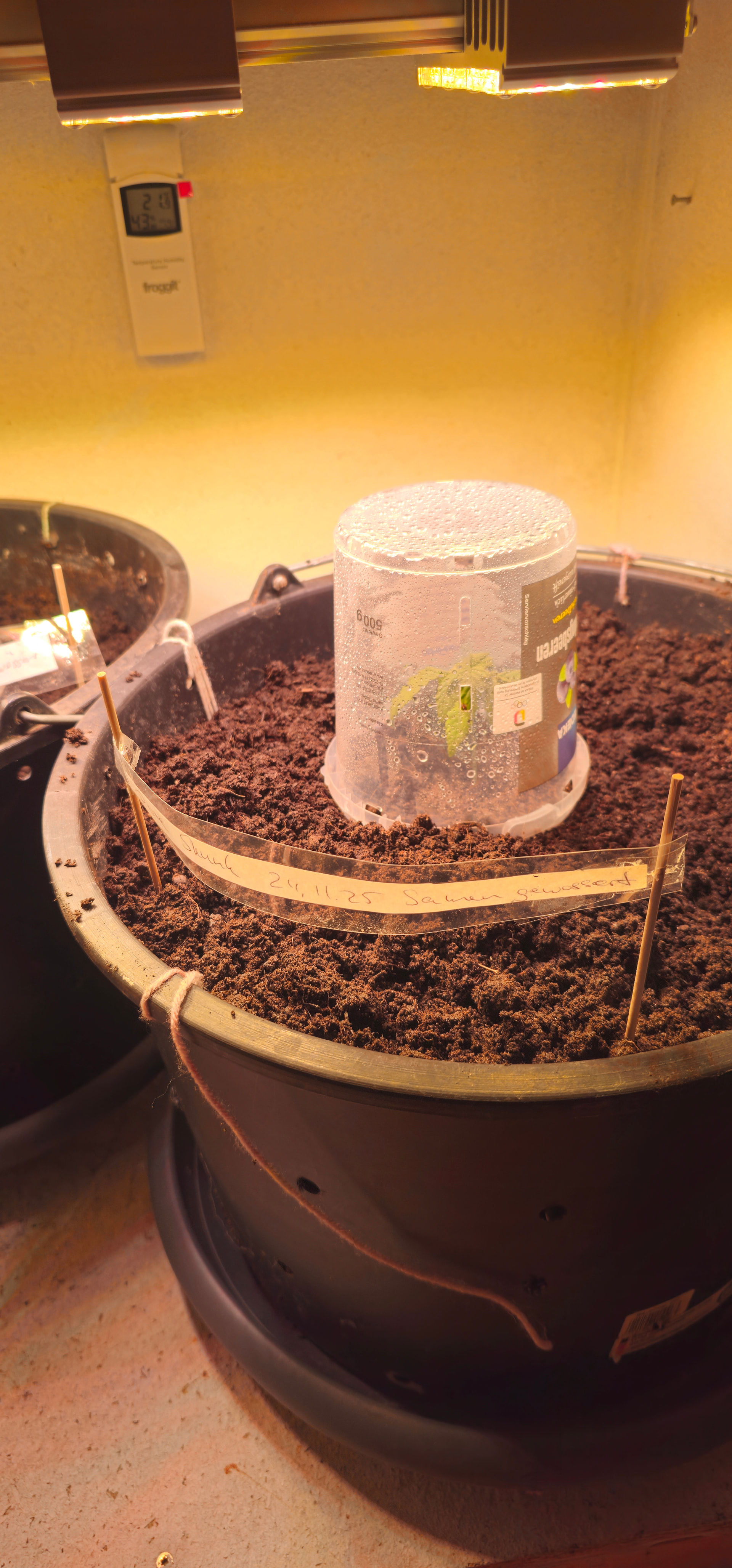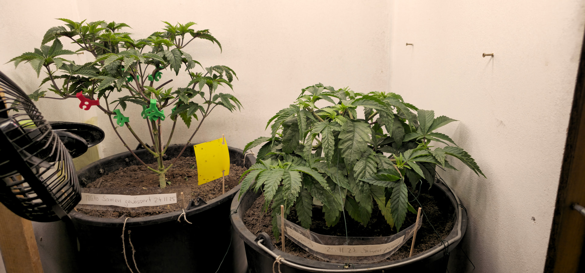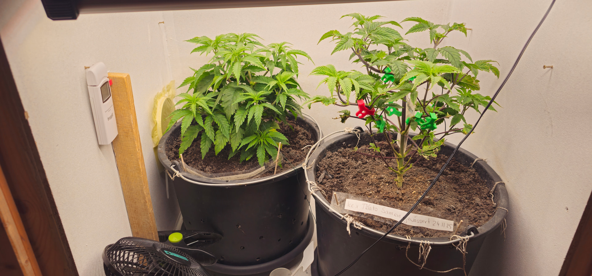 Begonnen hat die reale Dokumentation am 24.11., als ich die Samen gewässert habe und schon einen angefangenen Grow mit Stecklingen am Laufen hatte.