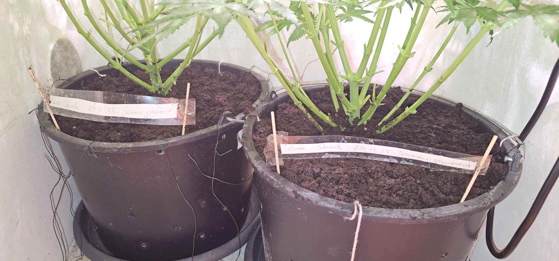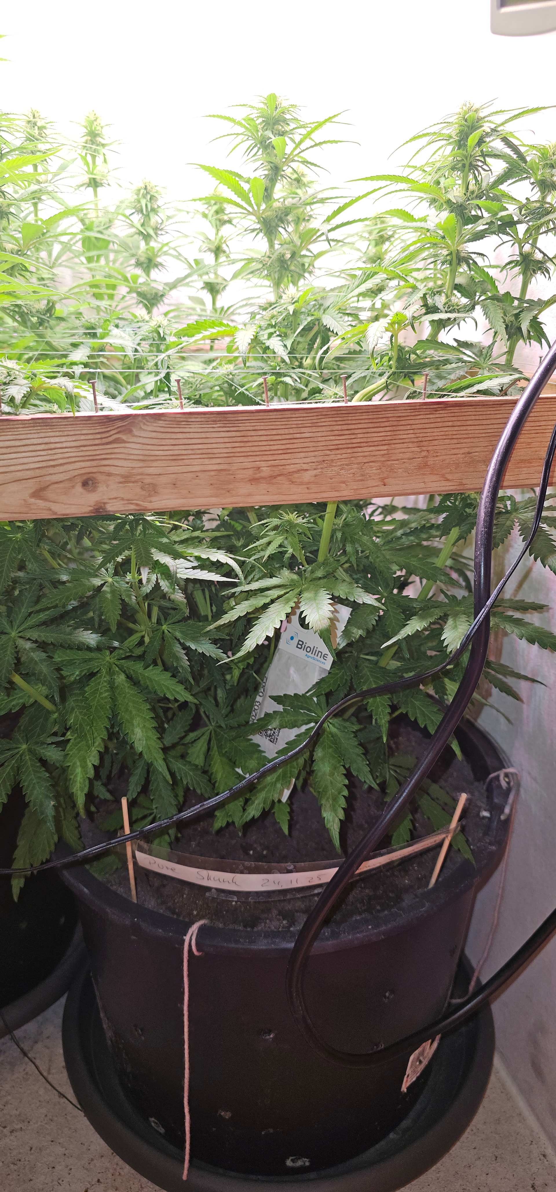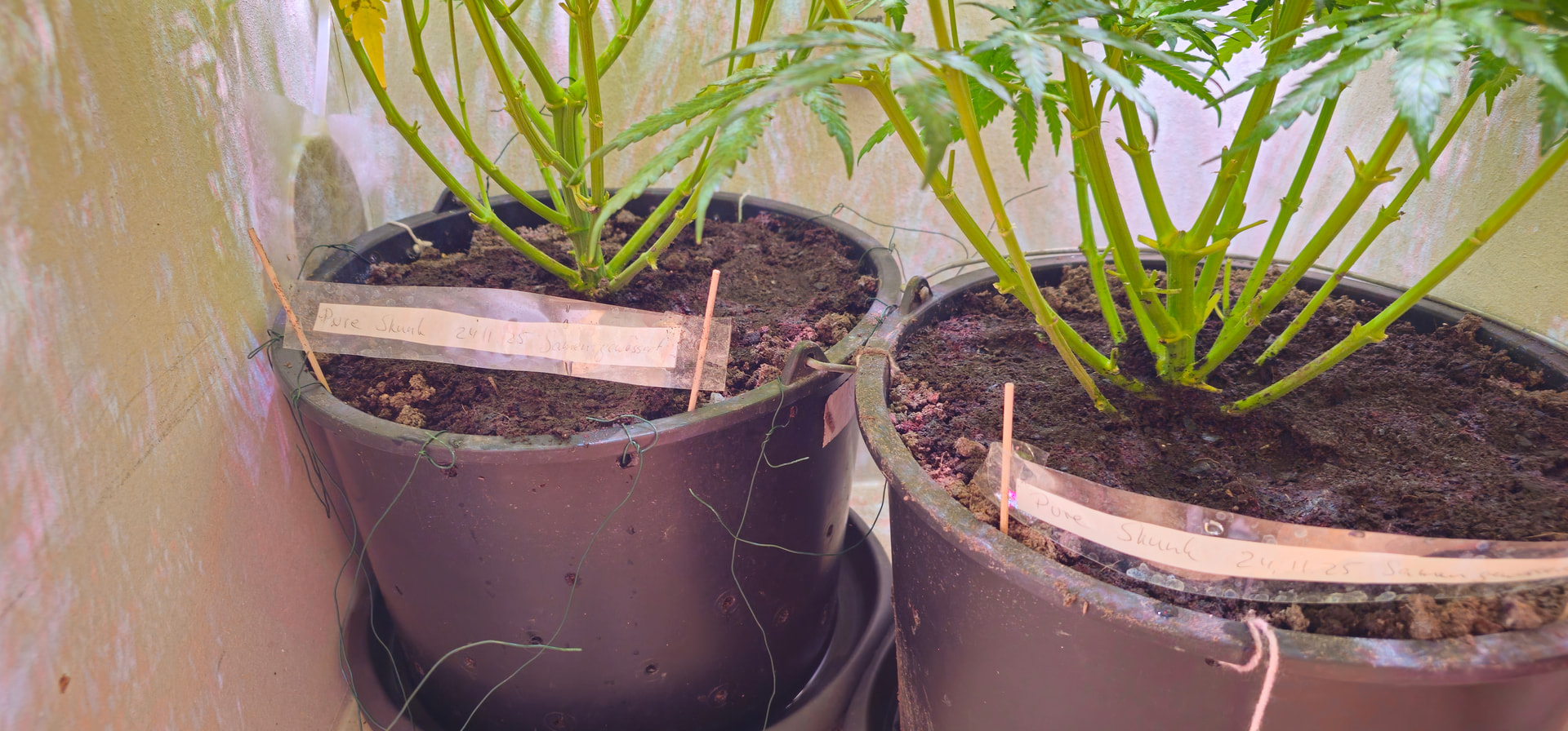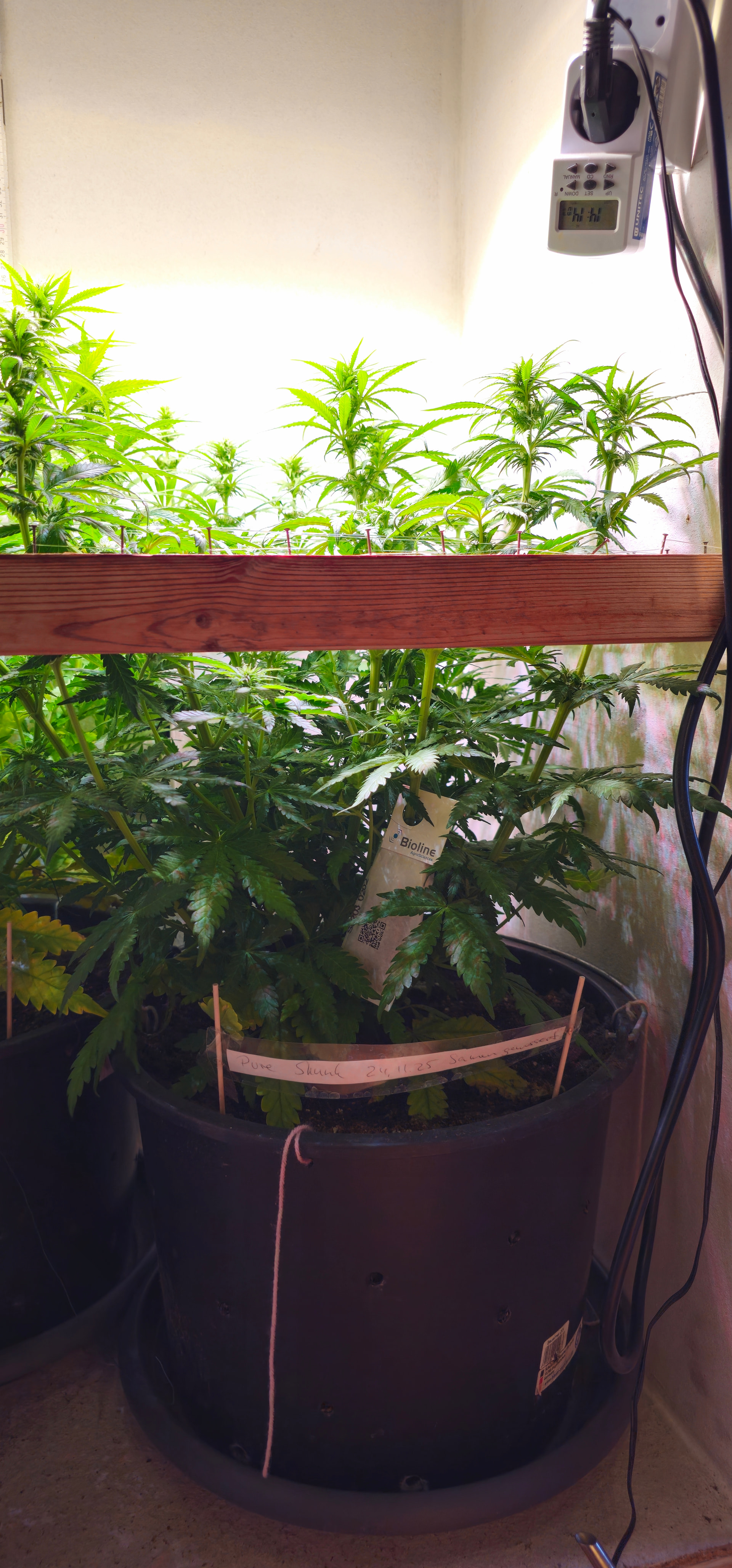 Pure Skunk #2: Umgetopft in Living Soil 25l, sind umgezogen vom Veggiraum in den Blüteraum 1.