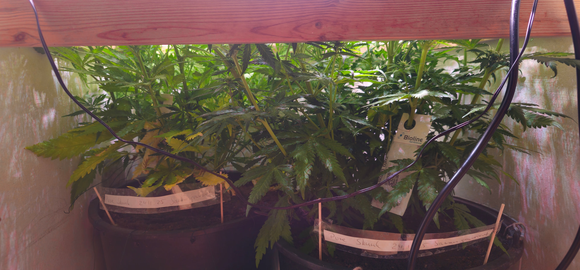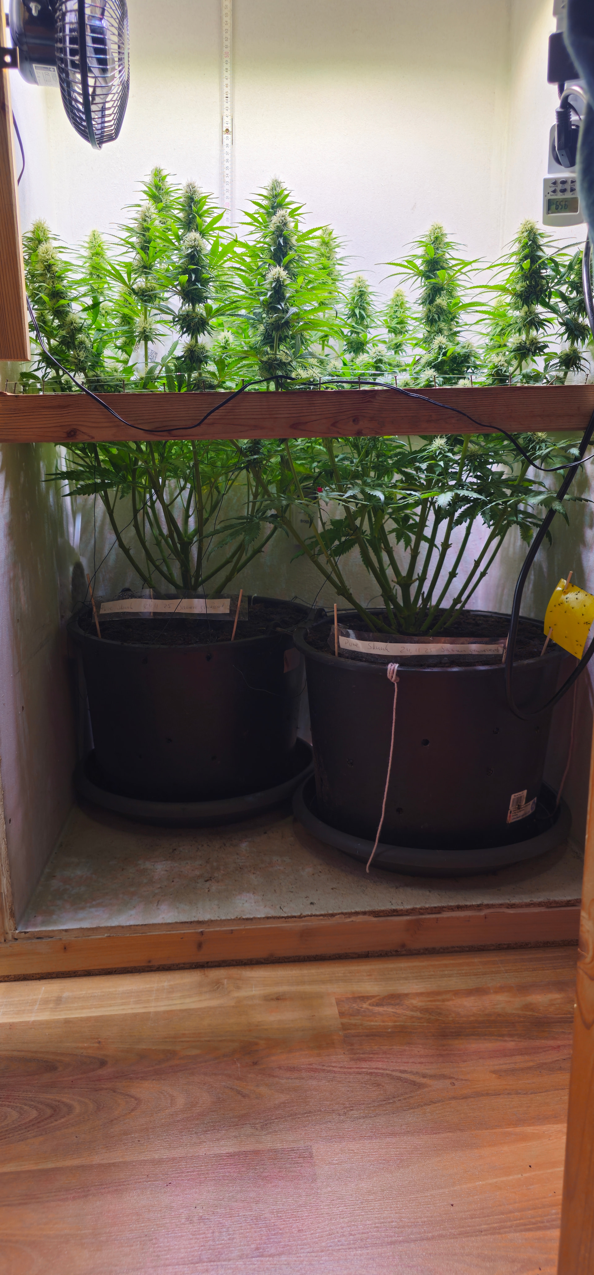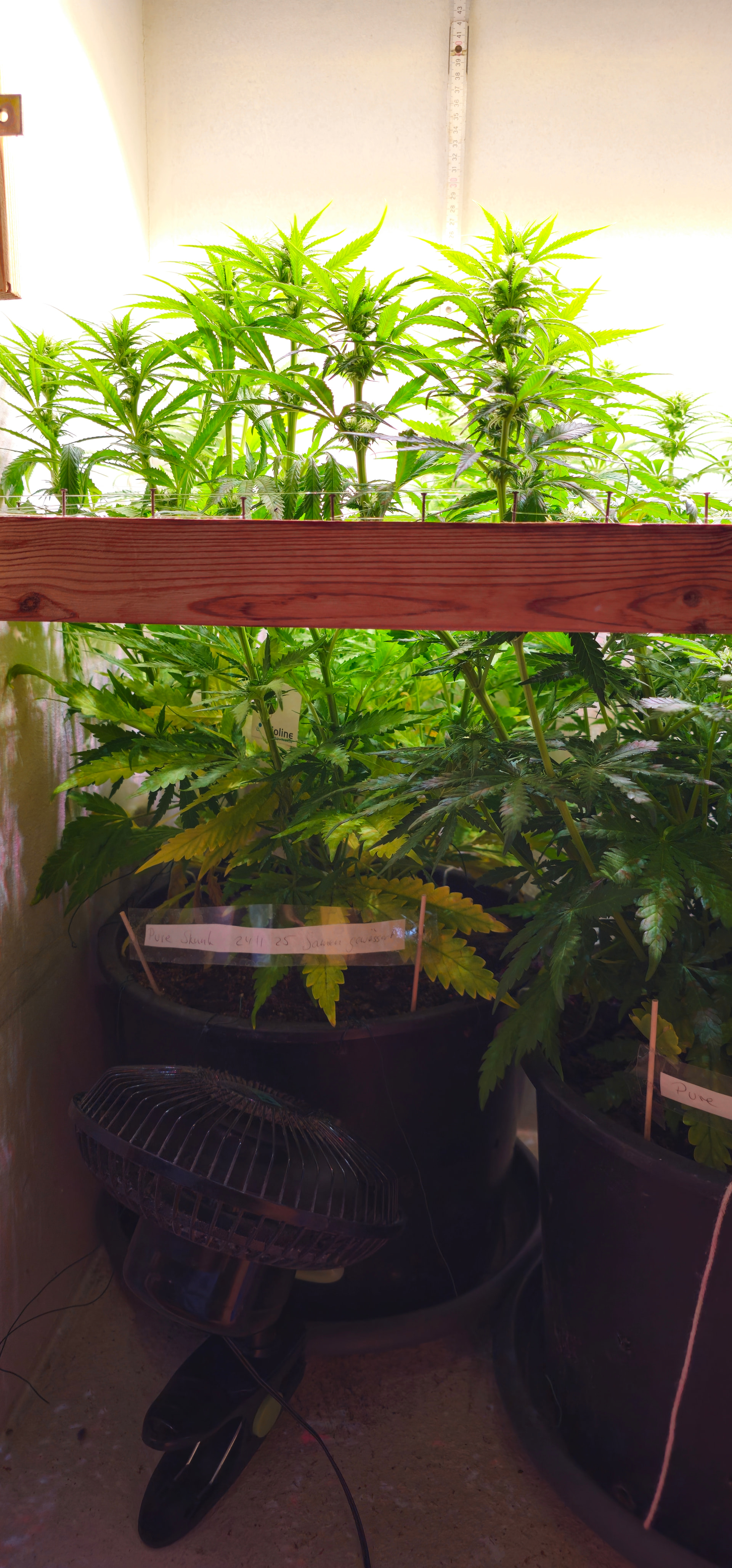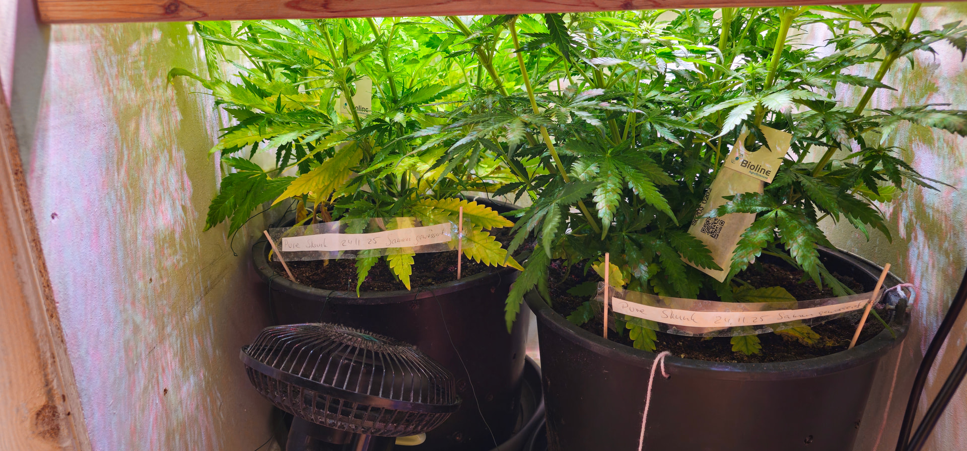 Pure Skunk #2: Umgetopft in Living Soil 25l, sind umgezogen vom Veggiraum in den Blüteraum 1.