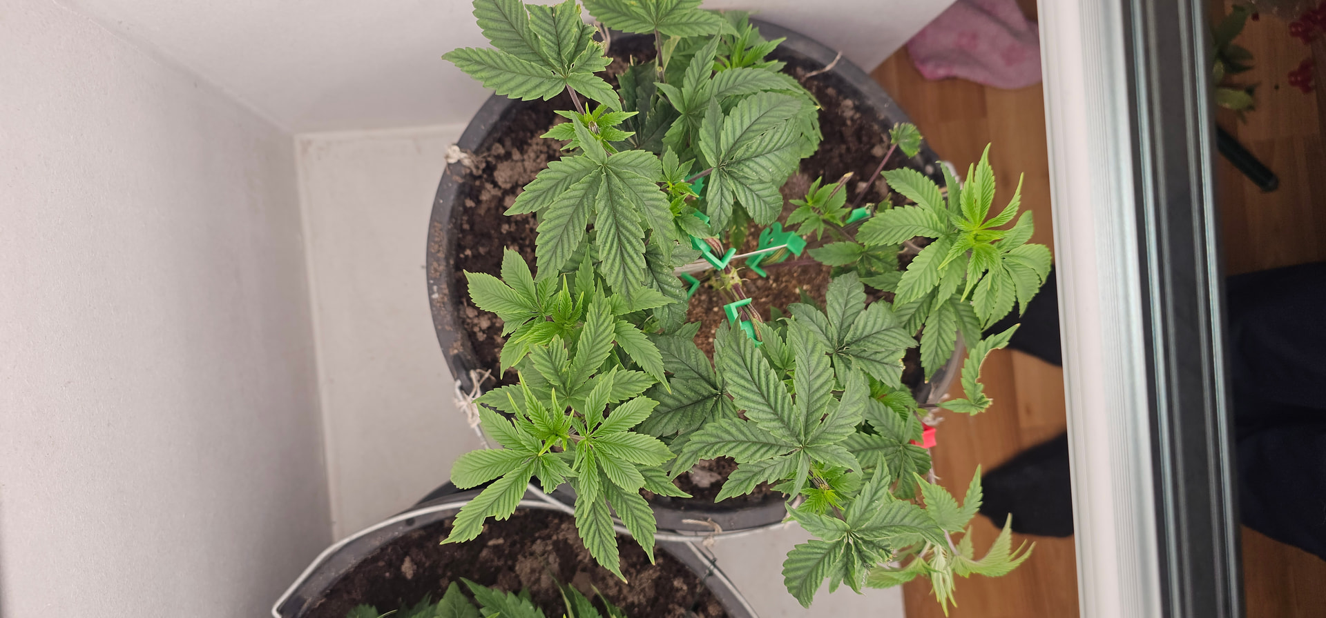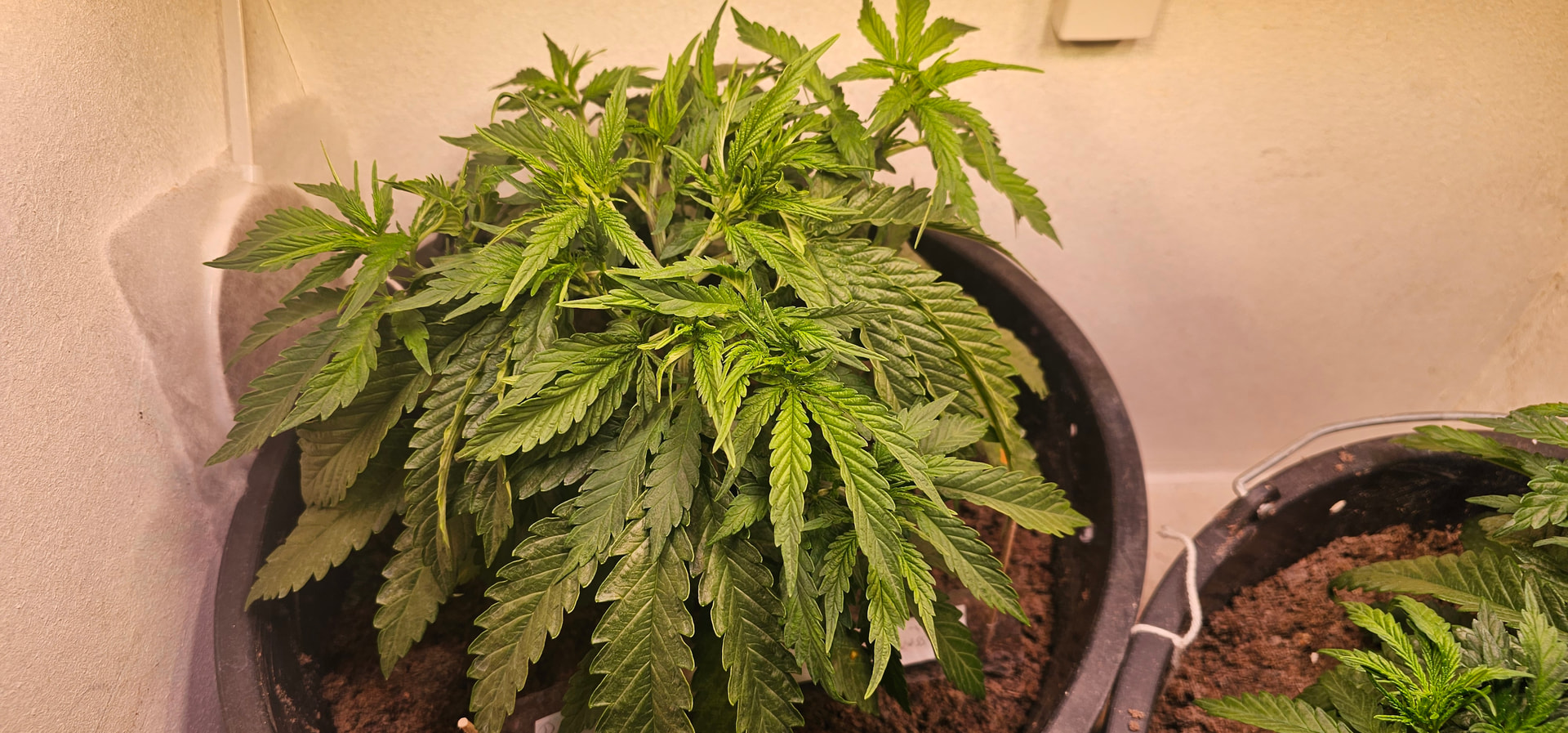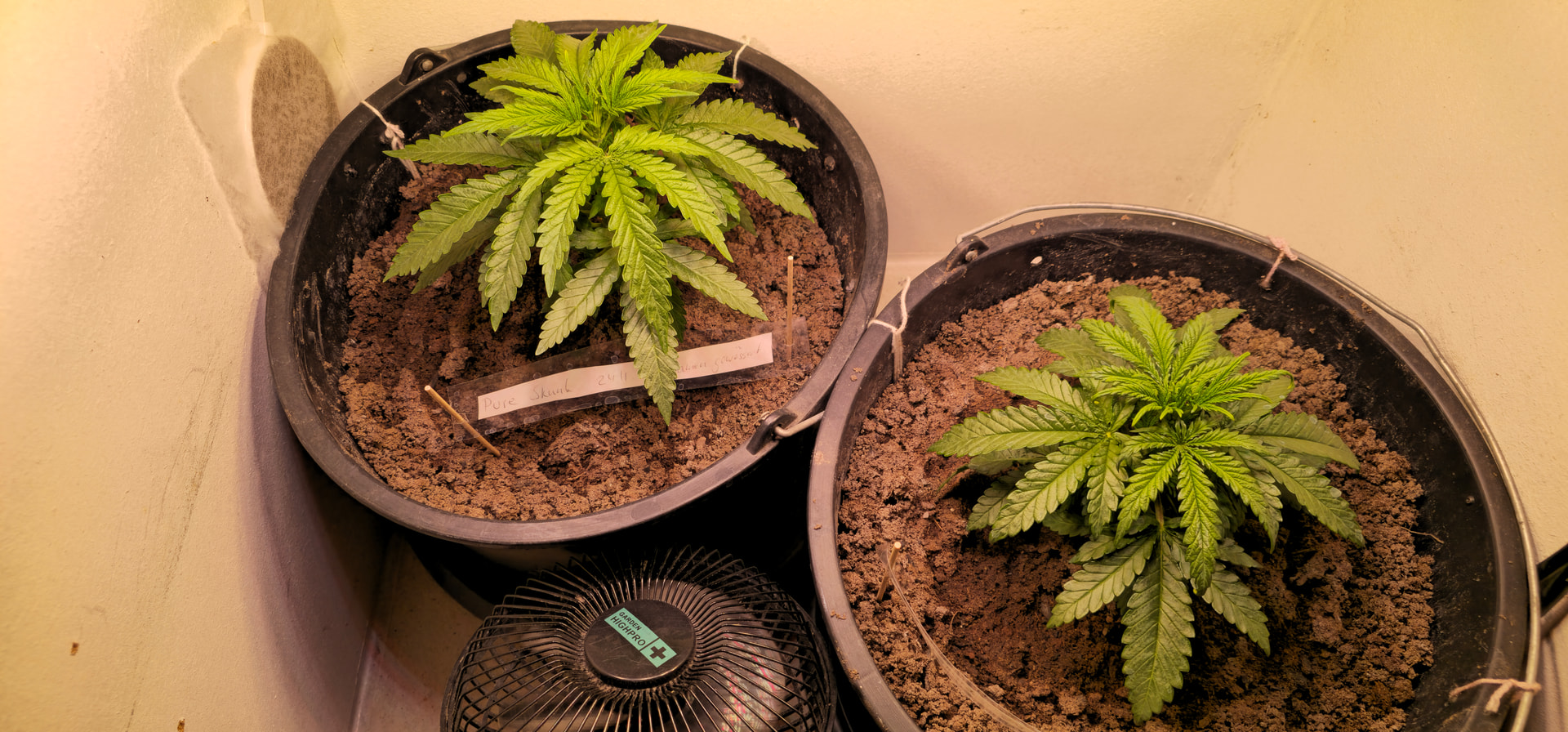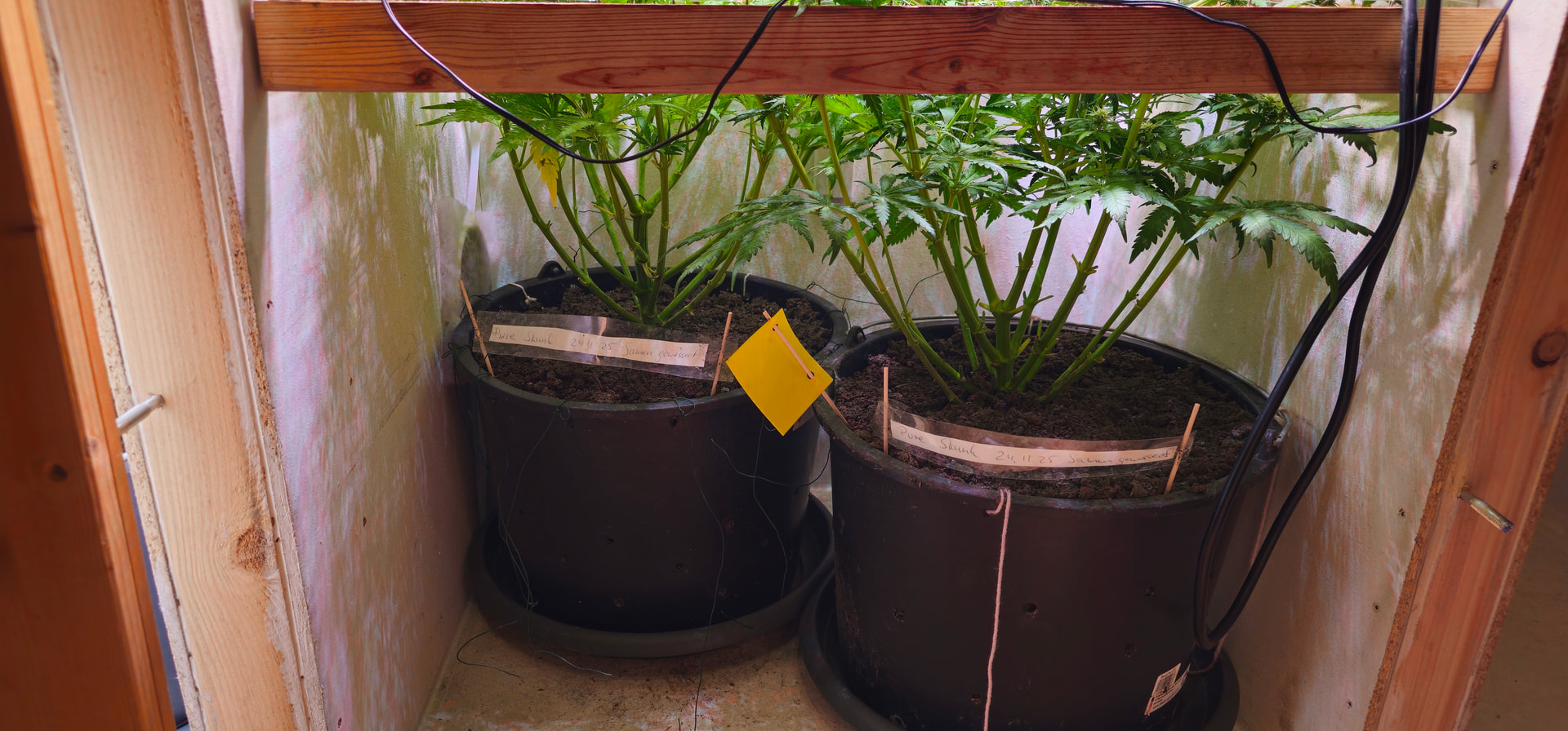 Pure Skunk #2: Umgetopft in Living Soil 25l, sind umgezogen vom Veggiraum in den Blüteraum 1.