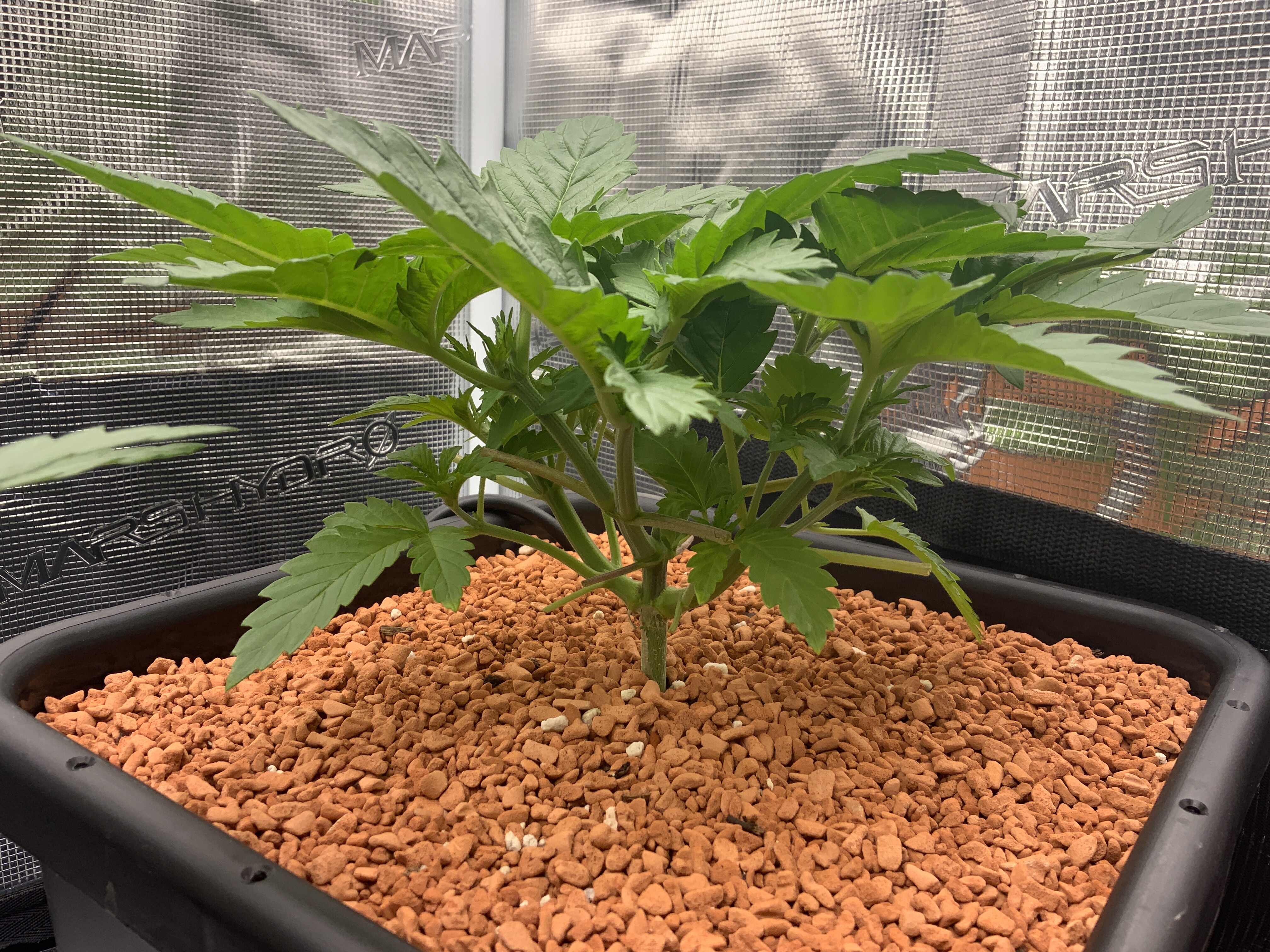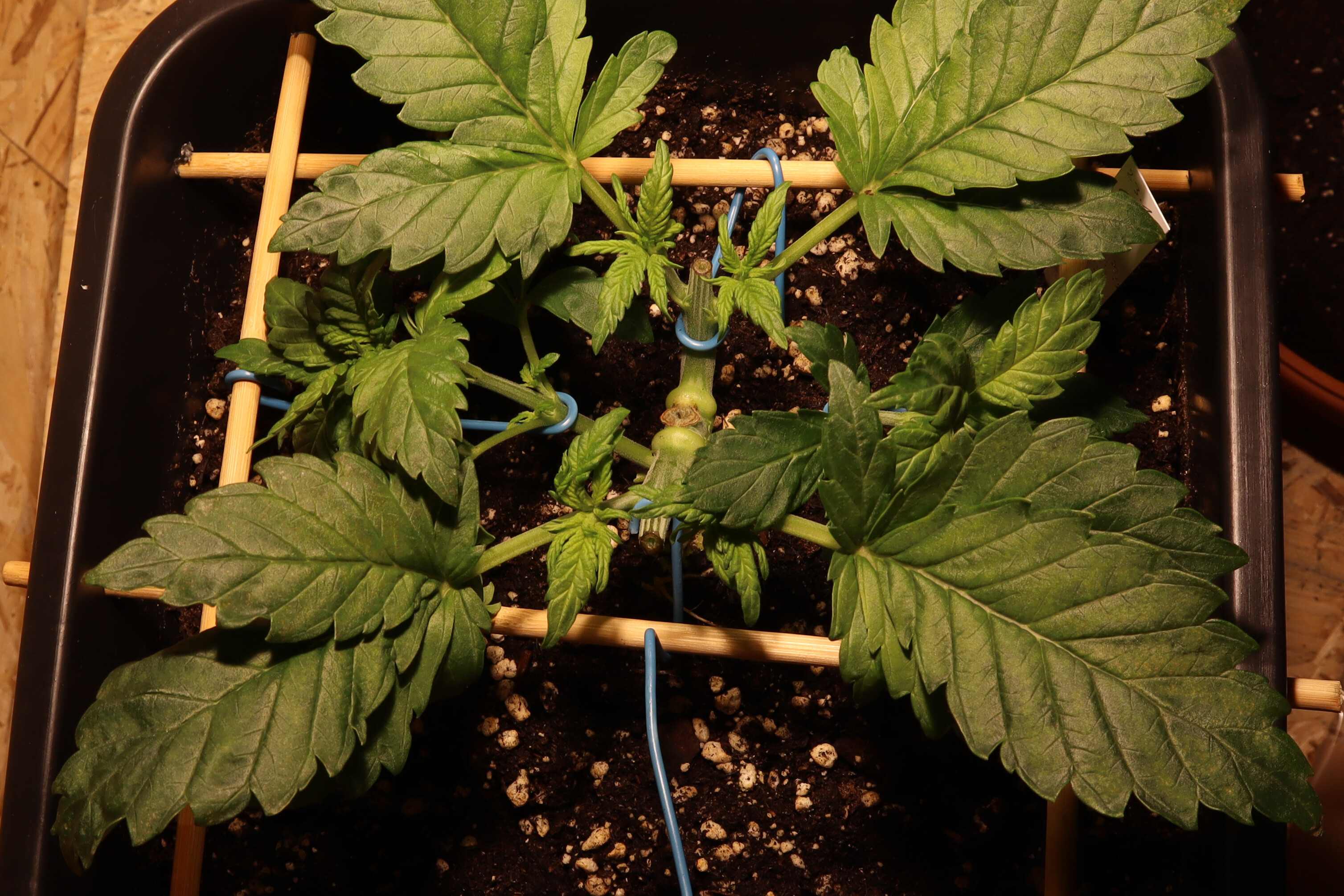 Die Topping-Phase ist jetzt abgeschlossen. Jetzt steht noch an die Pflanzen möglichst symmetrisch zu leiten, so dass sie möglichst die ganze Anbaufläche nutzen können.