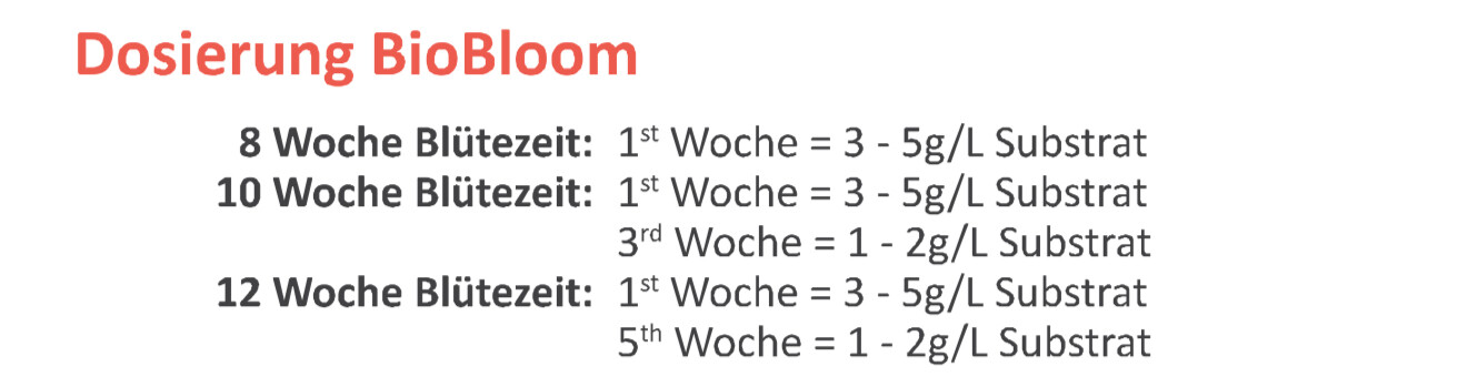 Vielleicht als Nachdüngung bei 10 Wochen. Da die Düngung ja nur 8 Wochen reicht, soll man am Anfang und in der dritten Woche düngen, damit das bis zur 10. Woche anhält.