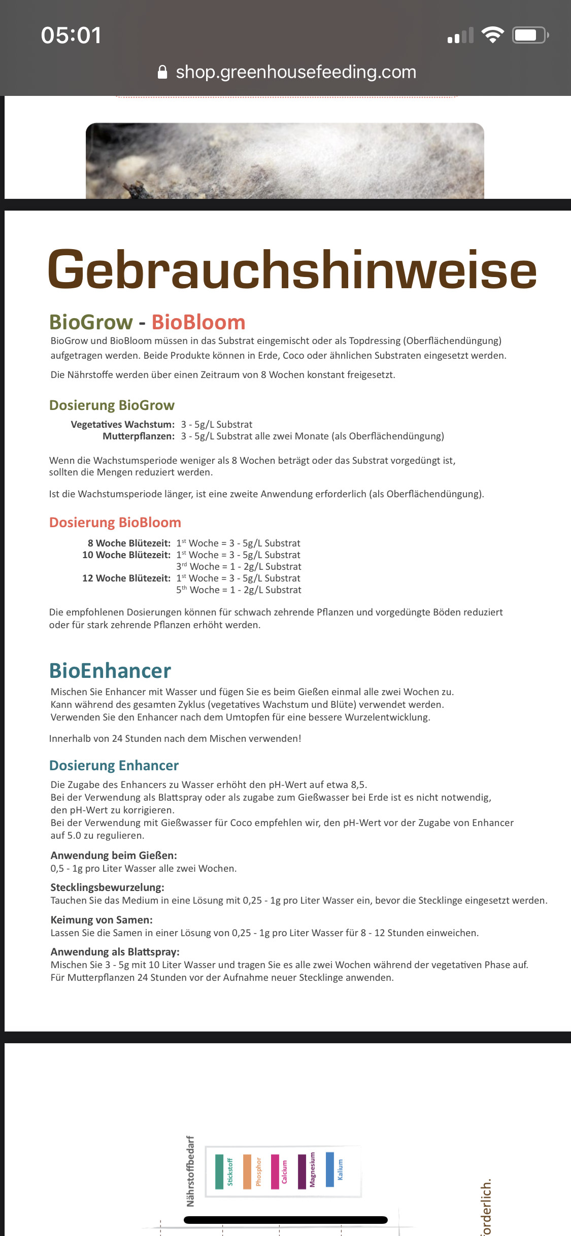 Habe mir den Dünger jetzt bestellt will das mit meinem nächsten grow mal ausprobieren habe mal dennoch eine Frage : der Biogrow wenn man ihn richtig anwendet hält er ja 8 Wochen sagen wir aber mal ich habe 6 Wochen Vegetationphase brauch ich nicht auch davon bisschen was für meine Blütephase die sagen wir 10-12 Wochen gehen würde oder ist im Biobloom alles drin was die Pflanze braucht in der Blüte? Weil sie ja am Anfang durch den stretch sehr hungrig nach N sind und dafür sorgt ja der Biogrow oder nicht ![]()