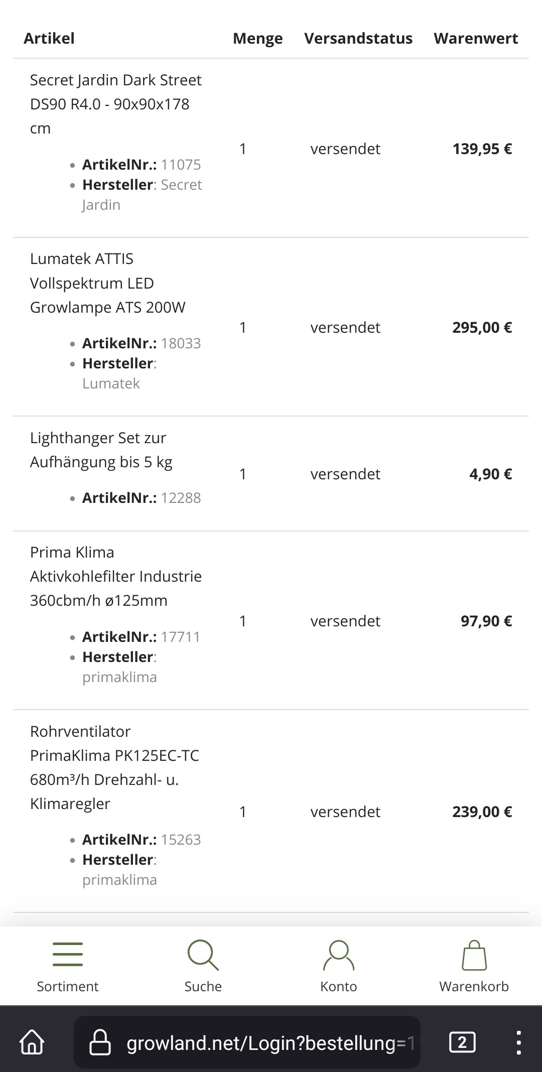 Hier der Auszug meiner ersten Bestellung von vor ziemlich genau einem Jahr: