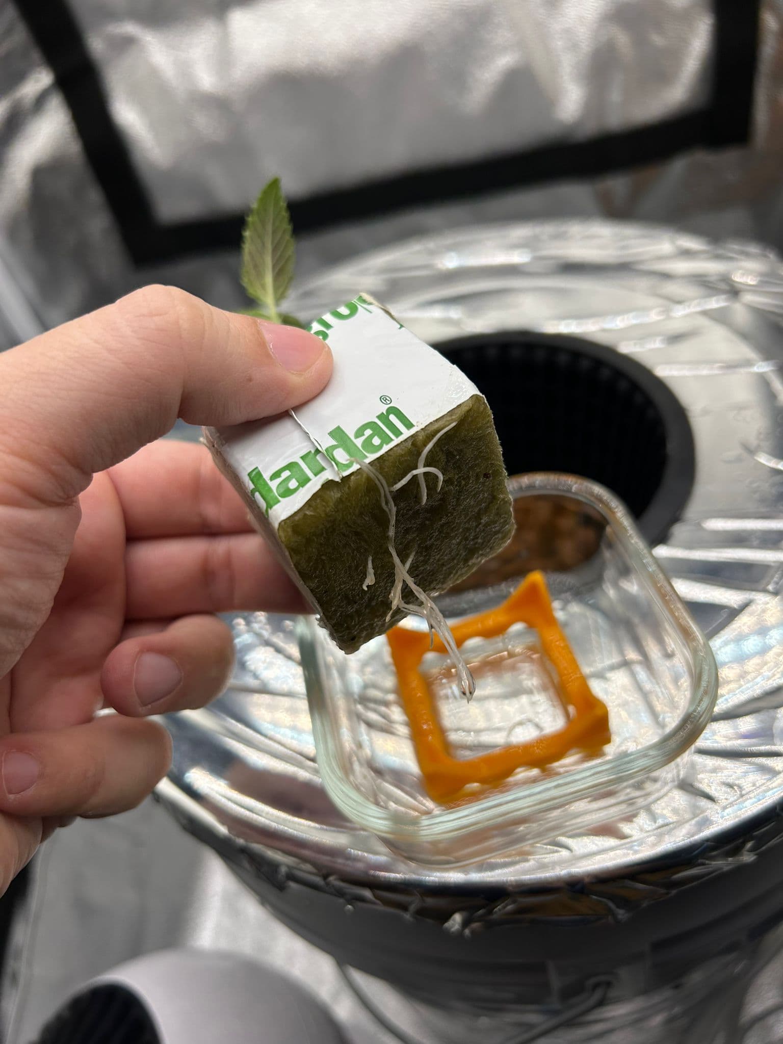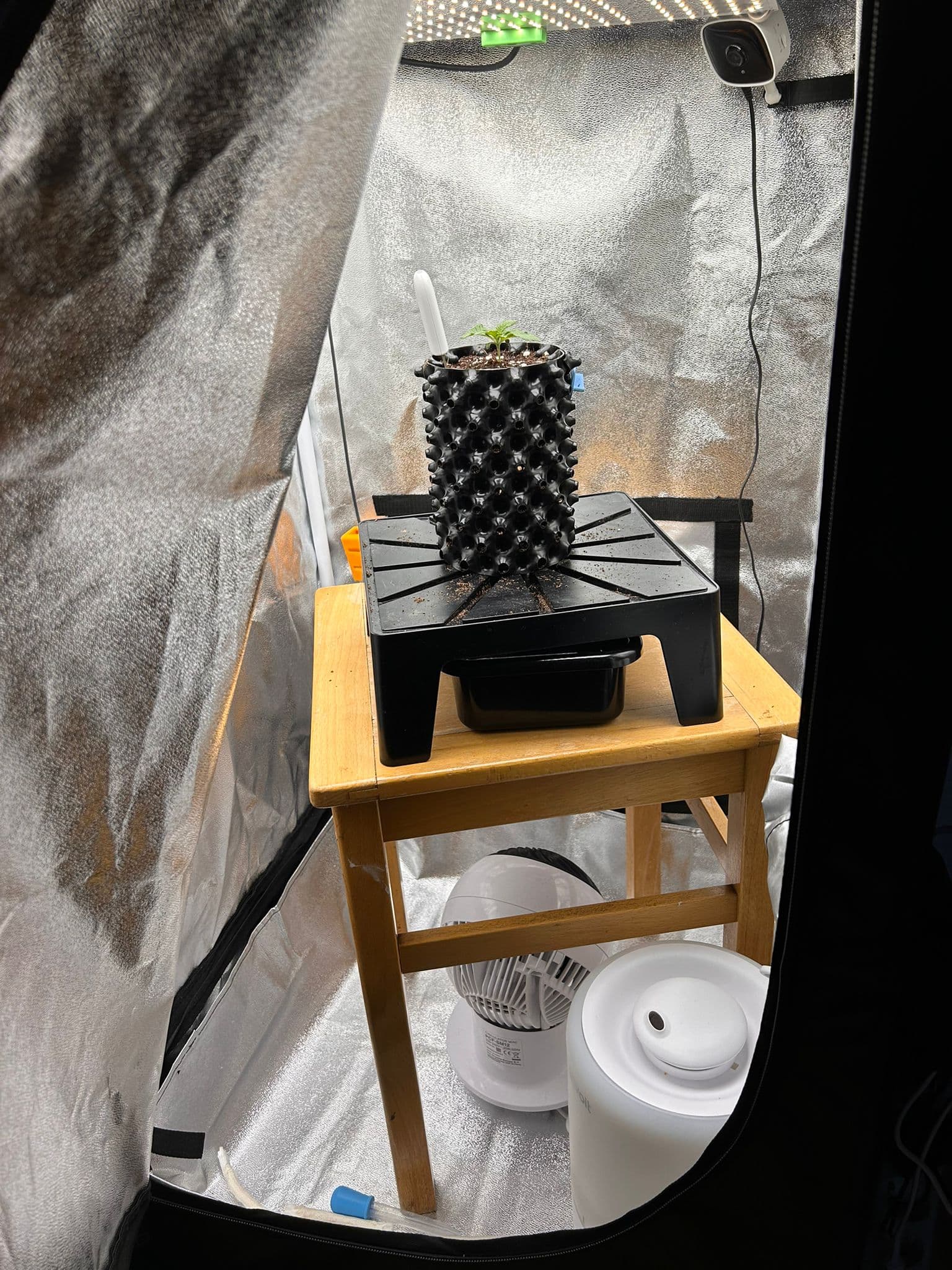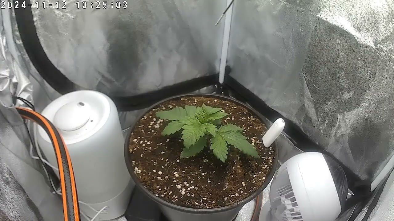 Location: Indoor, DiamondBox SL58 (58cm x 58cm x 180cm) Beleuchtung: YXO Quantum Board 150W LM282B, geregelt via DIY Monitoring Abluft: Mars Hydro iFresh 4" mit eigener Firmware auf dem ESP32, geregelt via DIY Monitoring Umluft: Mars Hydro Clip Fan und Iris Ohyama Woooo Growmedium: Steinwolle in Blähton (hihi) in Hydro, als DIY Setup aus ~19l Magic Bucket mit 14cm Netztopf, DIY Monitoring Sämling in Jiffy-Pod, später in 70/30 Coco/Perlit Dünger: Terra Aquatica Tripart für weiches Wasser mit H2O2 Bewässerung: RO-Wasser, zunächst von oben per Hand, später als Wicking-System von unten hoffentlich automatisch