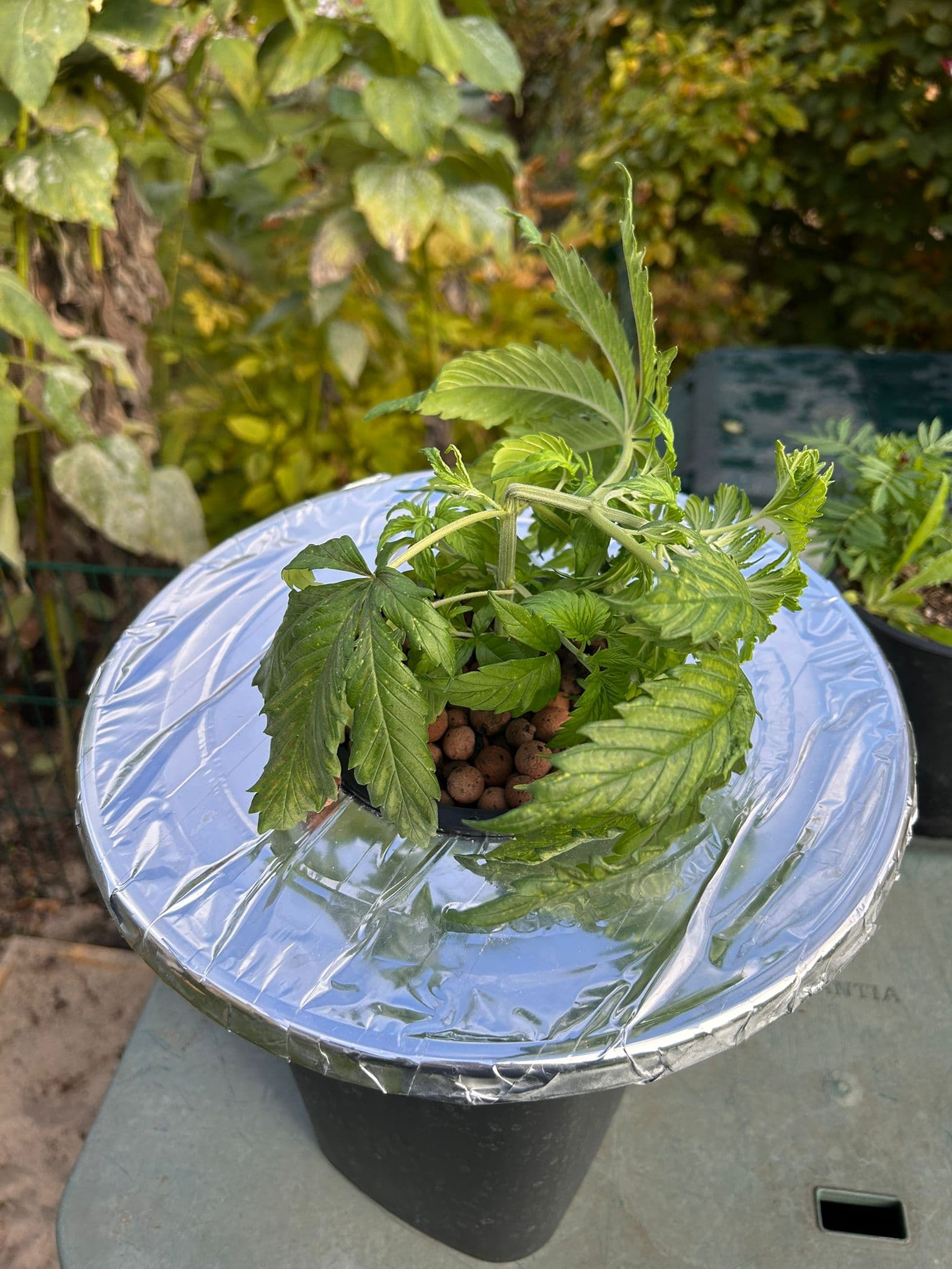 Yo Schnuckies, weil der Thread hier so gut ankommt mal ein kleines Update! Der Pflanze geht es so weit gut, am letzten Sonntag zog sie dann in den finalen Topf mit etwa 7l Volumen. Dieser steht auf einer 3D-gedruckten Basis mit einem Dochtsystem, womit die Pflanze sich automatisch mit Närlösung versorgen kann. Das System ist hier beschrieben: https://www.youtube.com/watch?v=4M087652-e8