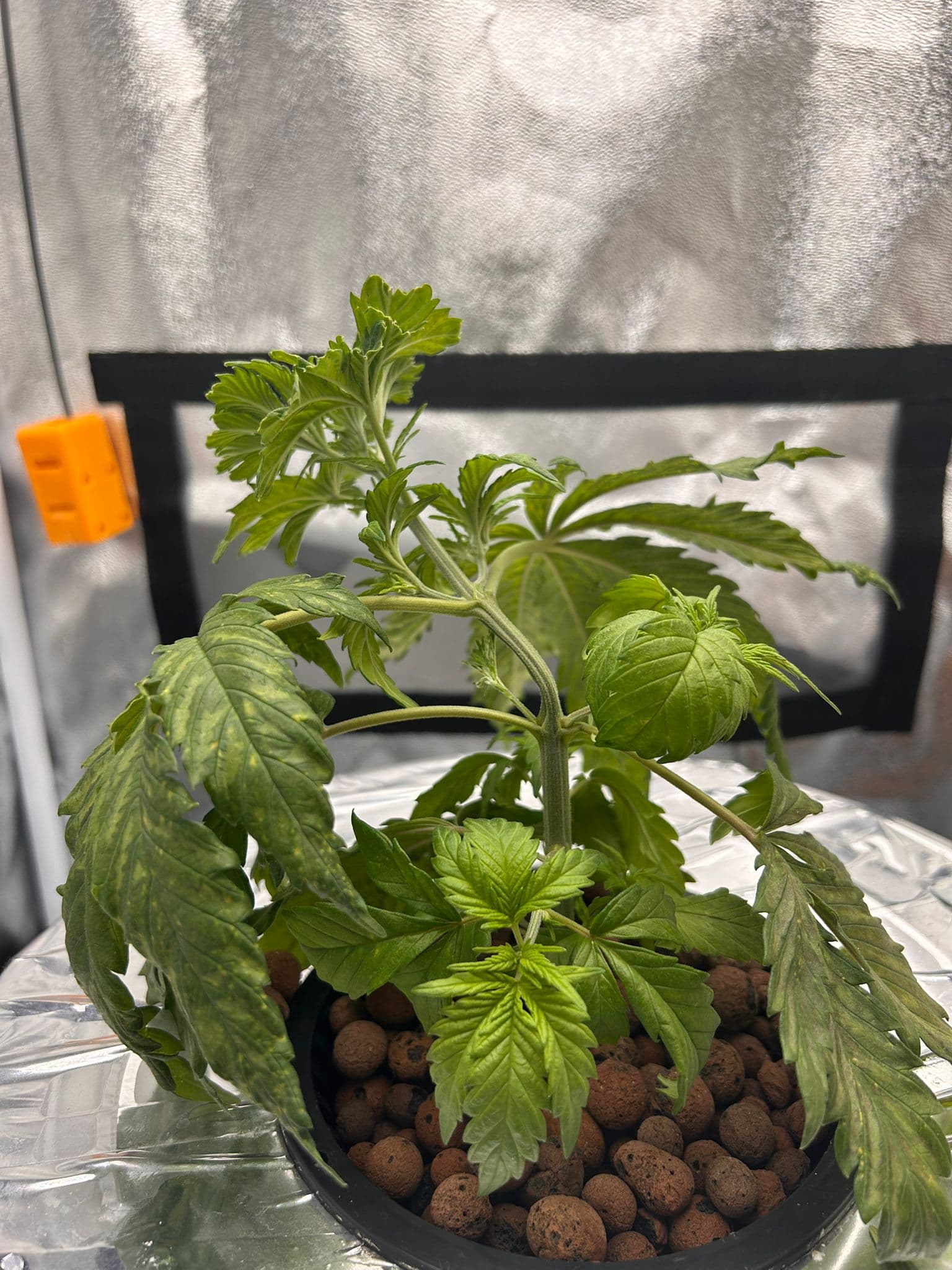 An sich wächst die Dame nun ordentlich weiter, aber die Blätter sehen zunehmendst komisch auf. Könnte das ein Calcium-Mangel sein? Prinzipiell sollte das TriPart-Zeuch für weiches Wasser ausreichend CalMag mitbringen, zumindest steht das so in der Anleitung, dass man auch bei RO-Wasser kein weiteres CalMag benötigt.