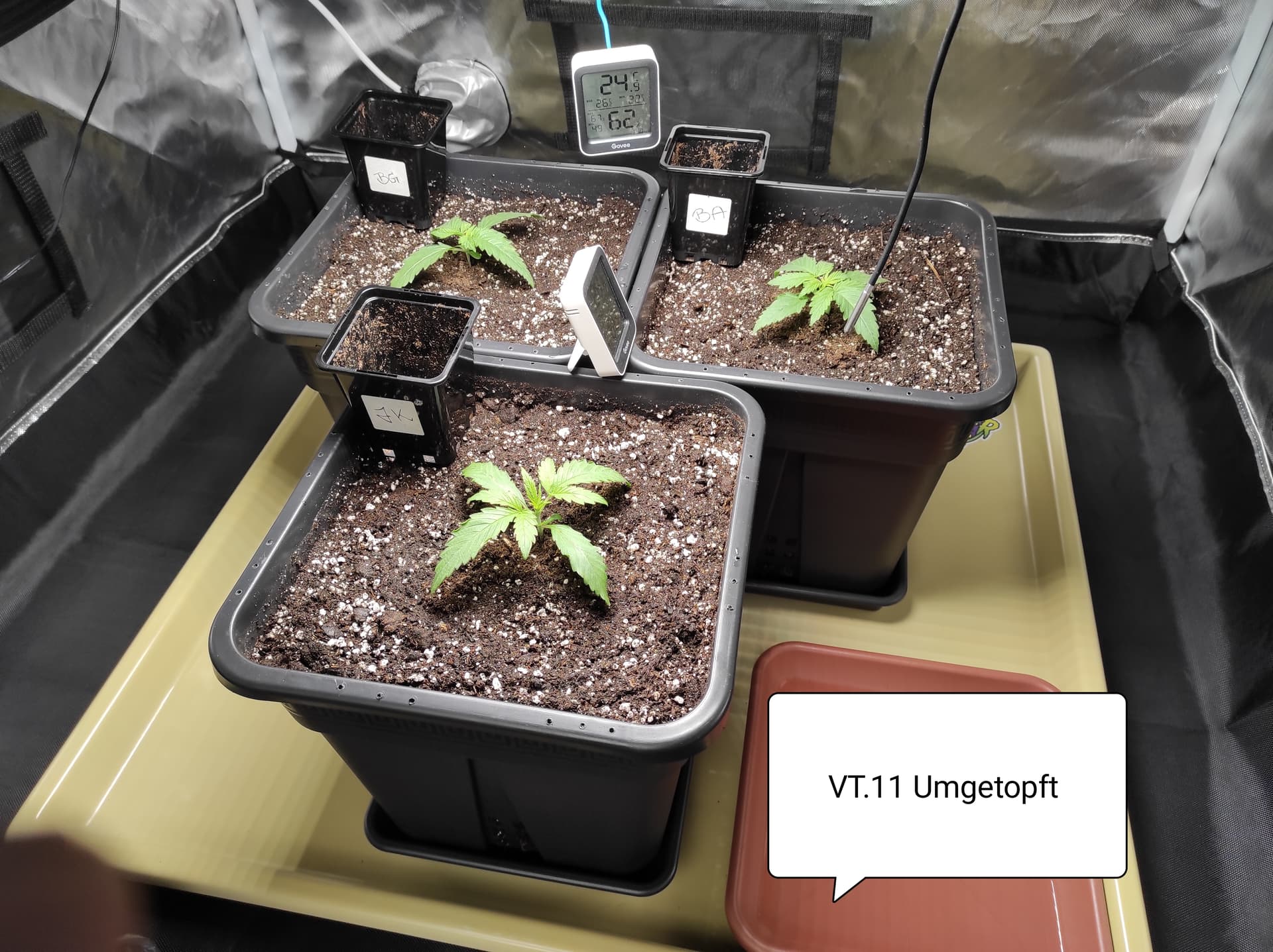 Nächsten Tag hab ich dann gleich in 0,5l Umgetopft in BB Lightmix und White Shark ganz dezent etwas von unten auf die Steinwolle gestreut. Angegossen mit ganz dünner Fish Brühe fürs Bodenleben.
