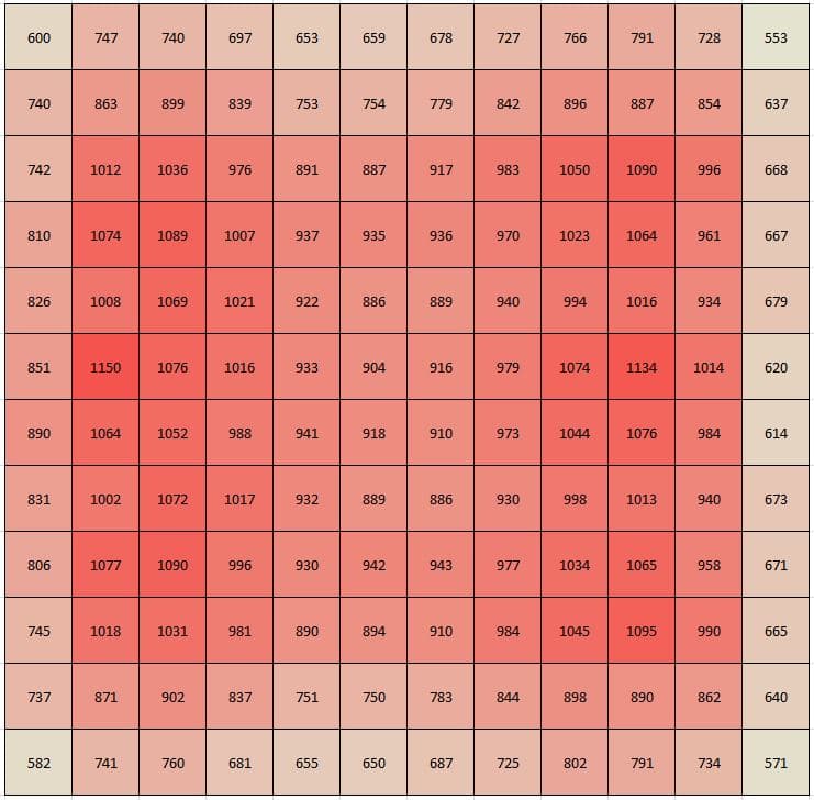 Schau dir einfach die ppfd map an. An den äußeren Rändern ist gerade mal ein Leistungsabfall von 40-45%