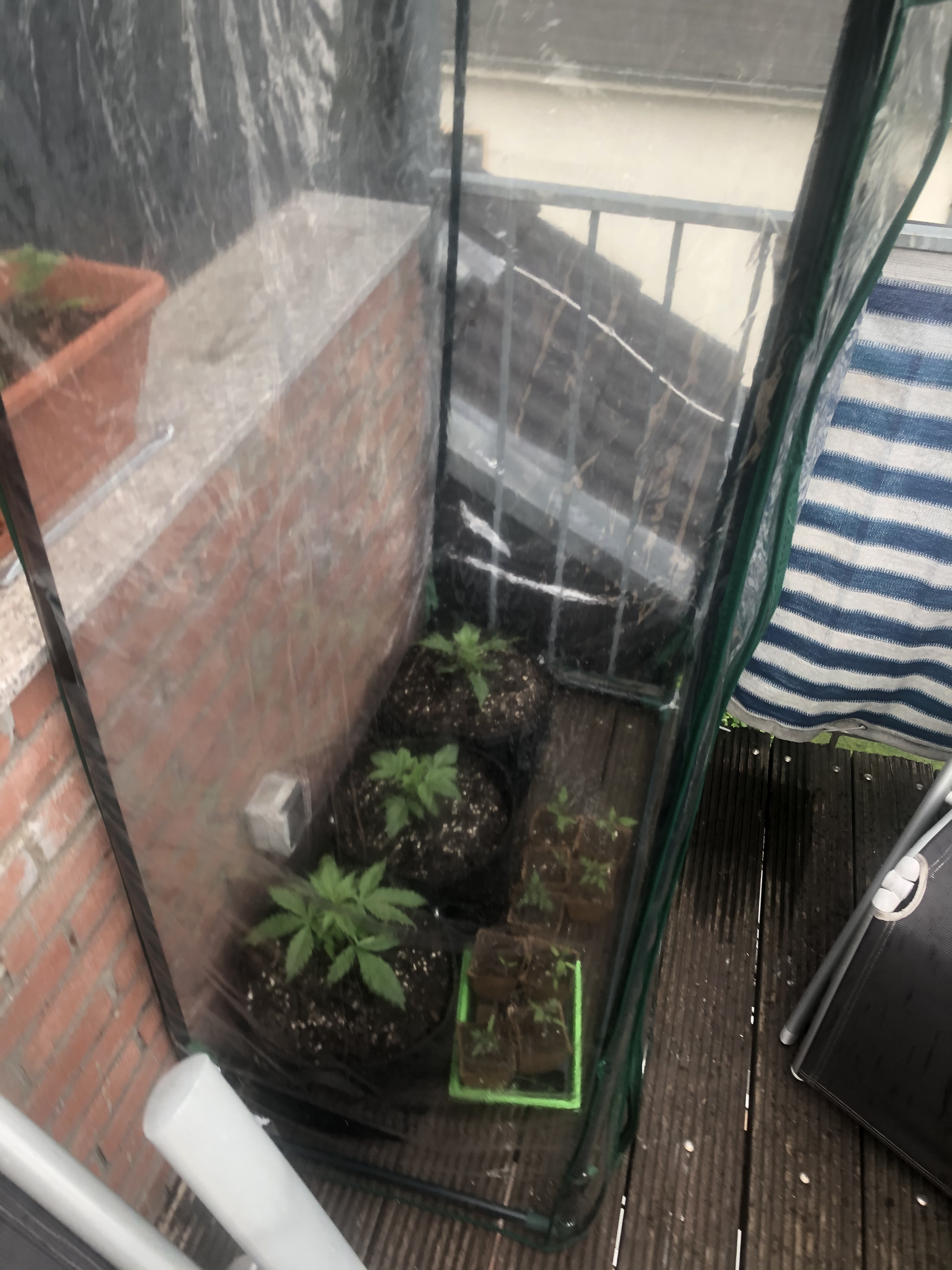 Musste sie leider heute auch schon aufm Balkon stellen weil die zu breit fürs Zelt sind und was für ein Pech heute Gewitter mit regen aber gut das ich Gewächshaus habe.