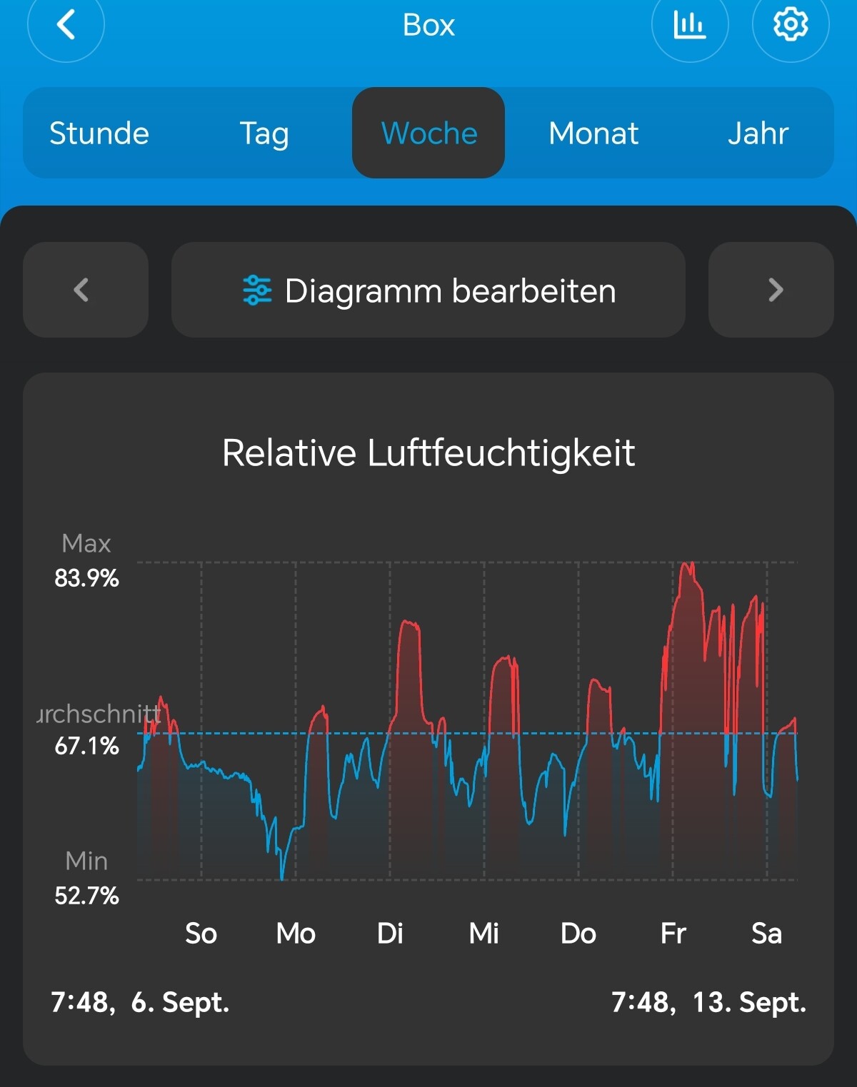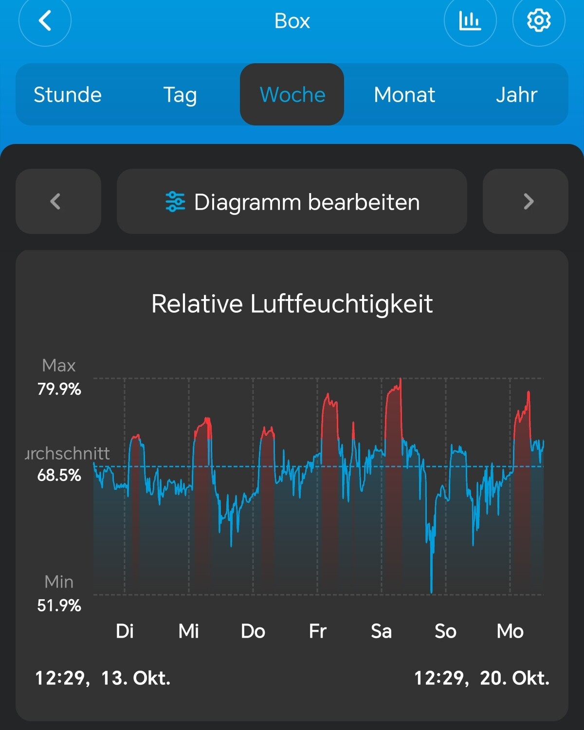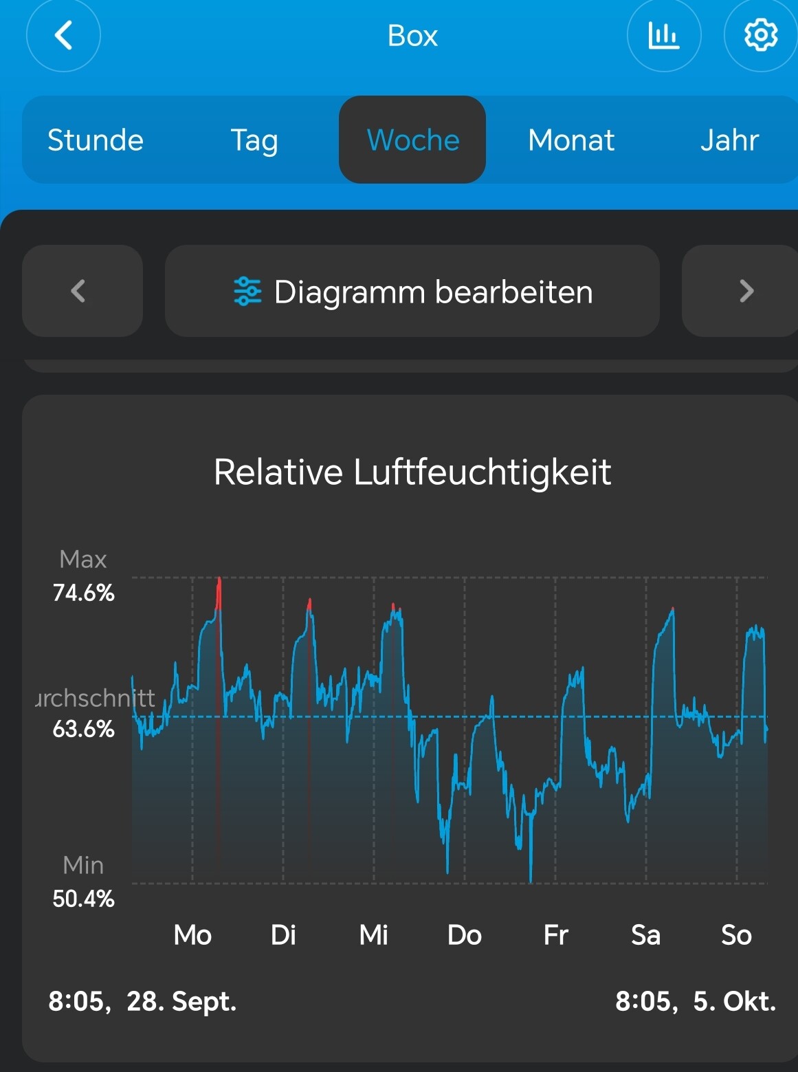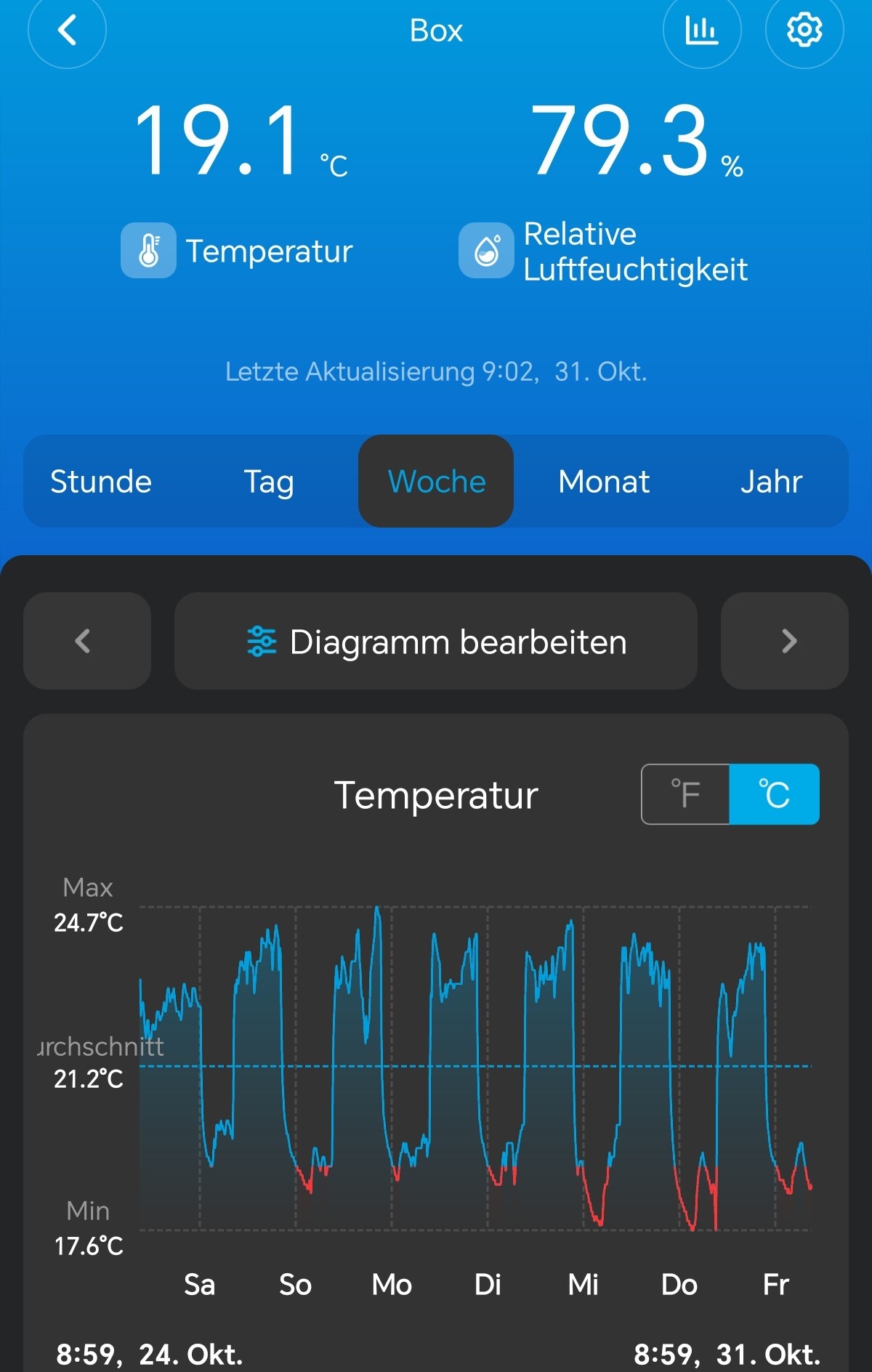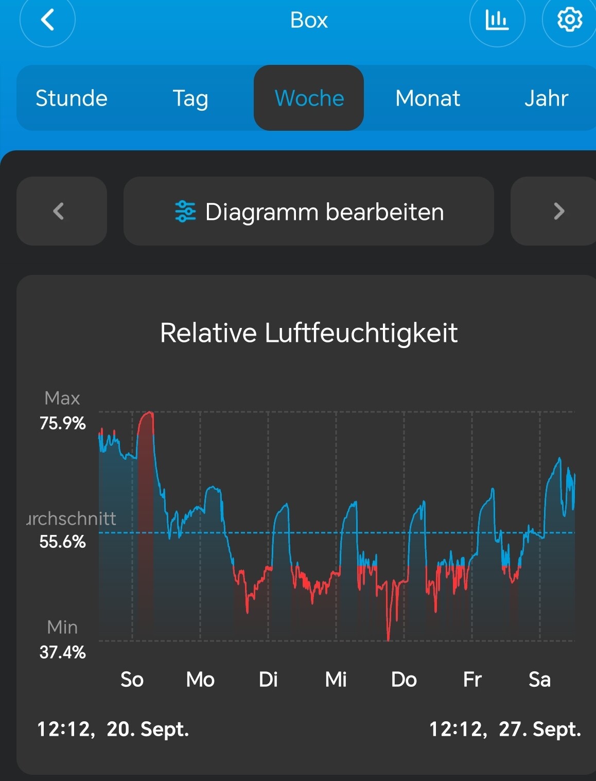 | Woche | Gießmenge (L) | Topfgewicht voll (kg) | Topfgewicht trocken (kg) |