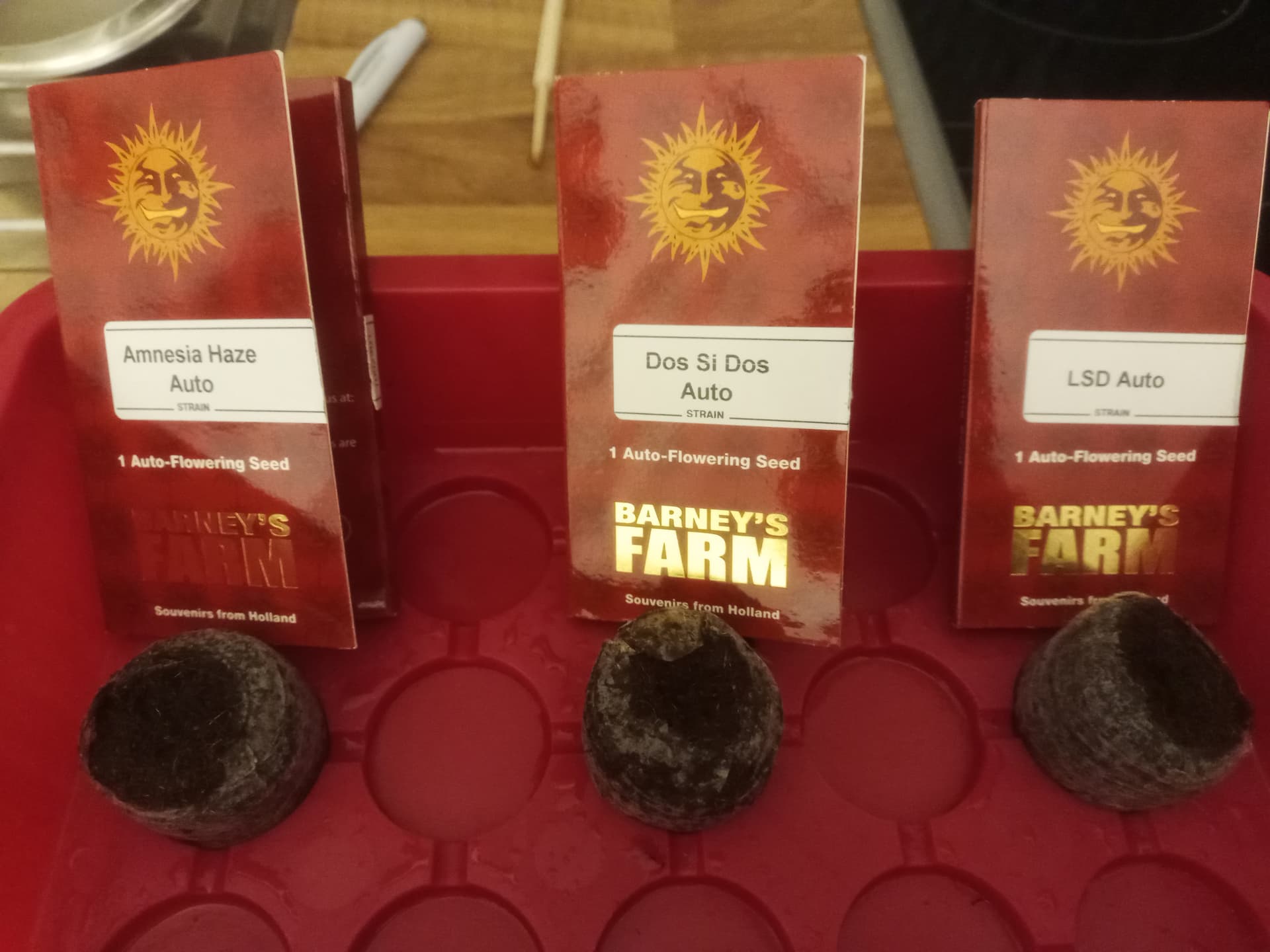 Links Amnesia Haze, Mitte vorne DoSiDos, Rdchts LSD
