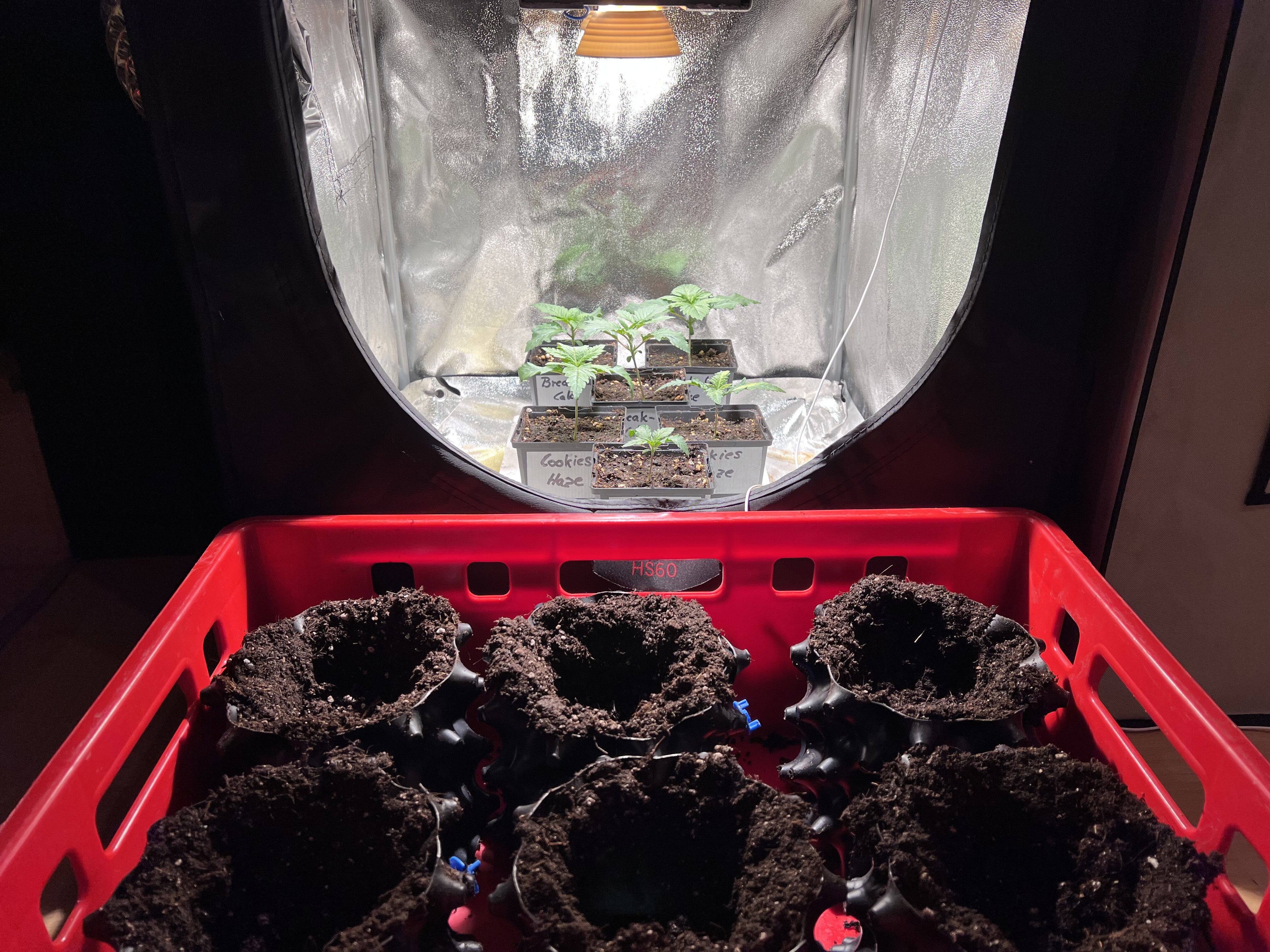 Heute musste ich endlich die Damen mal aus den 1L Airpots in ihre Endtöpfe Bringen. Ich musste mich hier neu orientieren und auf 7l Stiff wechseln, da die Damen einen unglaublich starken Wuchs in die Höhe haben. Denn die Stiff sind da paar cm niedriger (Zelt hat nur 160cm).