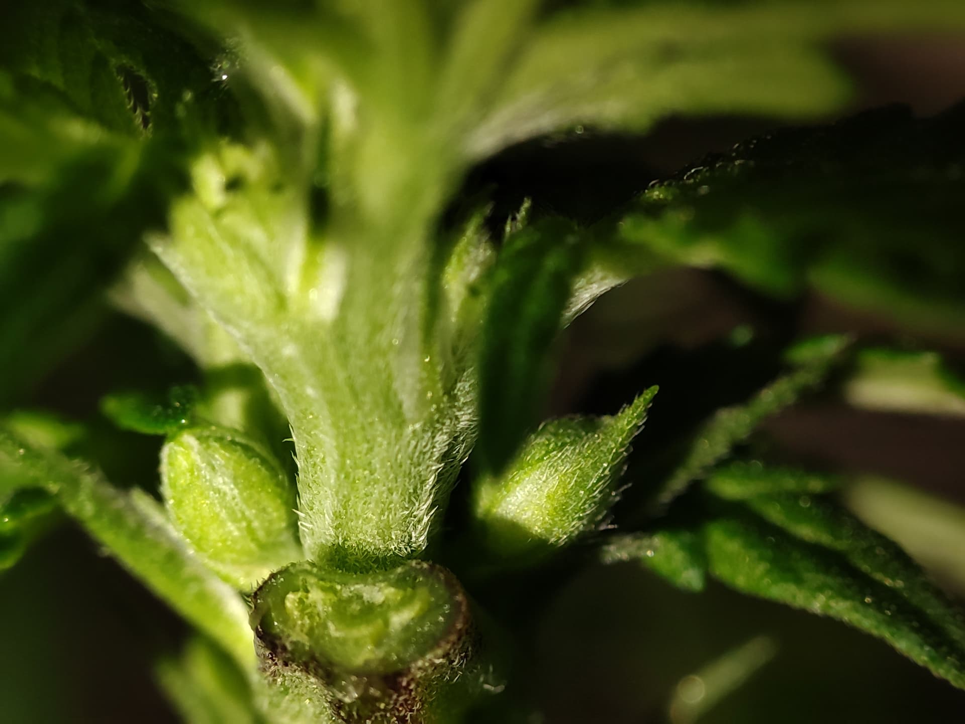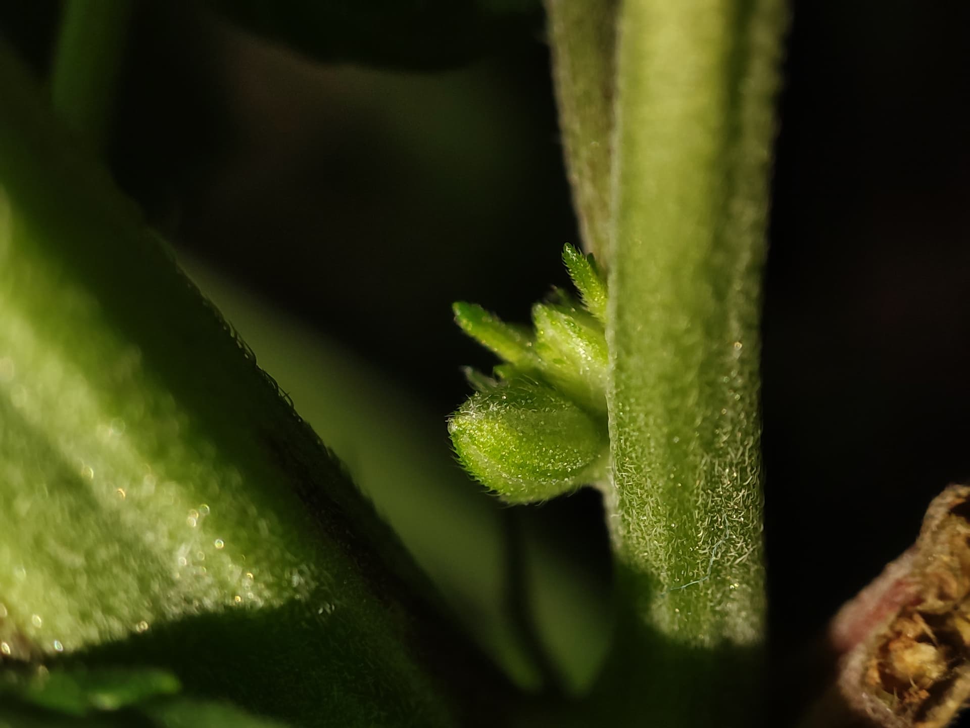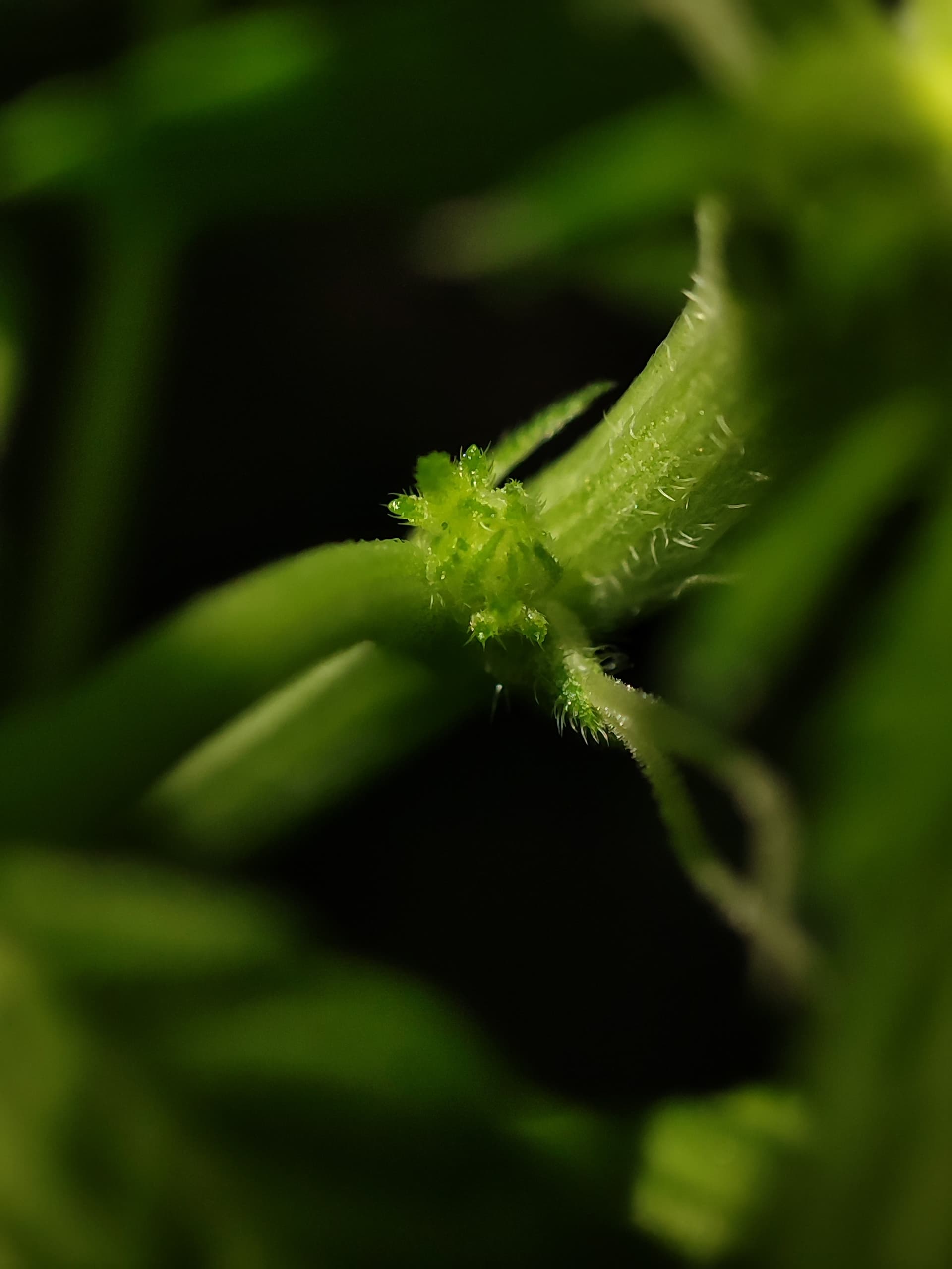 GeprĂŒft wurden alle Nodien, Blattachseln und frĂŒhen BlĂŒtenansĂ€tze mit Fokus auf mögliche PollensĂ€cke oder zwittrige Strukturen.