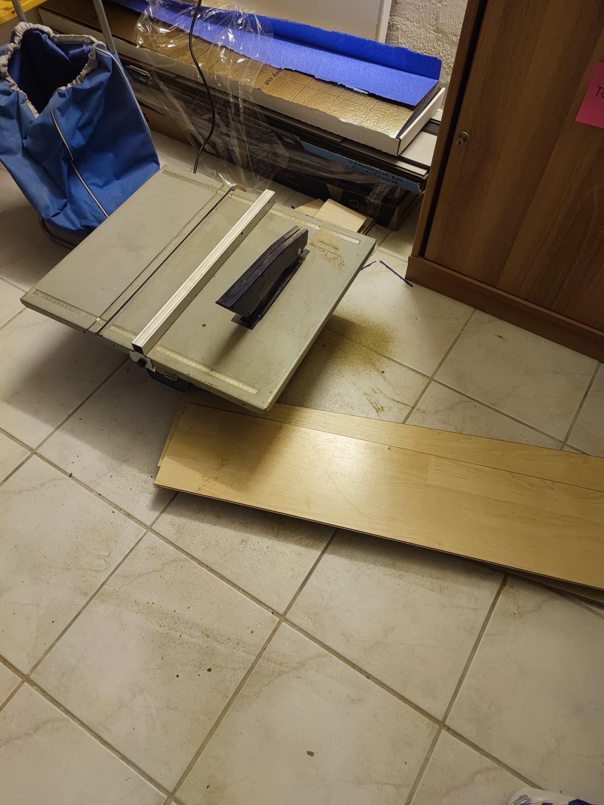 Darauf: passgenau zugeschnittener alter Laminatboden (ca. 117 Ă 117 cm)