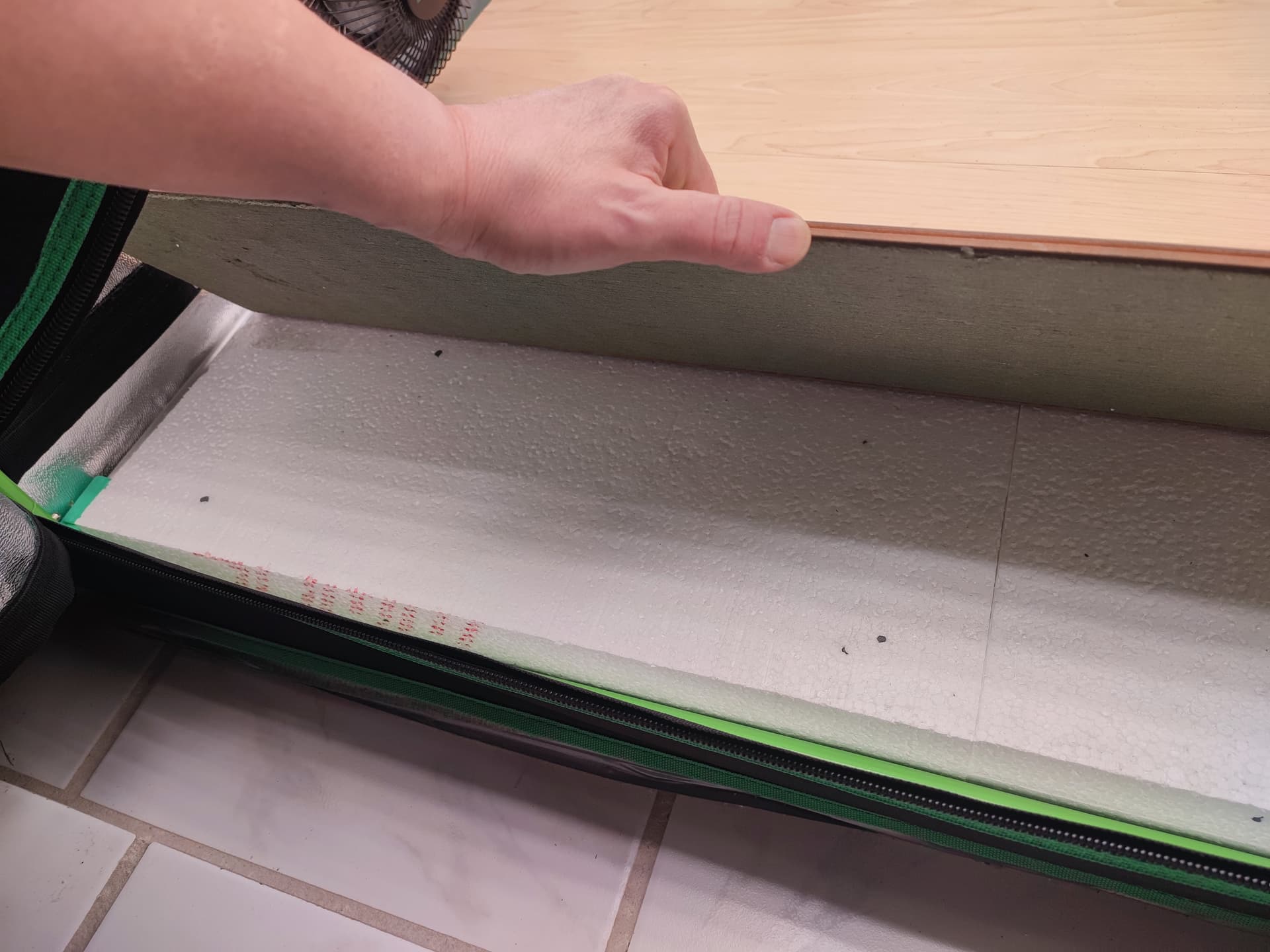 3 cm Styropor (wie gehabt, unter dem Zelt)
