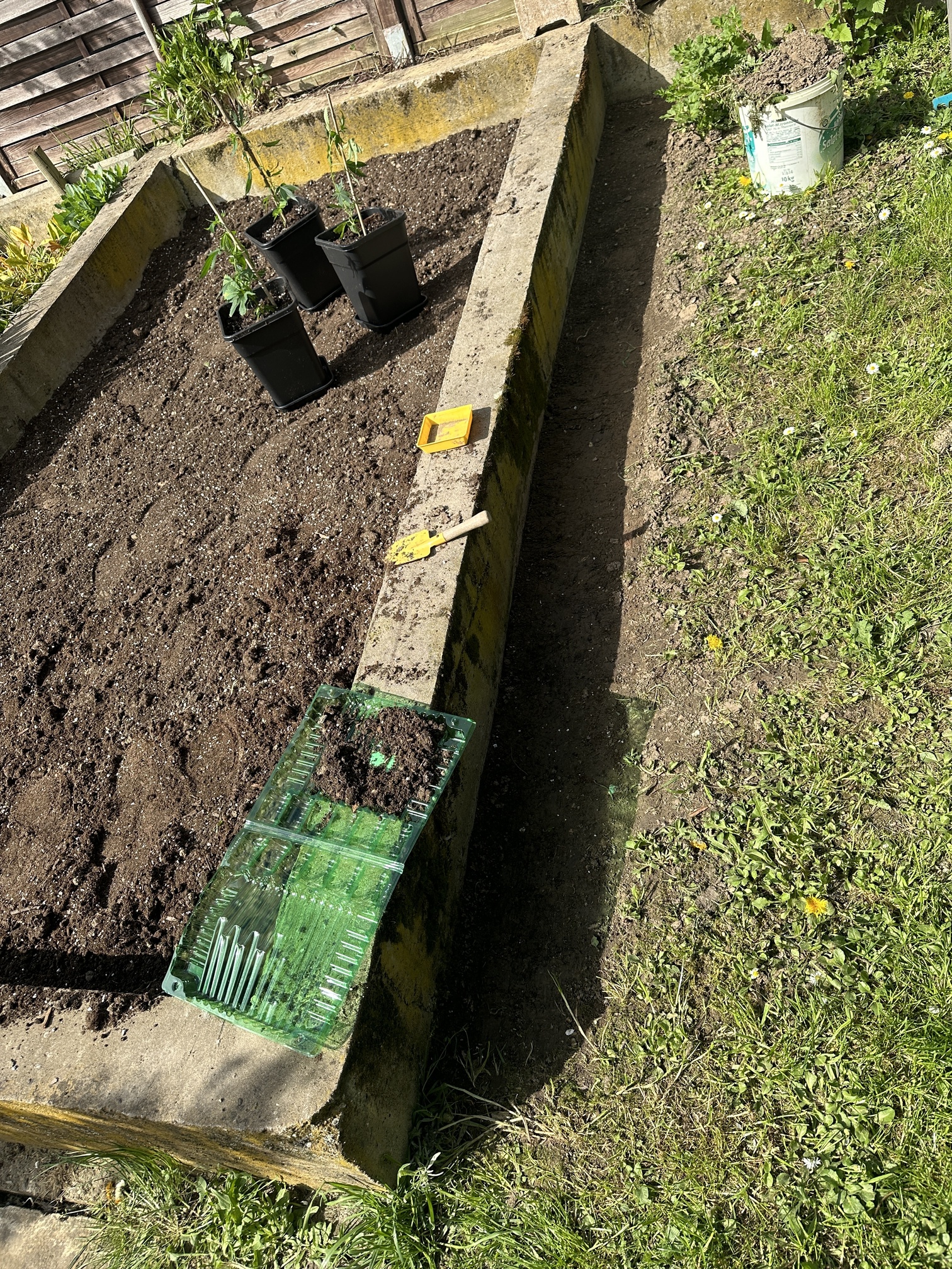 Beet wurde noch ein wenig ausgebaut für das Gewächshaus da es am Boden befestigt wird bzw auf der Mauer