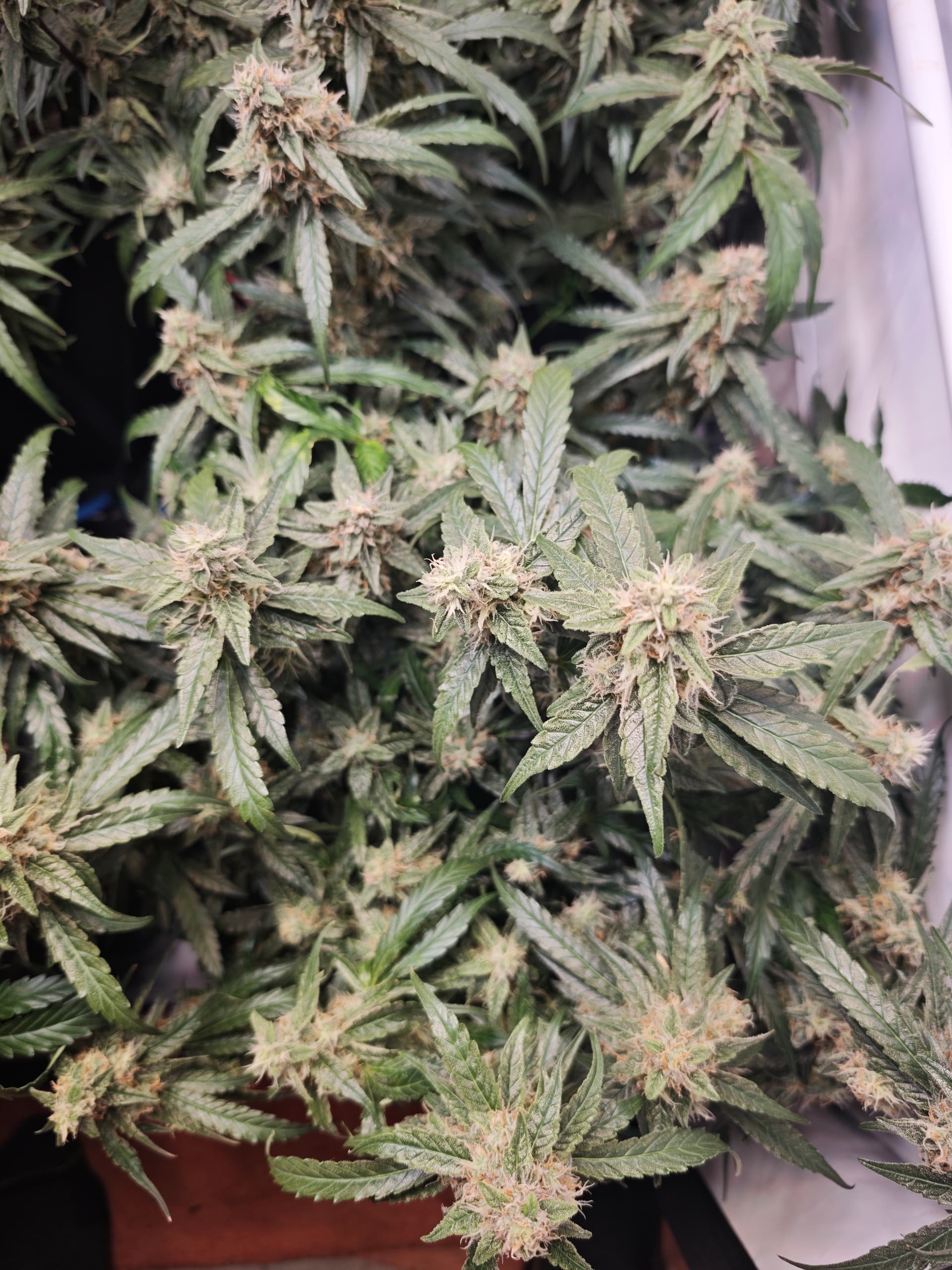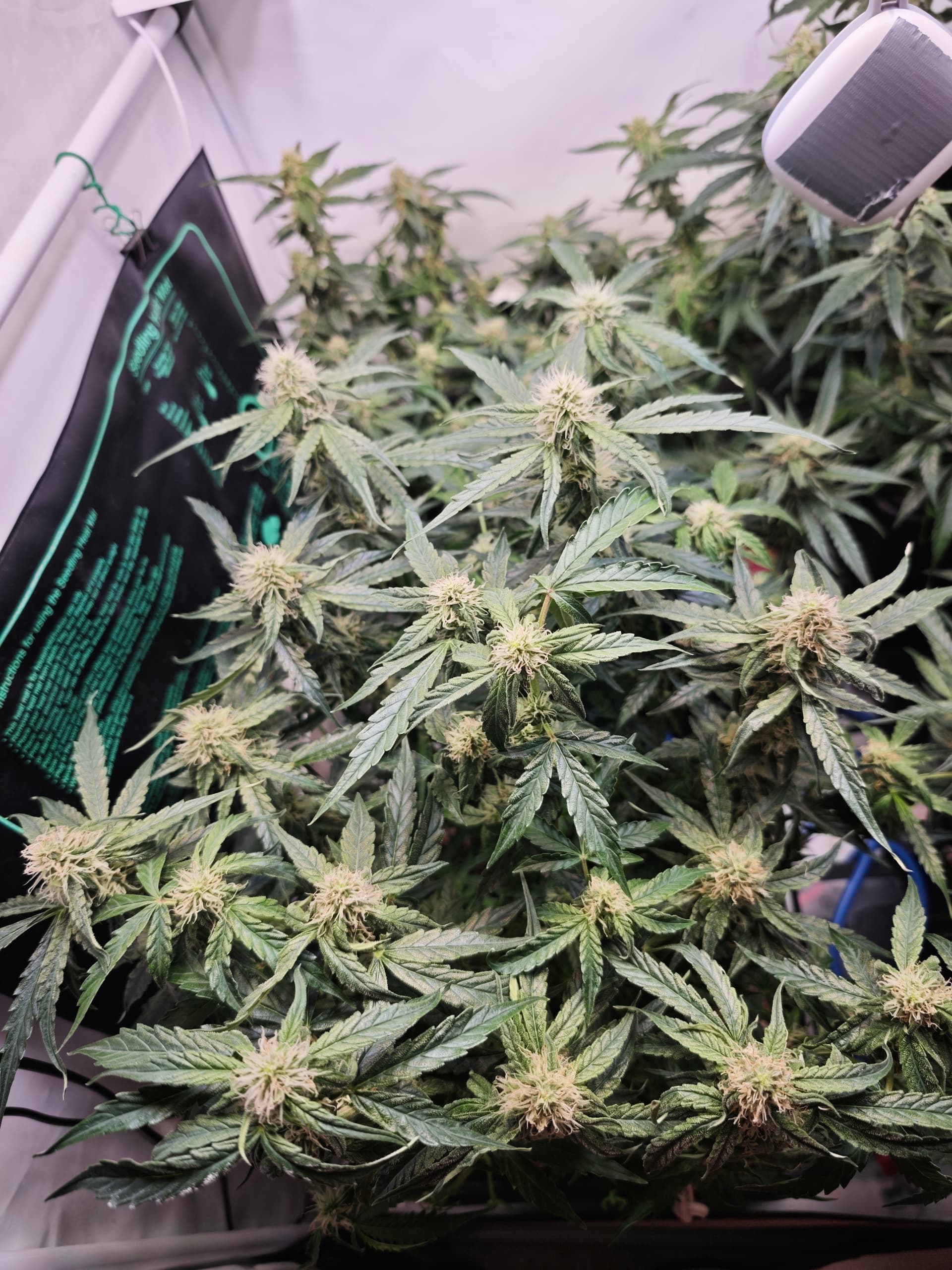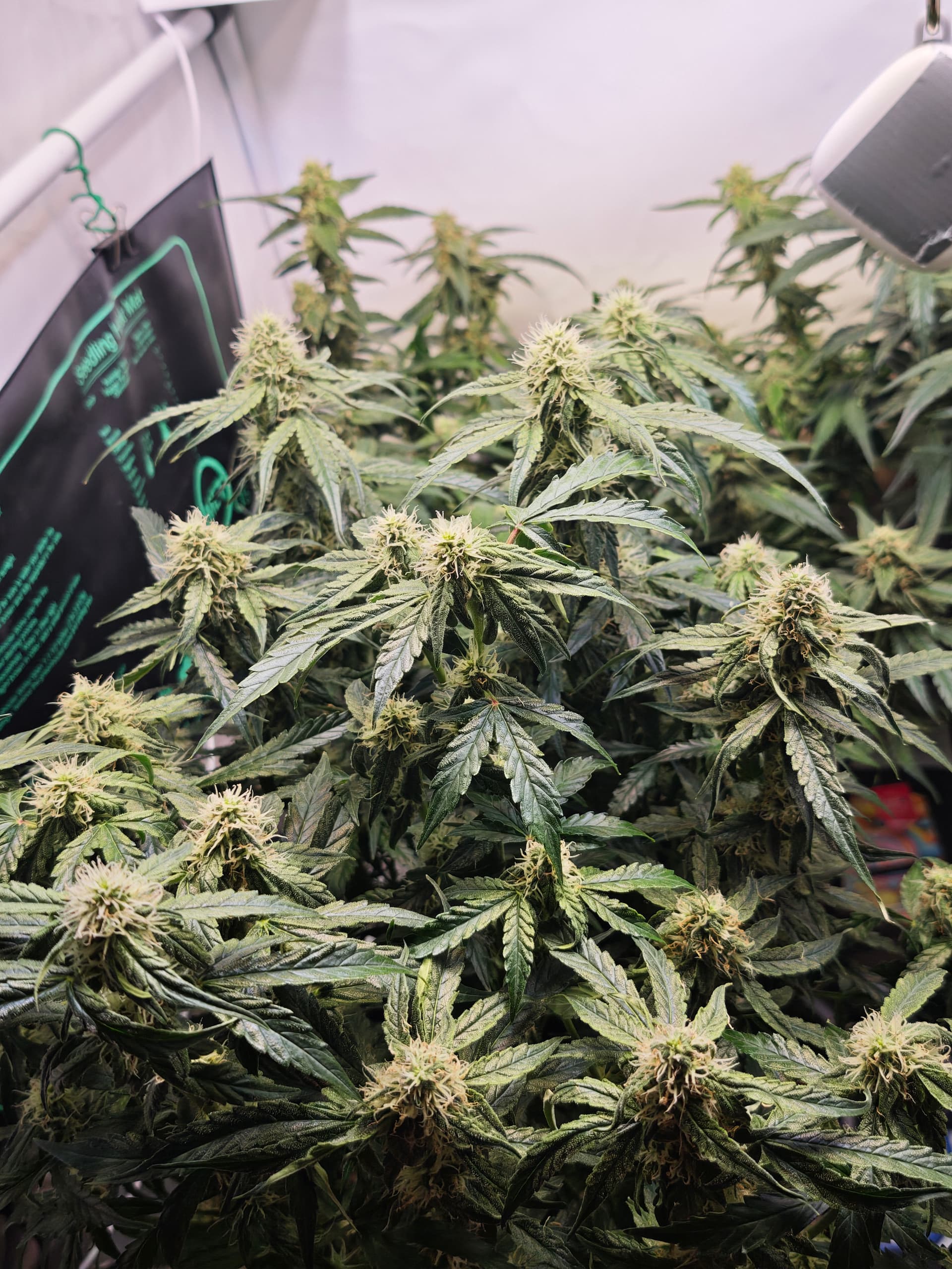 moin an dieser Stelle. Den Damen geht es gut und haben ihr Tempo beibehalten,die Buds sind dabei schön Fett zu werden,hoffen wir mal das es so weiter geht. Die Lampe wurde nochmal etwas hochgesetzt und am Sonntag kommen noch ein paar % dazu aktuell sind wir auf 78%.