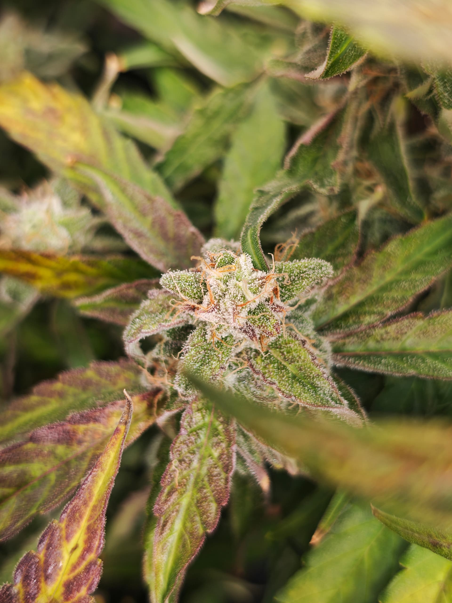. Also die Ladys ziehen sich ca 30-35 L die Woche hat sich etwas runtergeschraubt. Die Buds schauen richtig gut aus der Geruch ist phänomenal,Zucker ist in grossen Mengen vorhanden:raising_hands:. Habe angefangen hier und da die grossen Blätter zu beseitigen doch durch Zeitmangel nicht fertig geworden,ist jetzt auch nicht so tragisch.