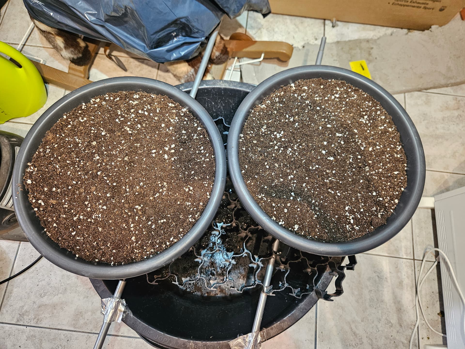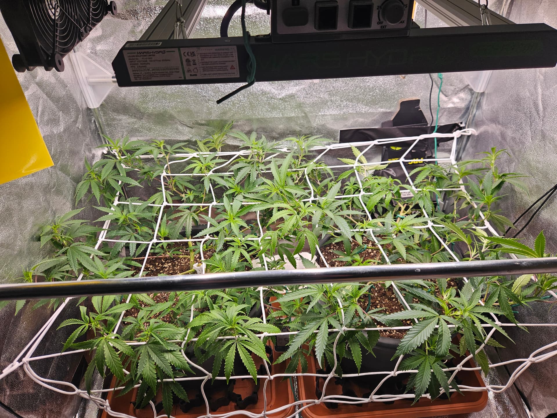 Das ganze in 26 Liter Stofftöpfen im großen Zelt und 16 Liter Plastik Töpfen.