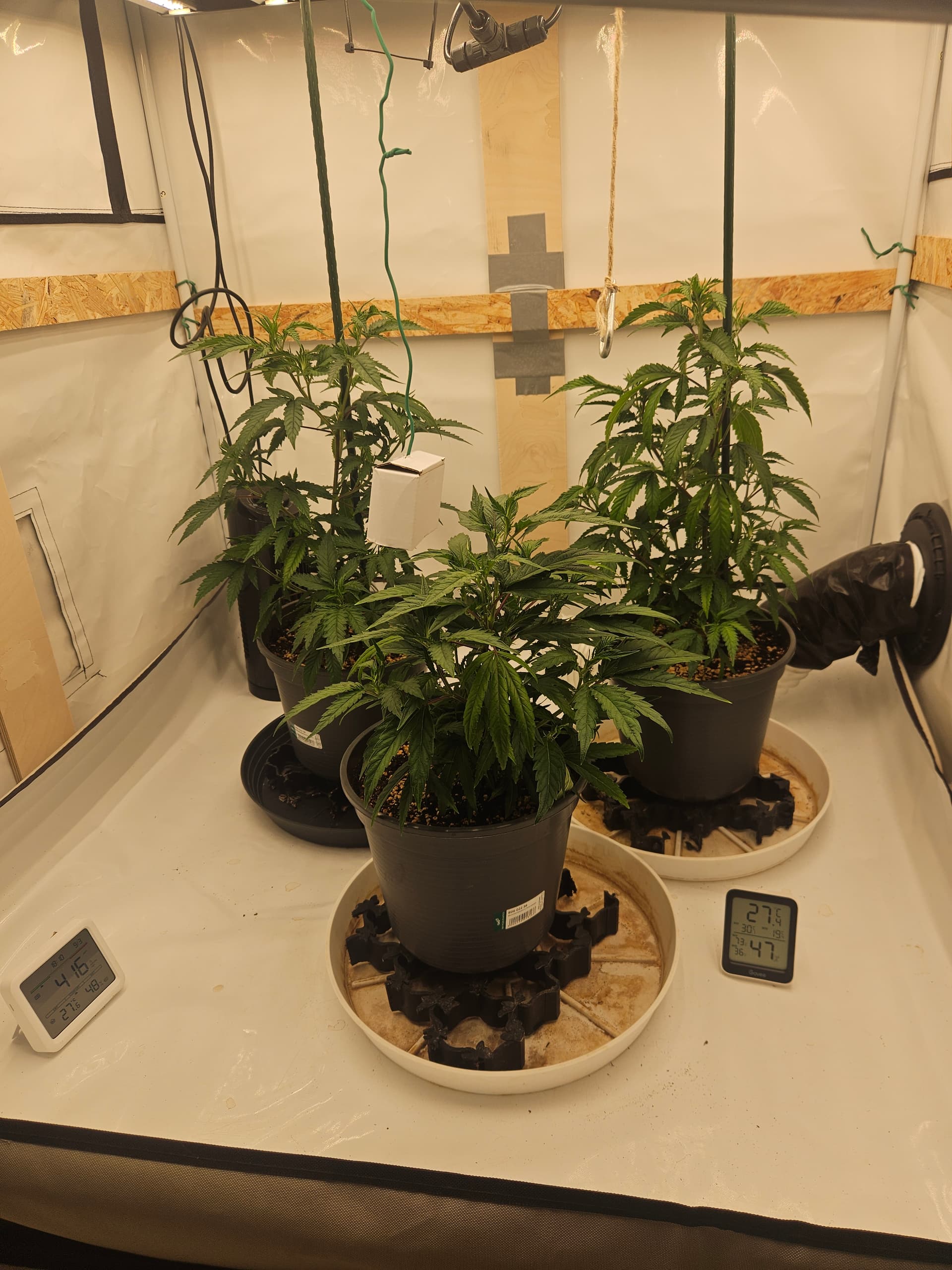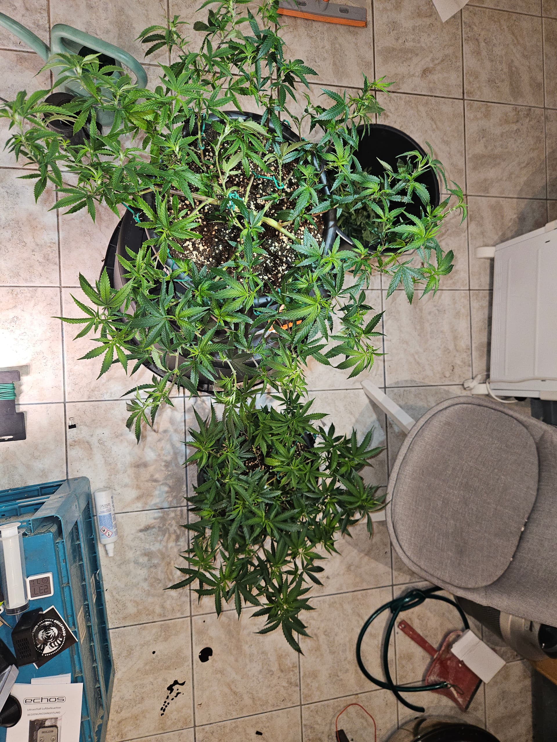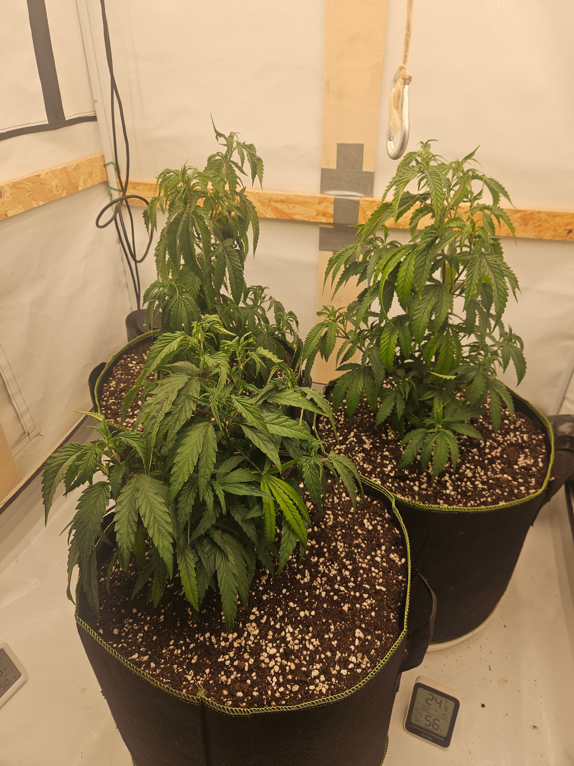 Heute wurden die 3 im großen Zelt in ihre end Töpfe umgetopft. Gab direkt ne ladung leckerchen mit allem für die Ladys, da sie traurig aussehen naja wenn man sie auch trocken stehen lässt, kein Wunder