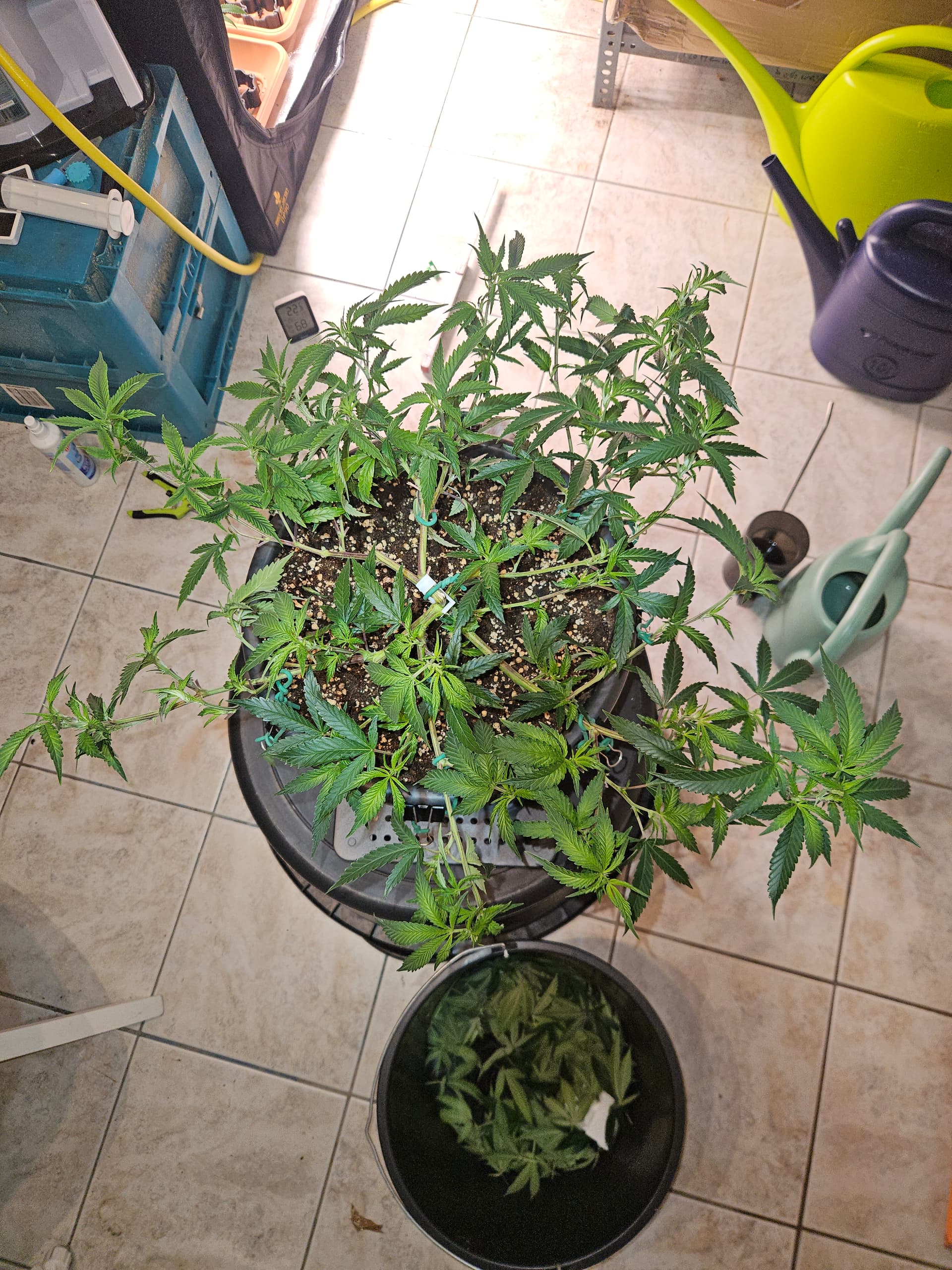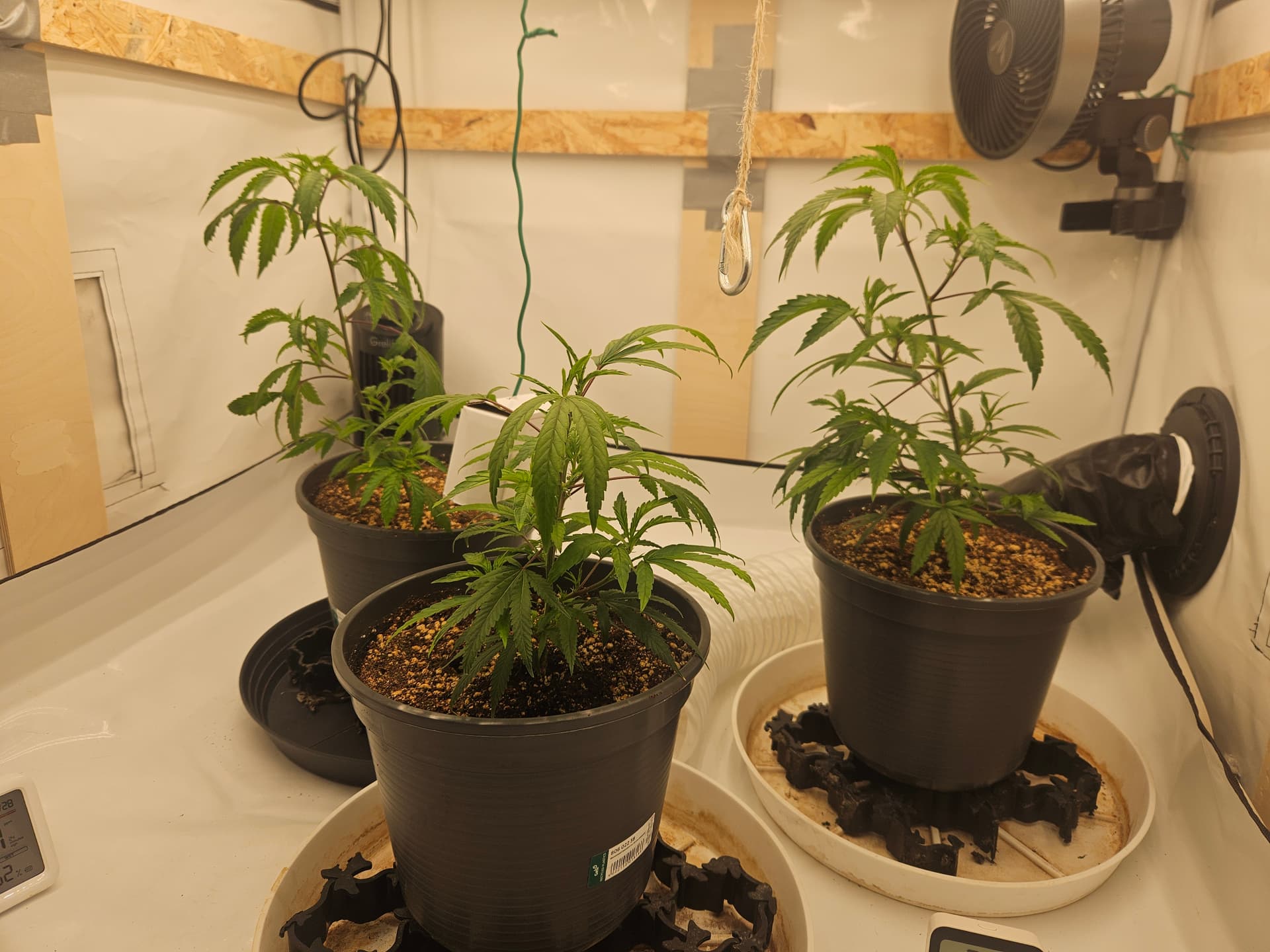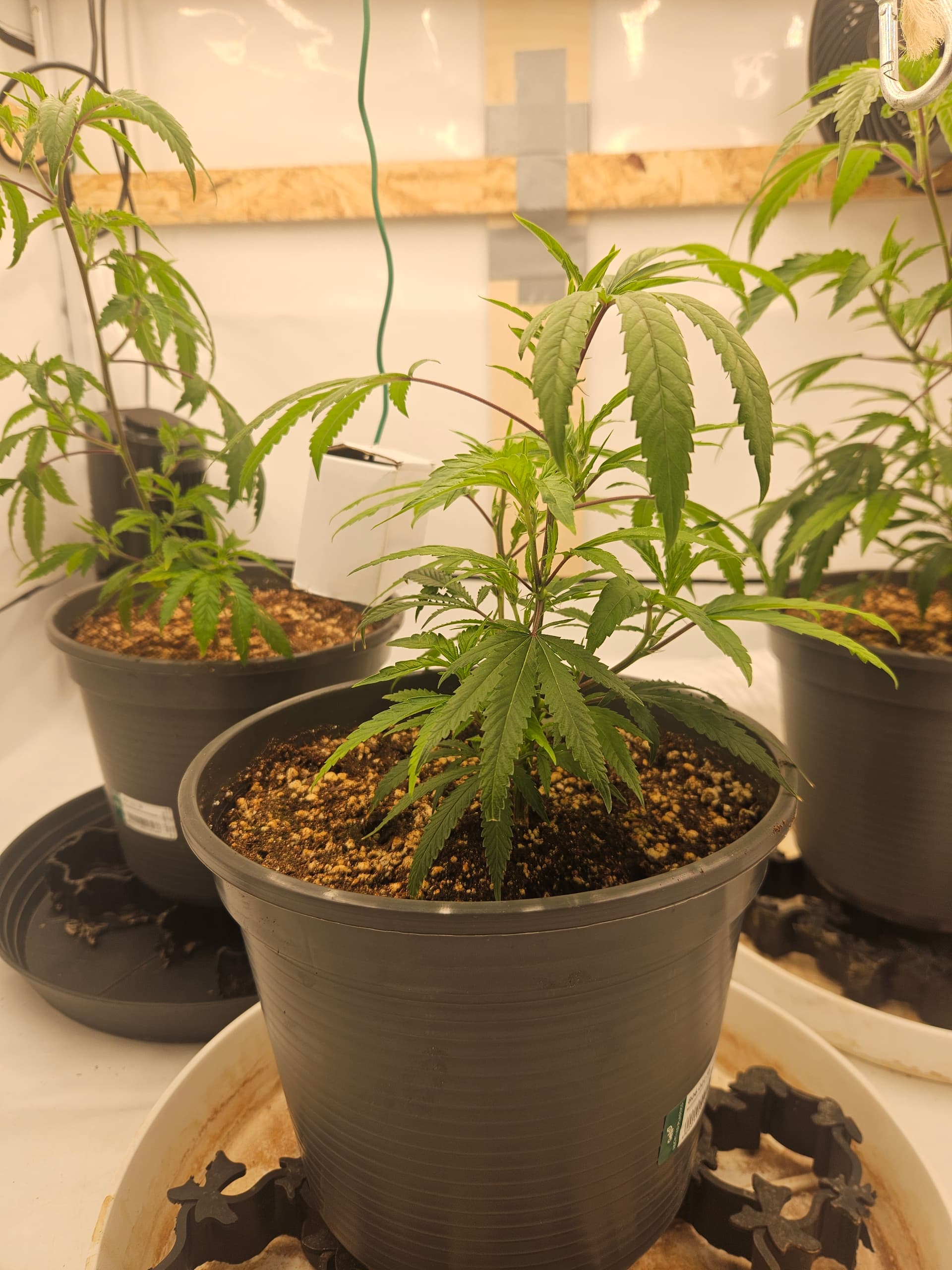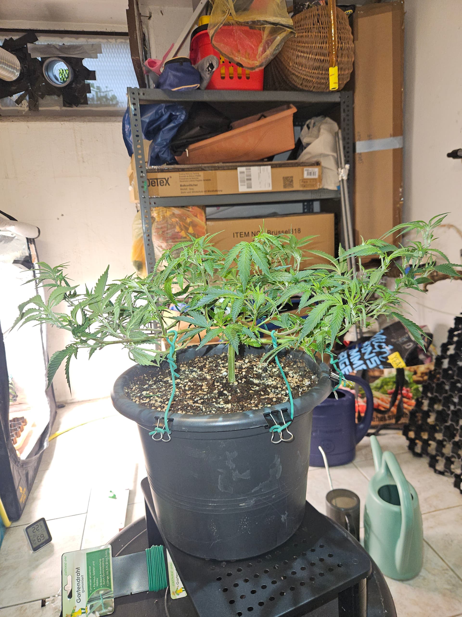 Heute wurden die 3 im großen Zelt in ihre end Töpfe umgetopft. Gab direkt ne ladung leckerchen mit allem für die Ladys, da sie traurig aussehen naja wenn man sie auch trocken stehen lässt, kein Wunder
