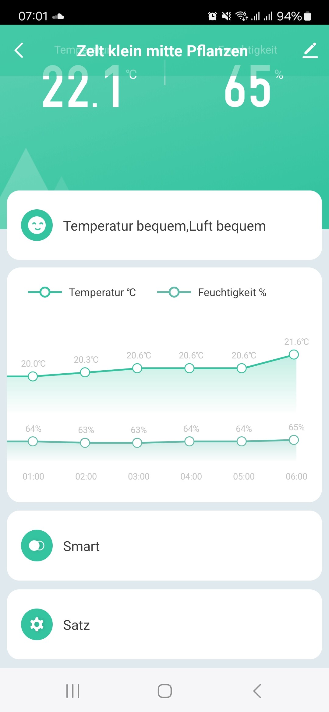 40 % Luftfeuchtigkeit bei 25 °C → VPD ca. 1,5–1,6 kPa (zu hoch für Stecklinge).
