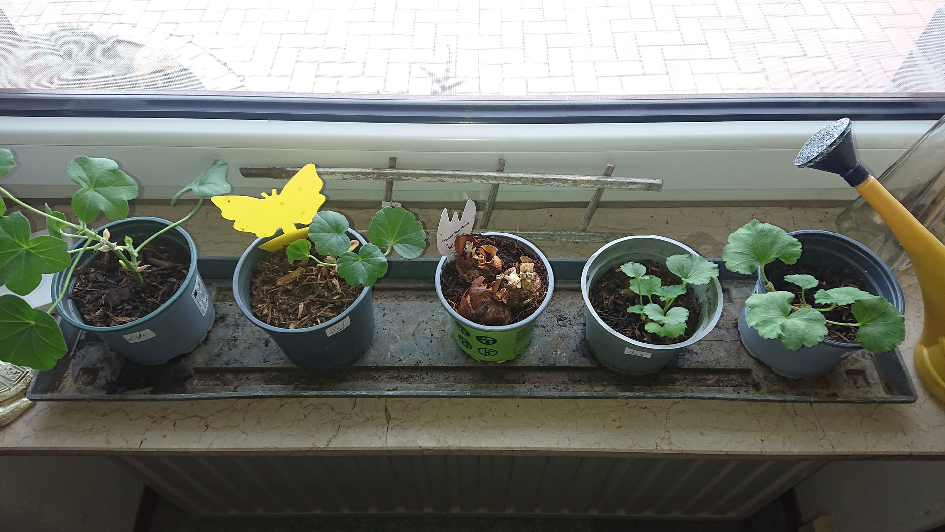 Für Blümchen ist ebenfalls schon ein bisschen vorgesorgt. Die Geranien vom letzten Jahr waren so schön, die wollten wir behalten: