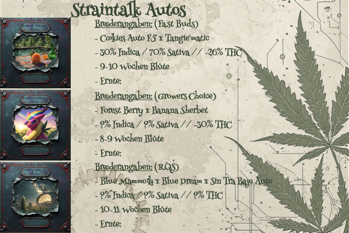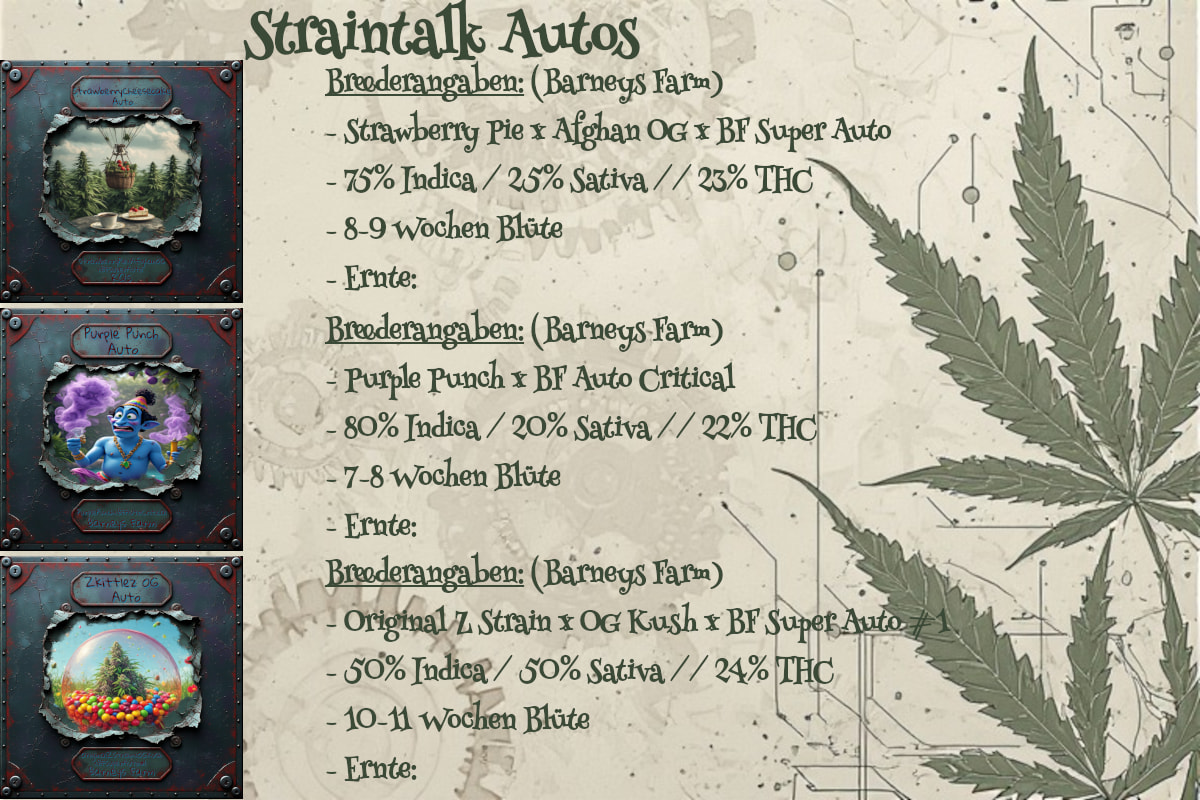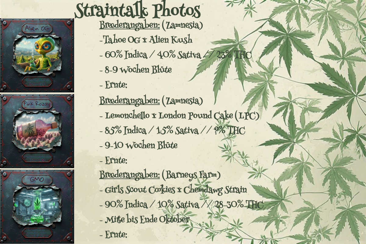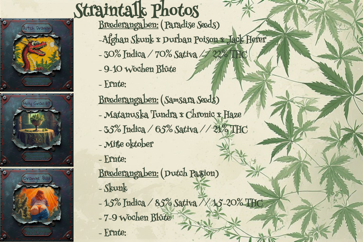 Geplant sind 9 verschiedene Strains, und insgesamt 12 Photos (2 sind für den Rankwettbewerb, 1 für die Tonne, äh, Dose