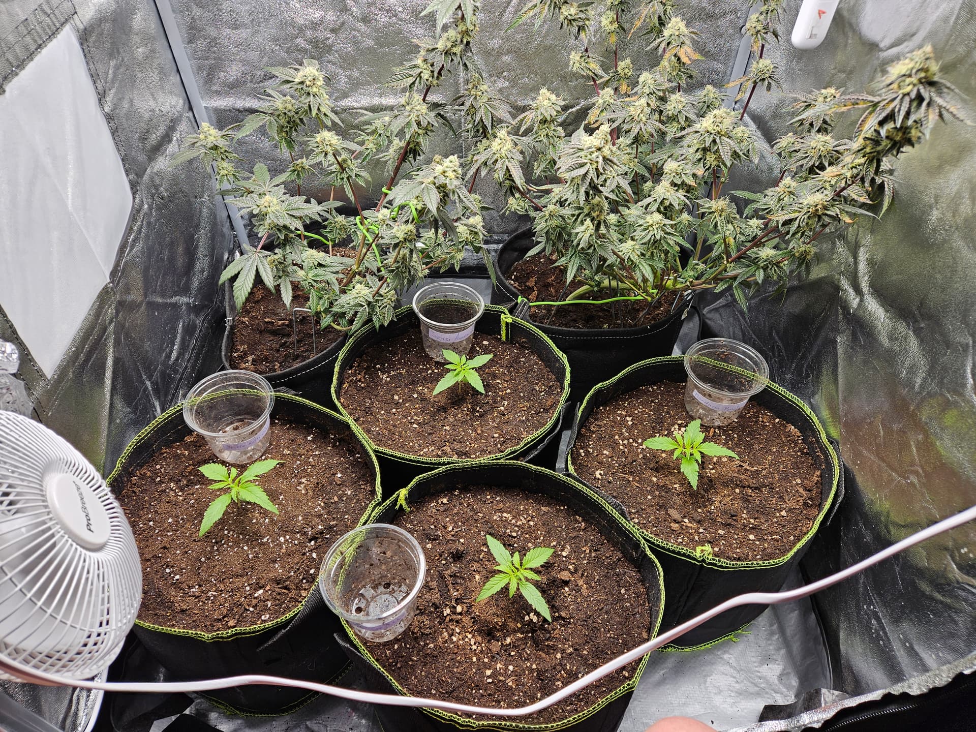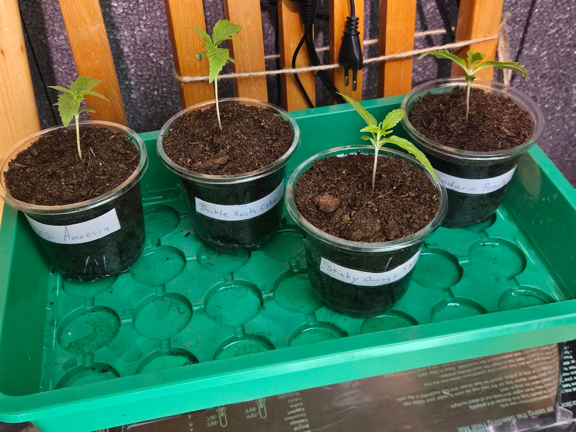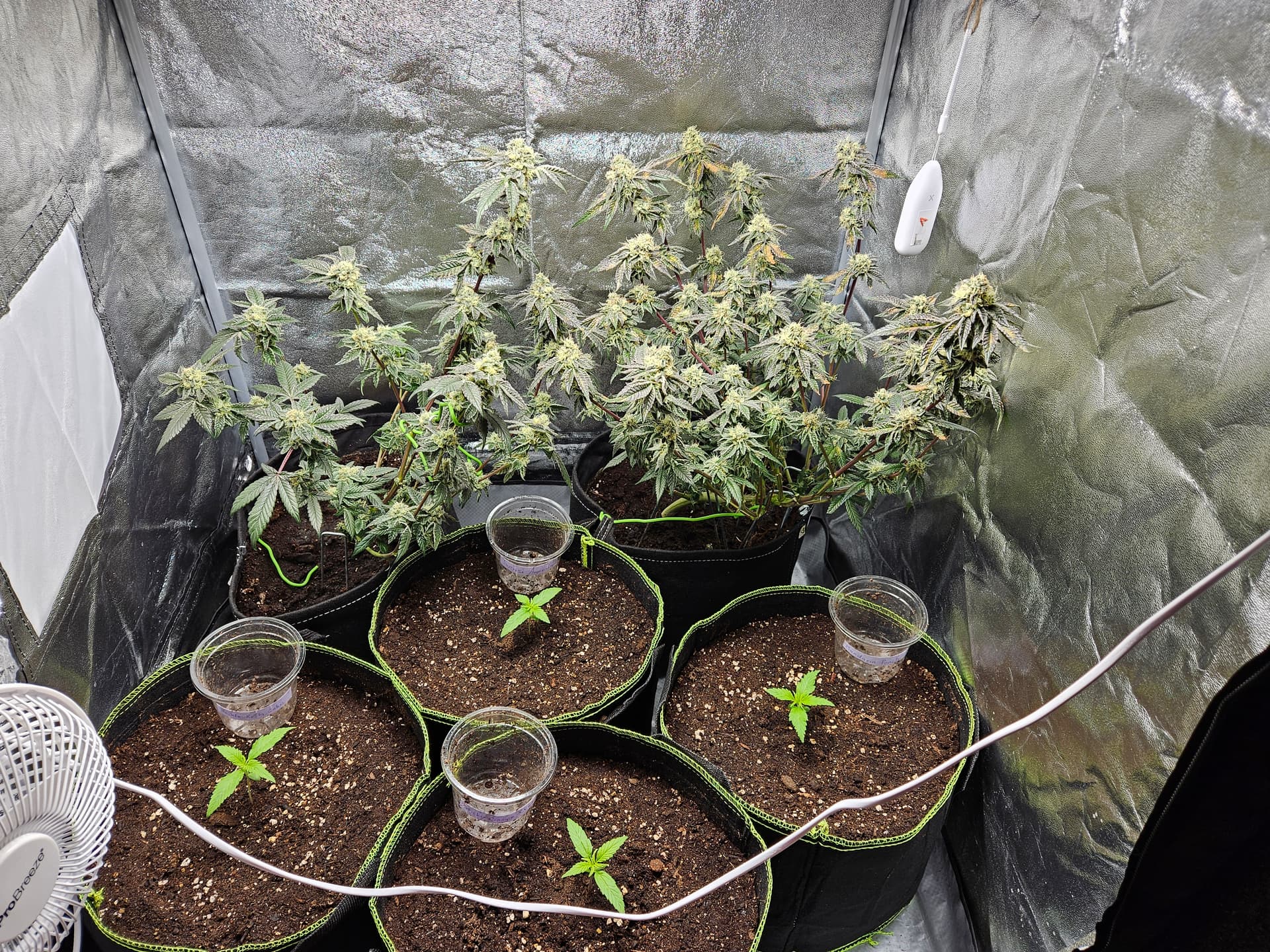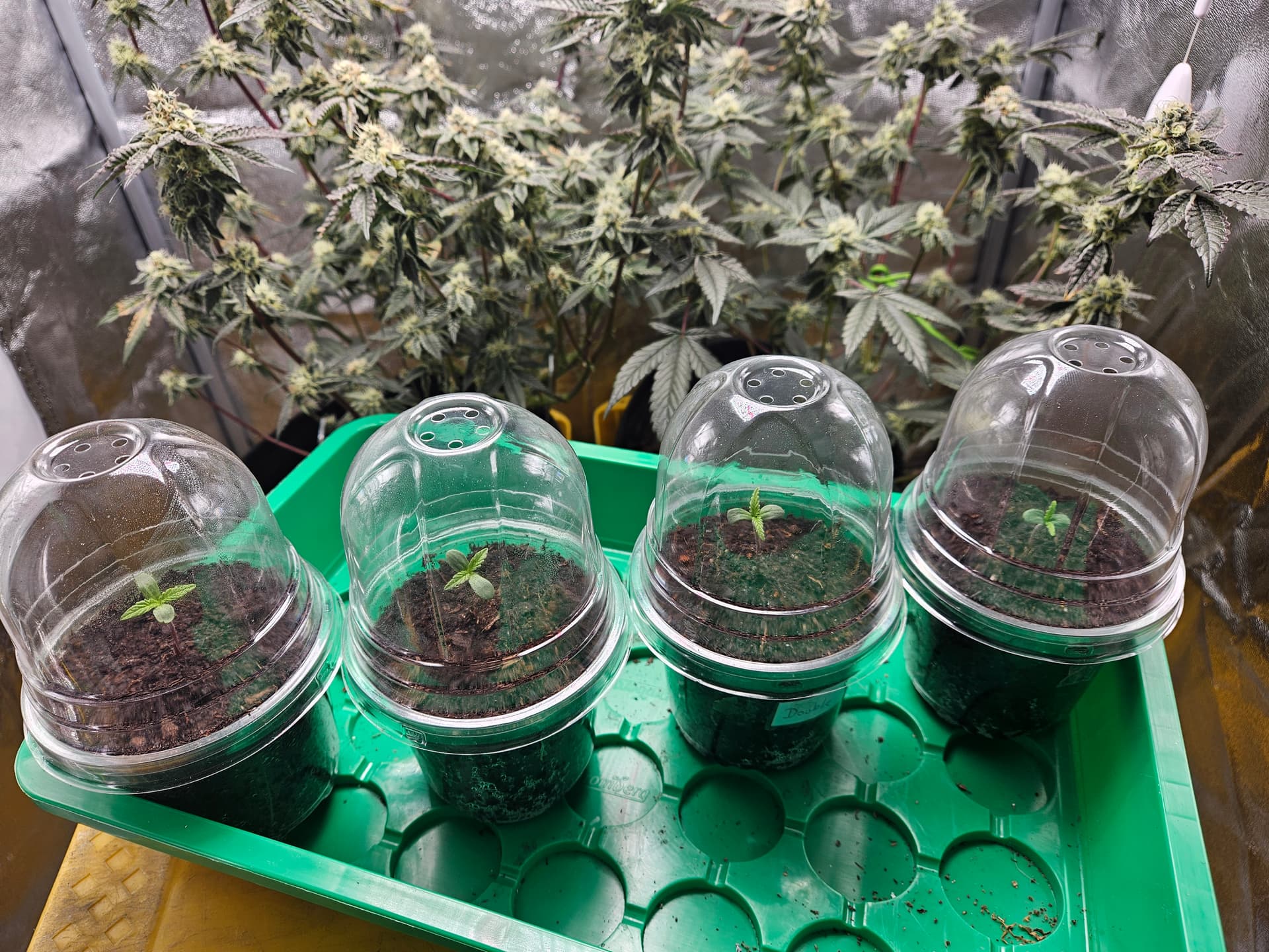 Anzuchtbecher deshalb, weil ich es nicht abwarten konnte bis der 1. Grow fertig ist und im Growzelt die Photoladys mit 12/12 Beleuchtung in der Blüte stehen