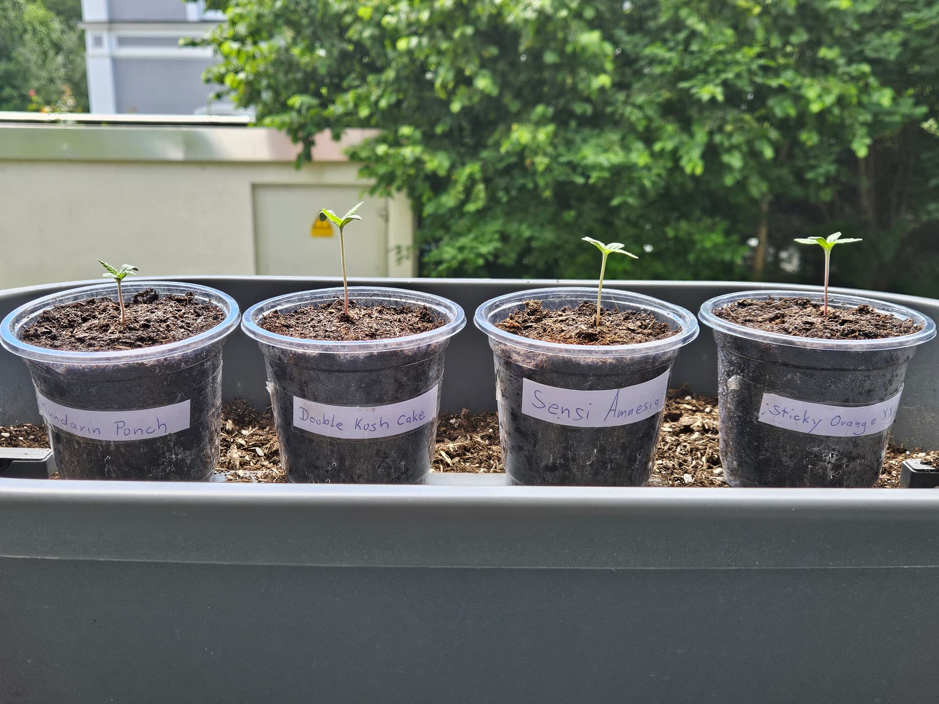 Am 10.07.24 Haben alle bis auf die Mandarin Punch (11.07.) ihre Keimblätter gezeigt. Der Einfachheit halber werde ich ab 11.07. für alle VT1 zählen.