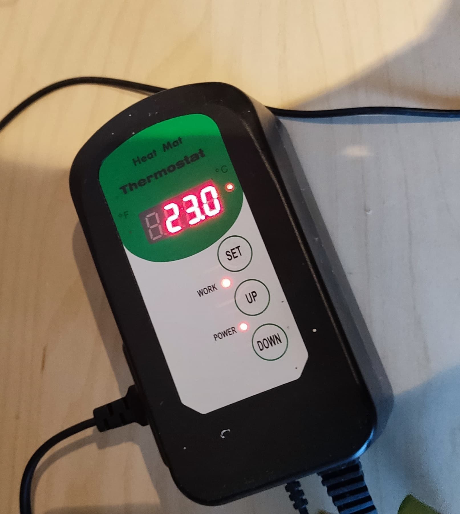 Mini Heizmatte auf 22°C eingestellt.
