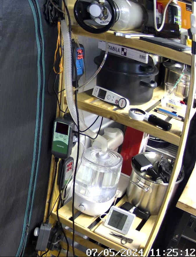 Die Lufttemperatur im Zelt versuche ich mit dem o.a. Govee Equipment auf Niveau zu halten.
