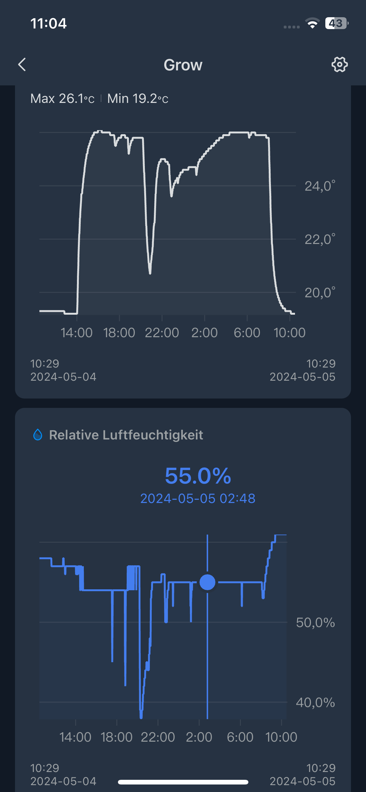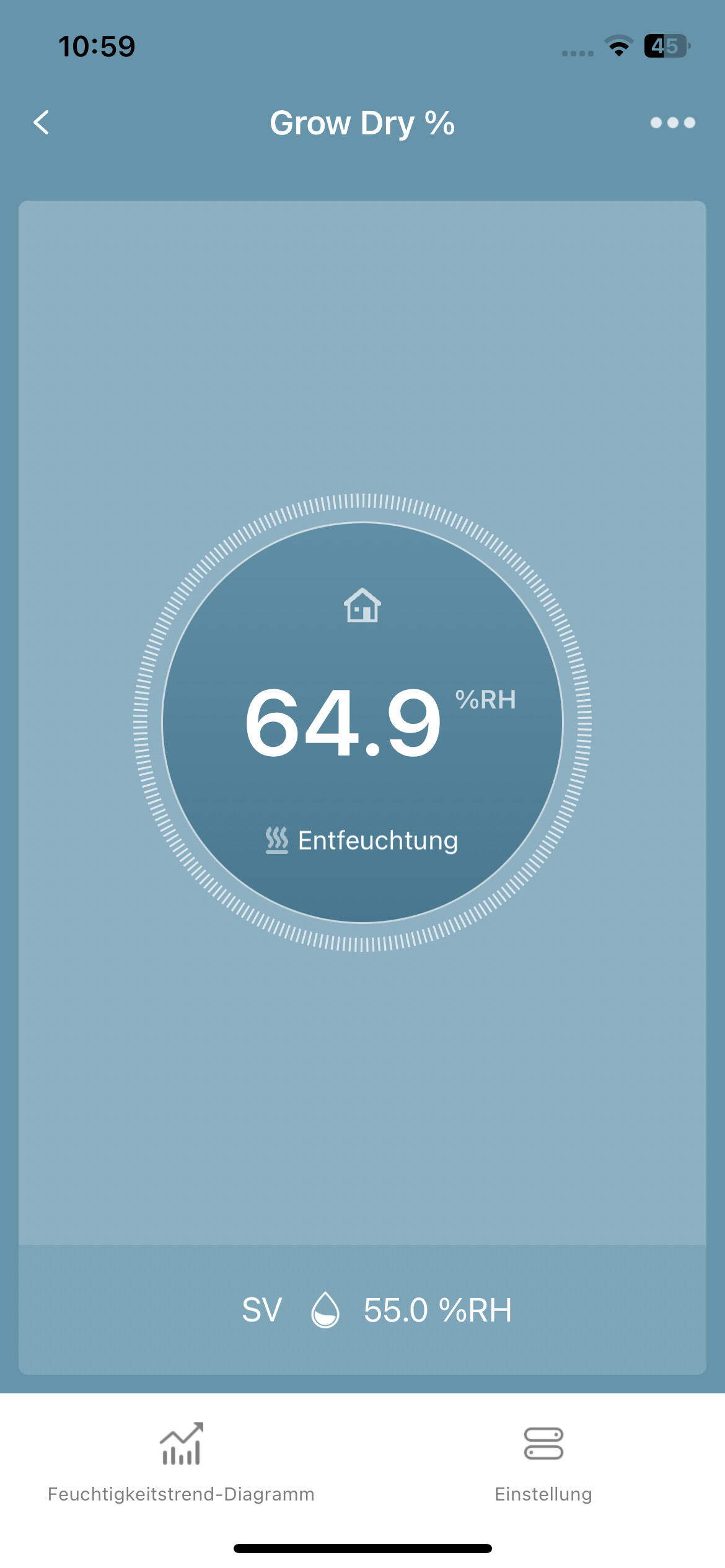 Ein Beispiel…heute Nacht…so wie gewünscht um die 55% Luftfeuchtigkeit