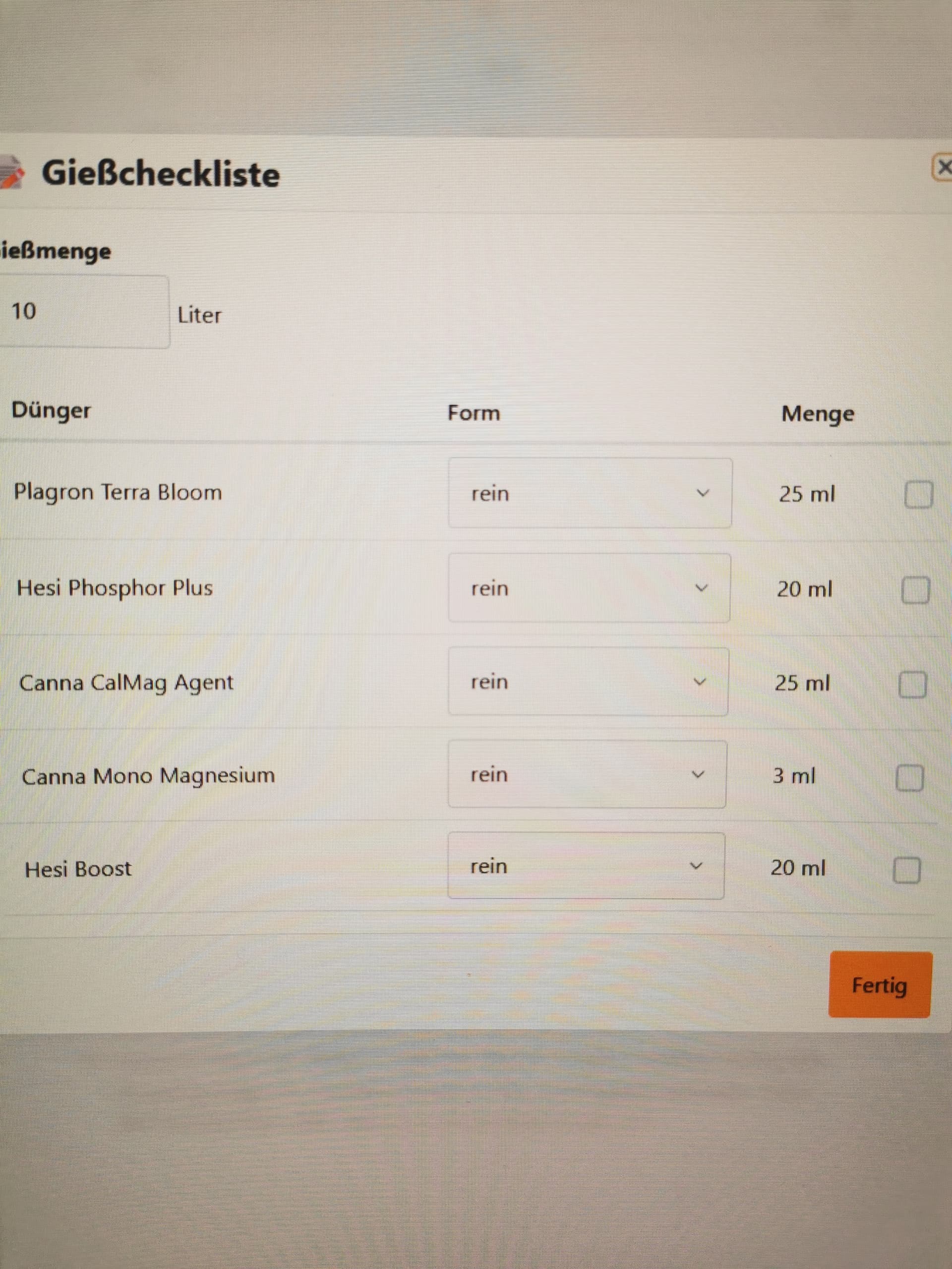 Gedüngt wird 2x pro Woche, wenn’s zu doll geregnet hat auch nur 1x pro Woche.