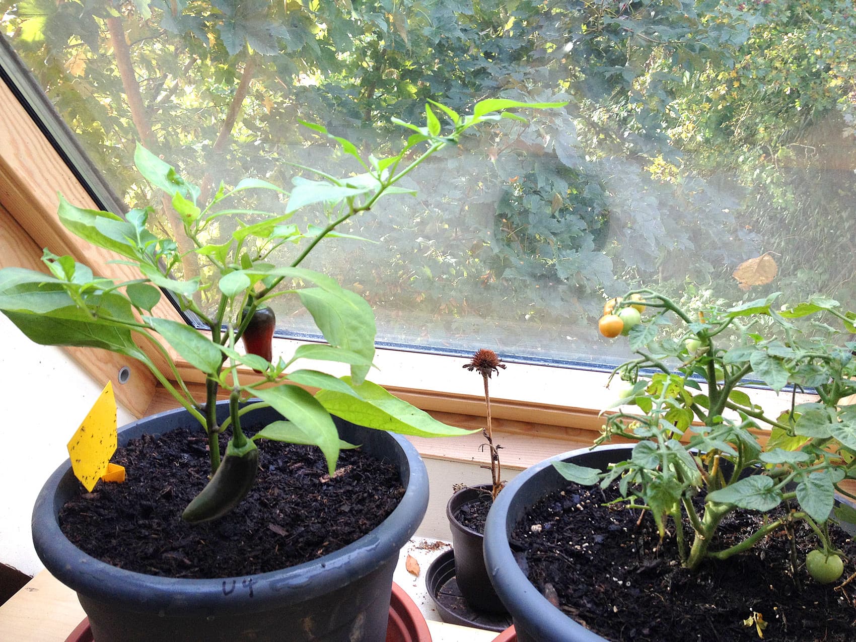Für Chili und Tomate wurde es zuletzt schon zu kalt im Gewächshaus. Aber da war das Dachfenster noch belegt mit der Purple Mazar.