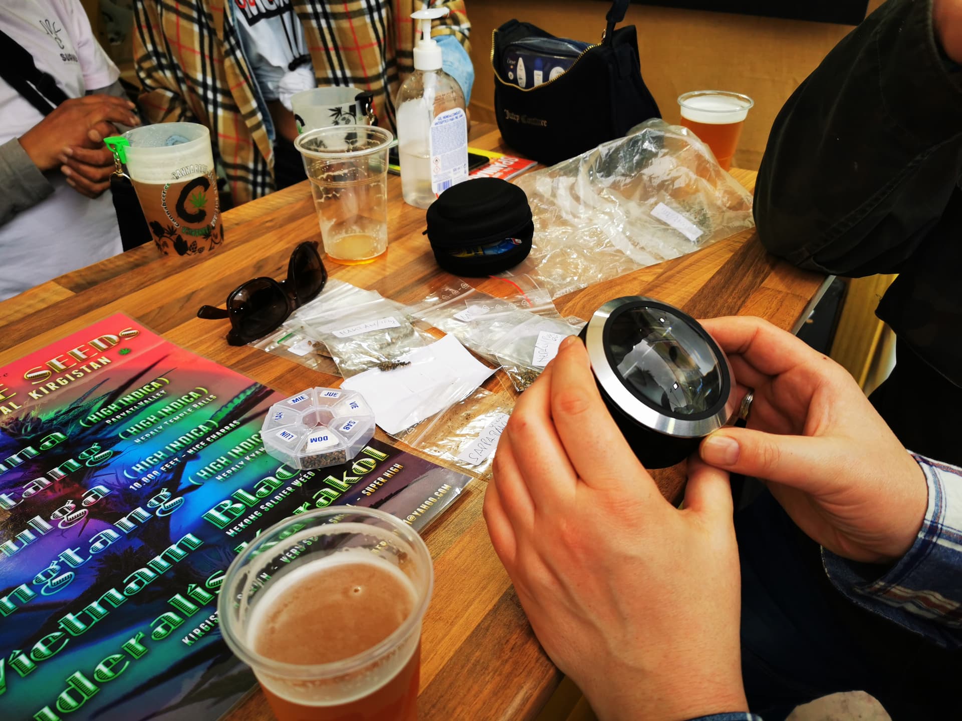 Nach drei Stunden strain talk und ein paar Liter Cannabis Bier haben wir dann ein paar alte und sehr auĂergewöhnliche Landrassen abgreifen können. WOW ![]()