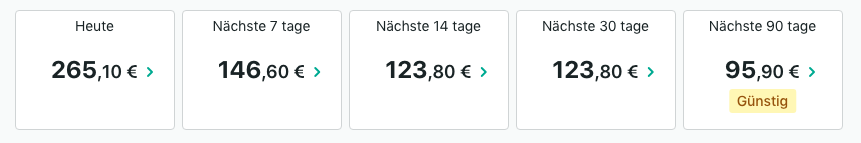 Das sieht fĂŒr mich gut aus. Wenn man bald bucht, bleibt man sogar unter 100 Tacken, das find ich schon sehr ok. Man muss 3-4x umsteigen, aber das macht mir nichts aus, wenn ich im Reisemodus bin