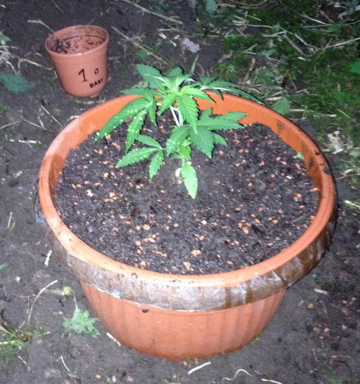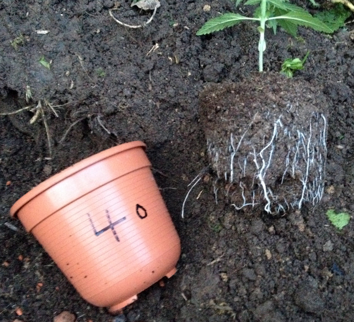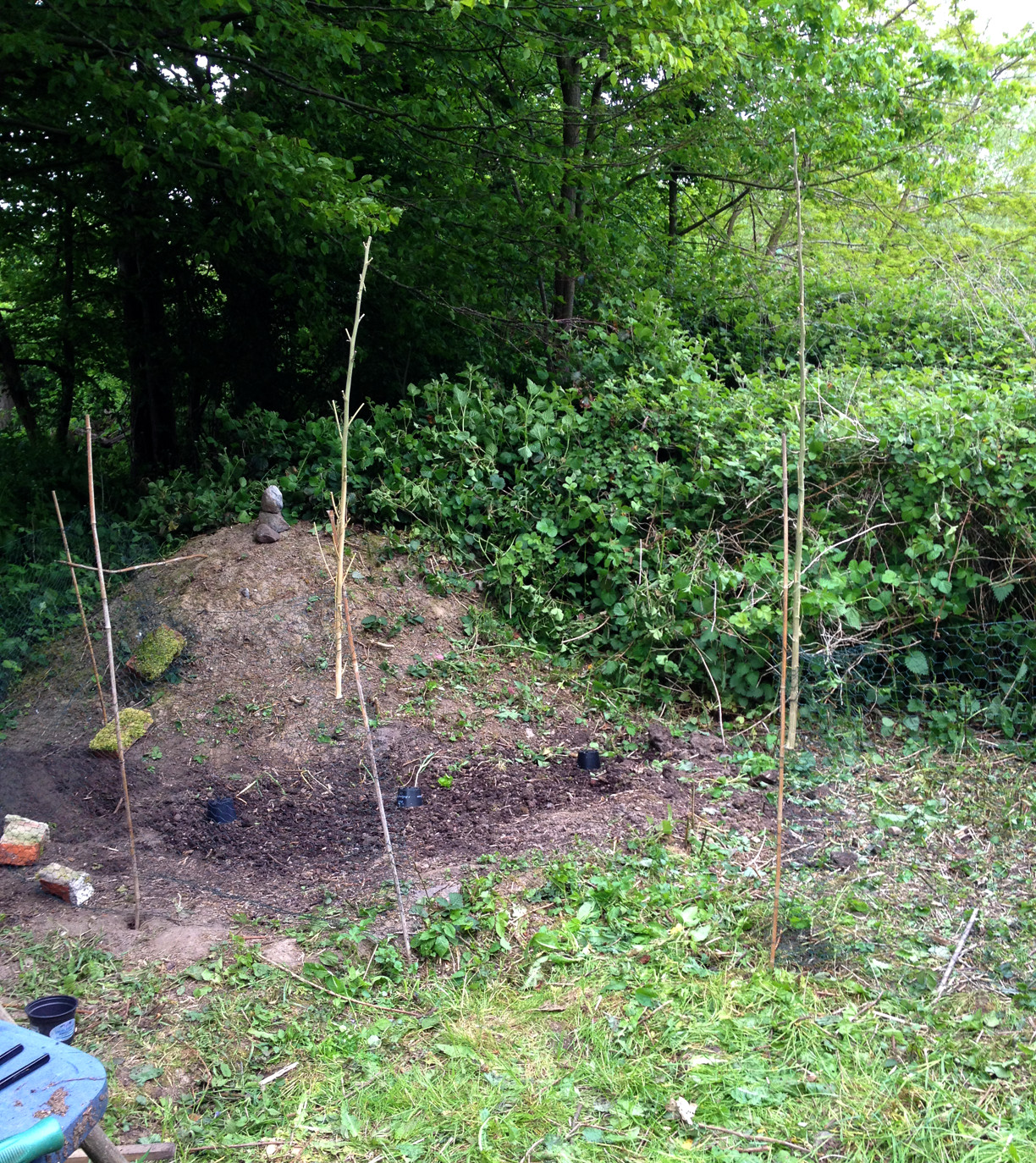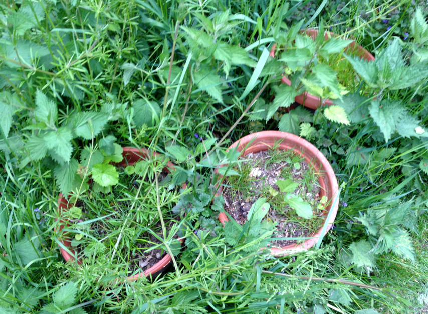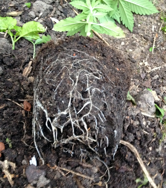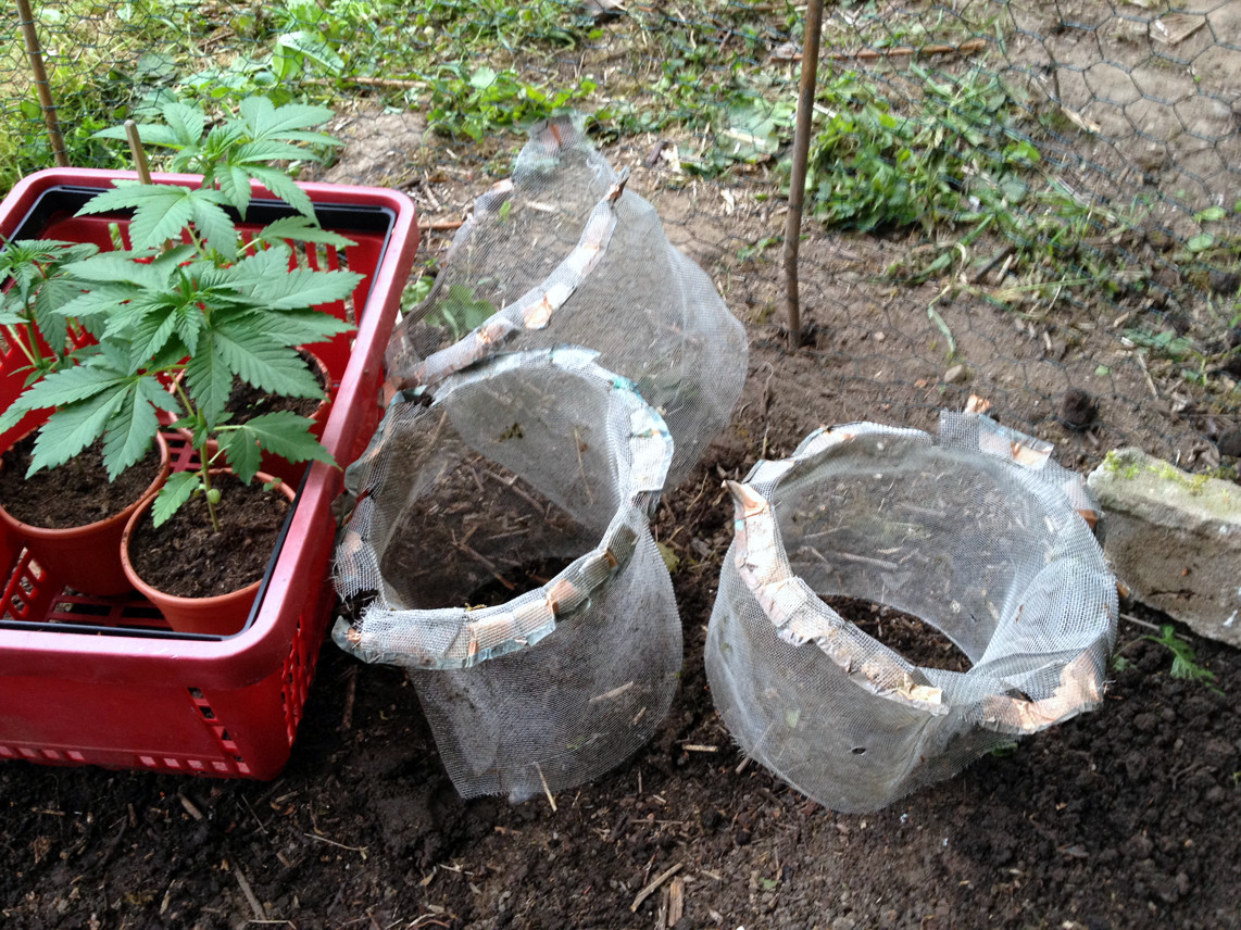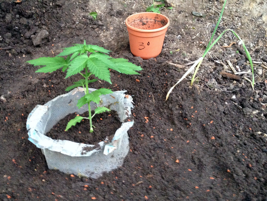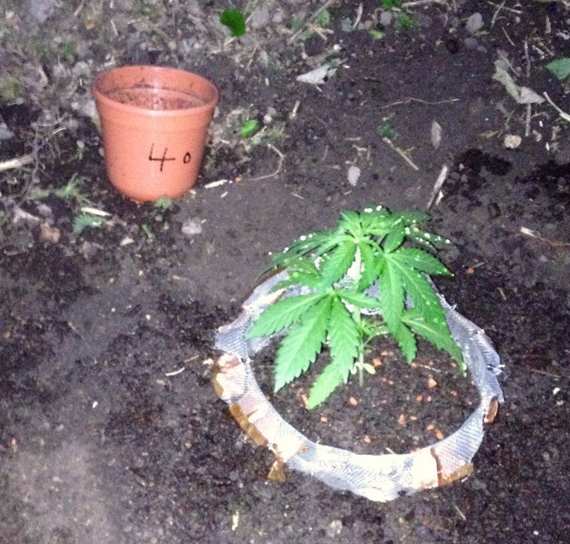 Vorn ist das Beet für 3 Pflanzen. Dahinter ist Lehmboden, schwer zu beackern, deshalb habe ich da nur gesenst. Da wollte ich einen Guerilla-Grow simulieren, also einfach ein Loch mit Grow-Erde in die Wildnis machen (ich versuche, herauszufinden, wie weit man es mit der Einfachheit treiben kann).