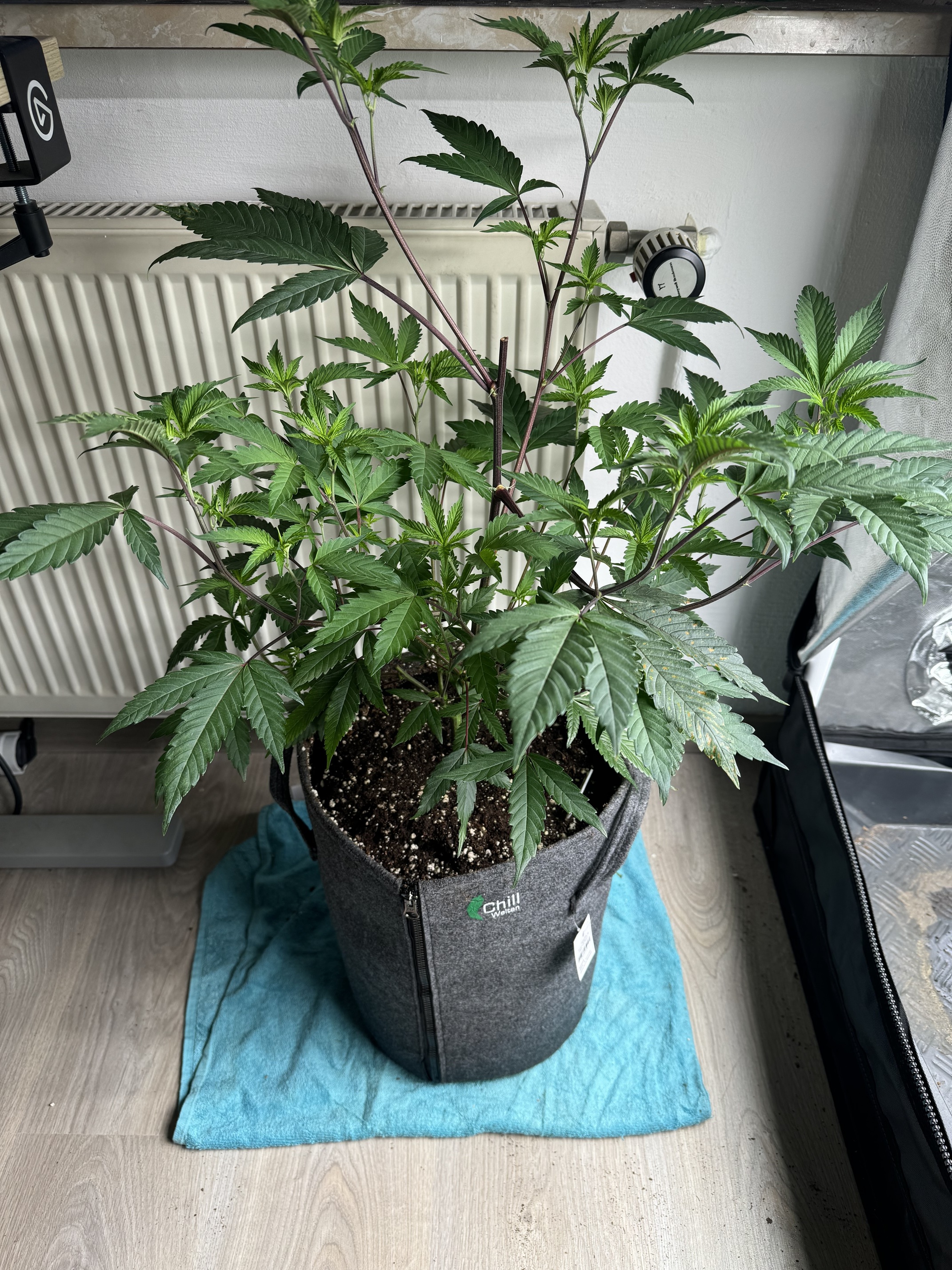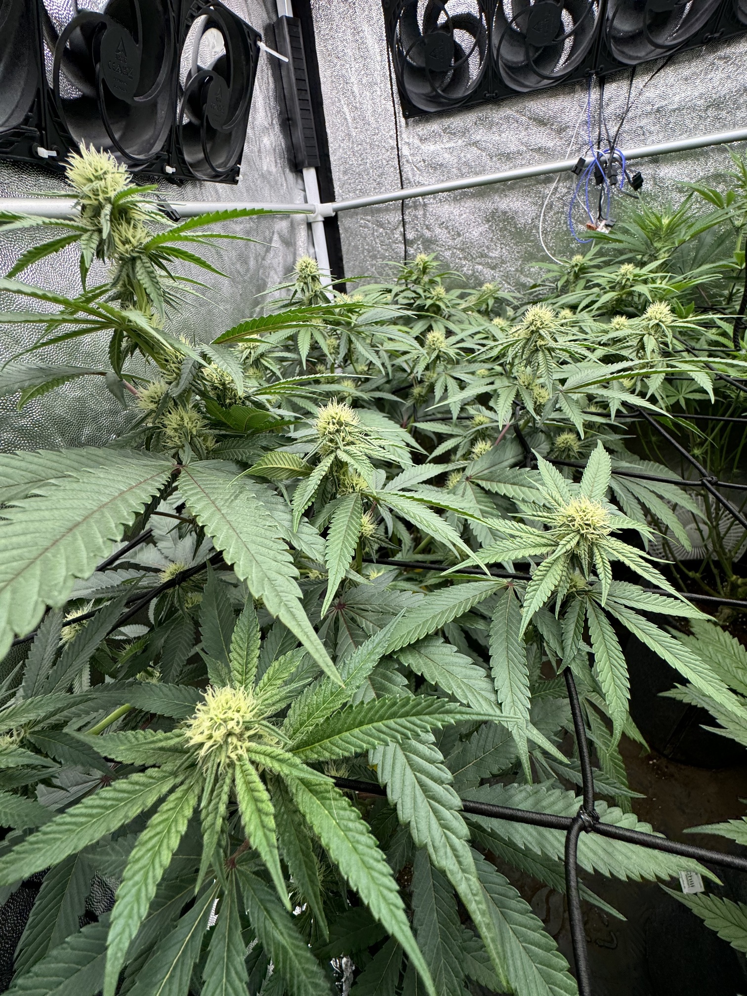 Mit Netz ist natürlich praktisch um die ein bisschen zu drücken und stützen und zu Croppen. Die Banana ist schon bissl ne Scrog Sorte