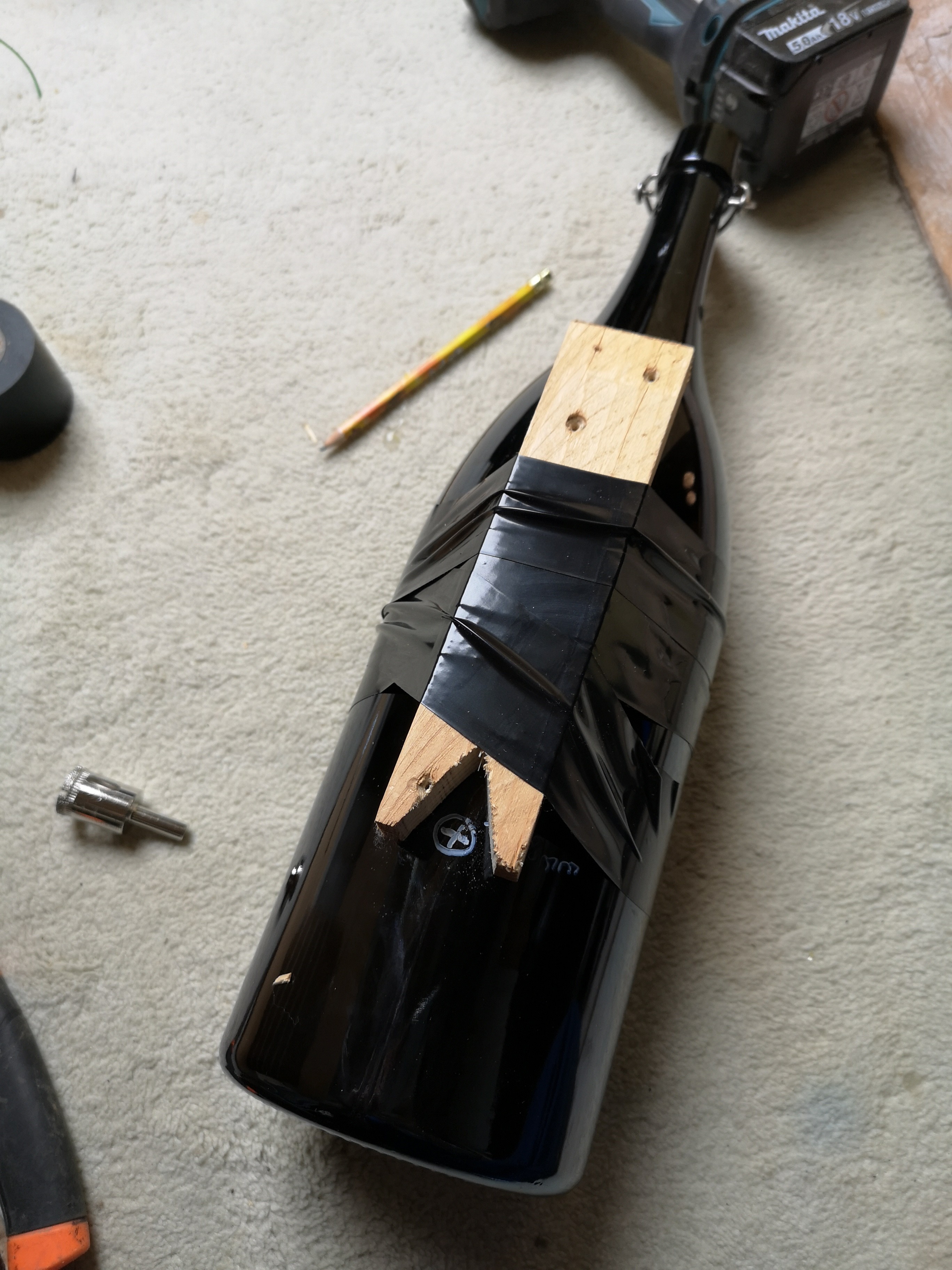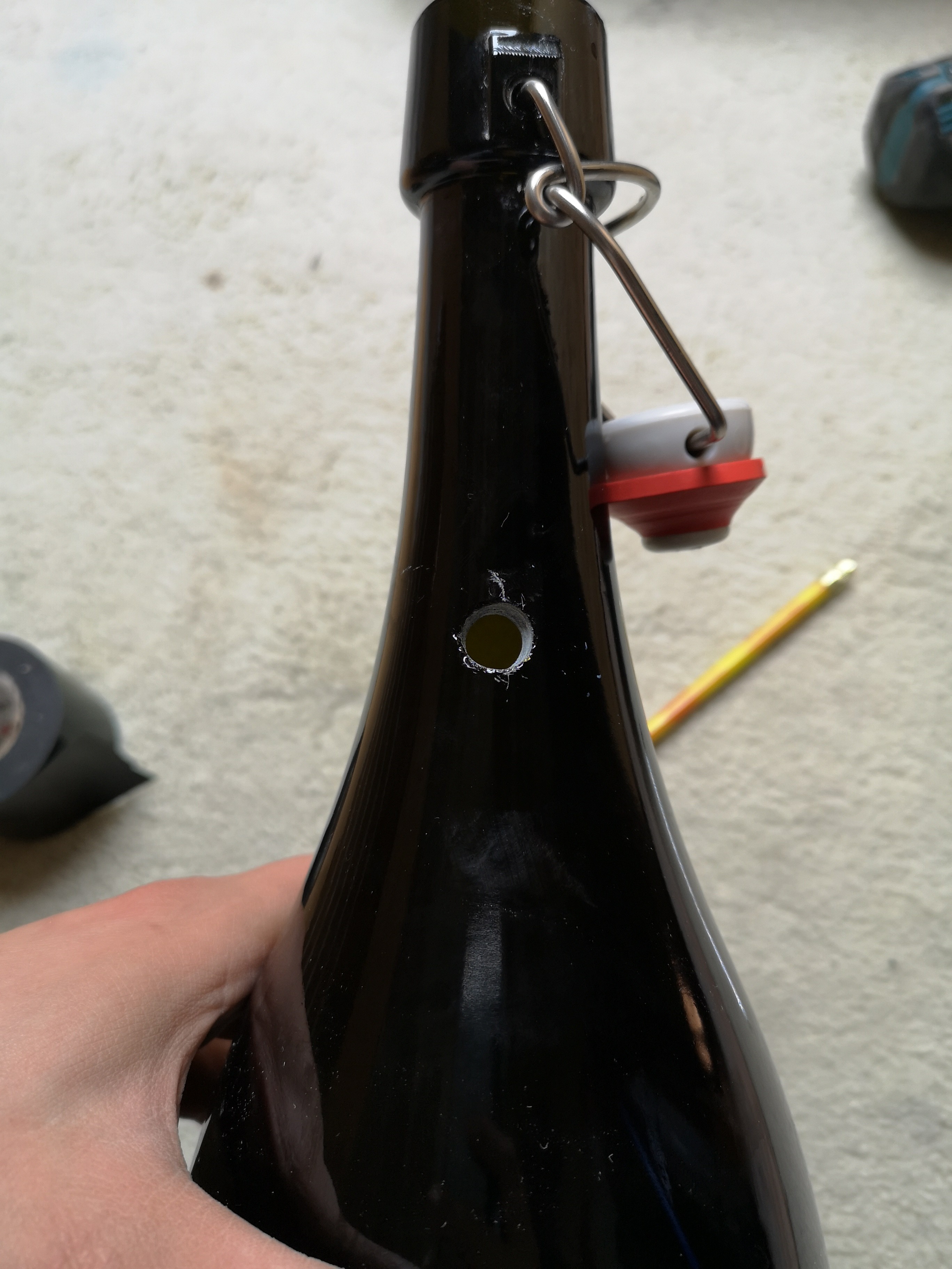 Wenn ihr schön Acht gegeben habt, begrüßt euch zum Schluss ein Loch in eurer Flasche! Vorsichtig fühlen, die Kanten können scharf sein!