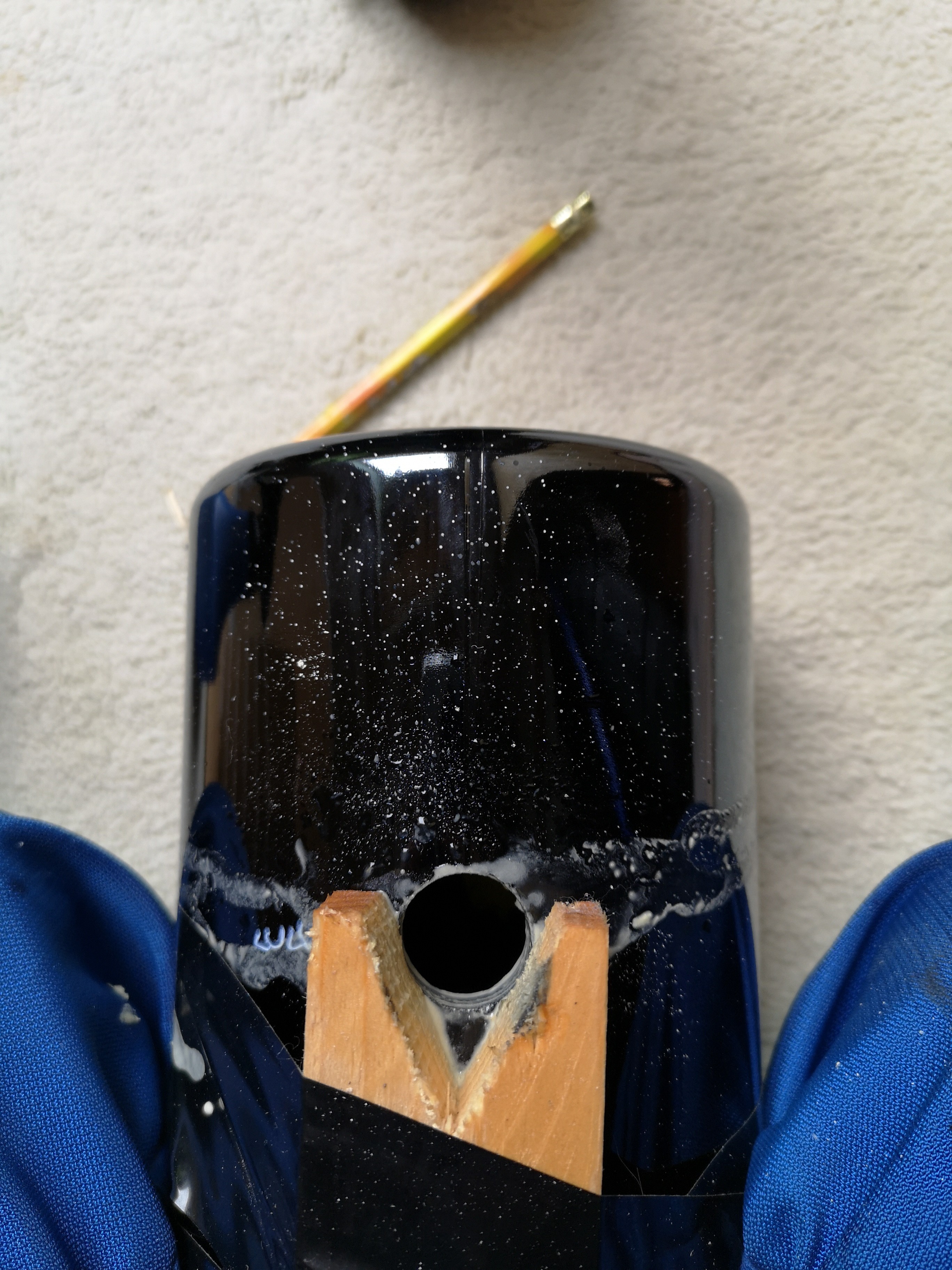 Ich empfehle übrigens tatsächlich Diamant-Kronenbohrer, anstatt spitze Fliesen- und Glasbohrer, da das Loch sonst unter Umständen etwas zerrissen aussieht.