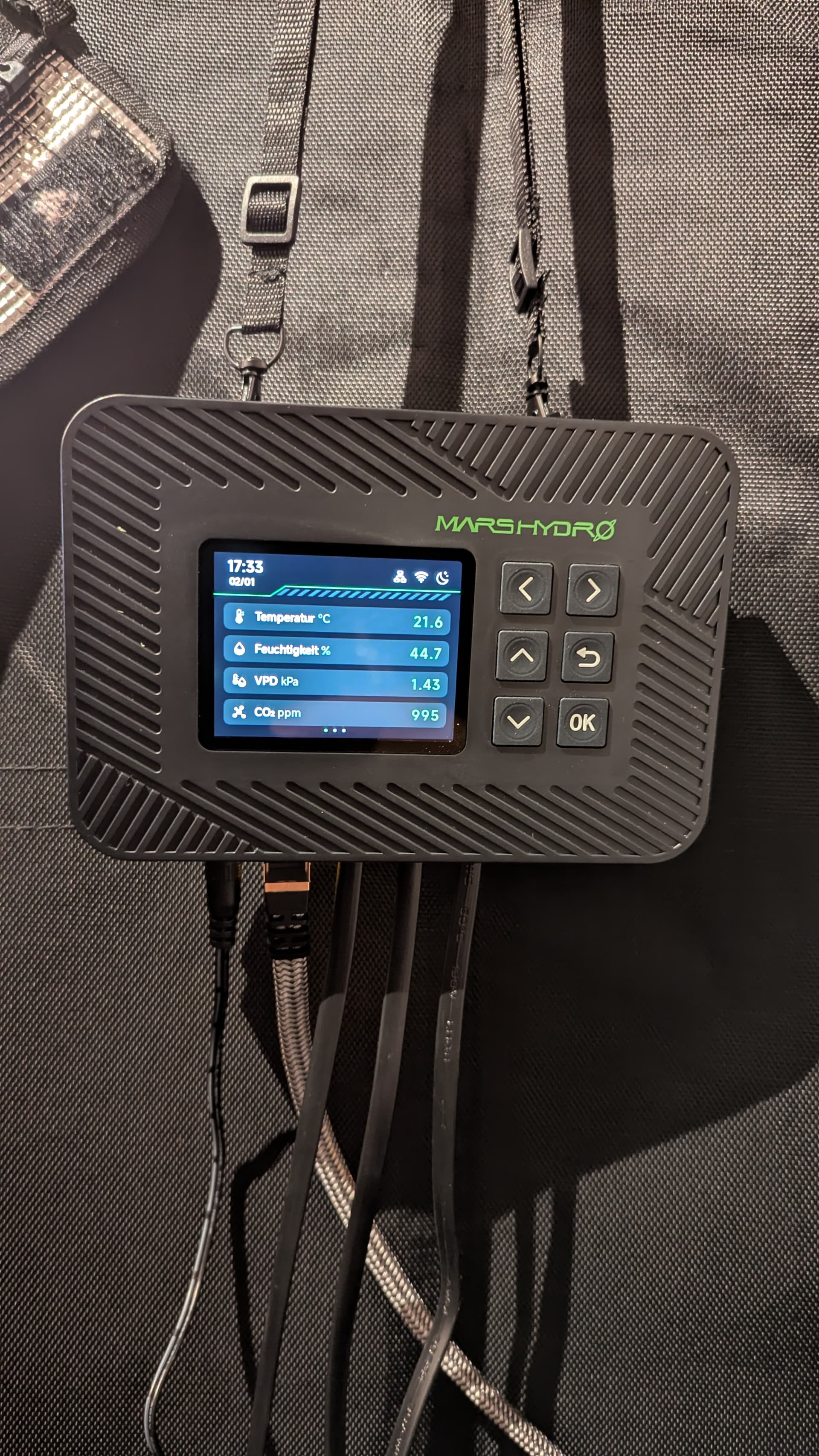 Unterm Weihnachtsbaum lag ein großes Paket von Mars Hydro. Darin befand sich der Controller 43 mit den drei Sensoren (PAR, CO2 & Soil Humidity)